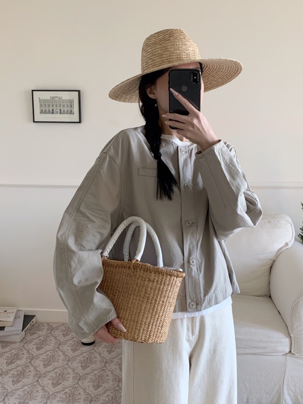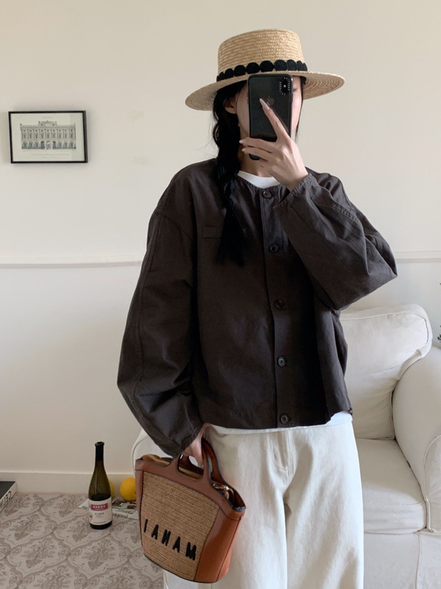 봄 2025 년 새 한국식 느슨한 올매치 라운드 넥 싱글 브레스트 긴팔 캐주얼 코트 여자 탑스토어 가기