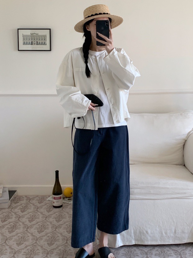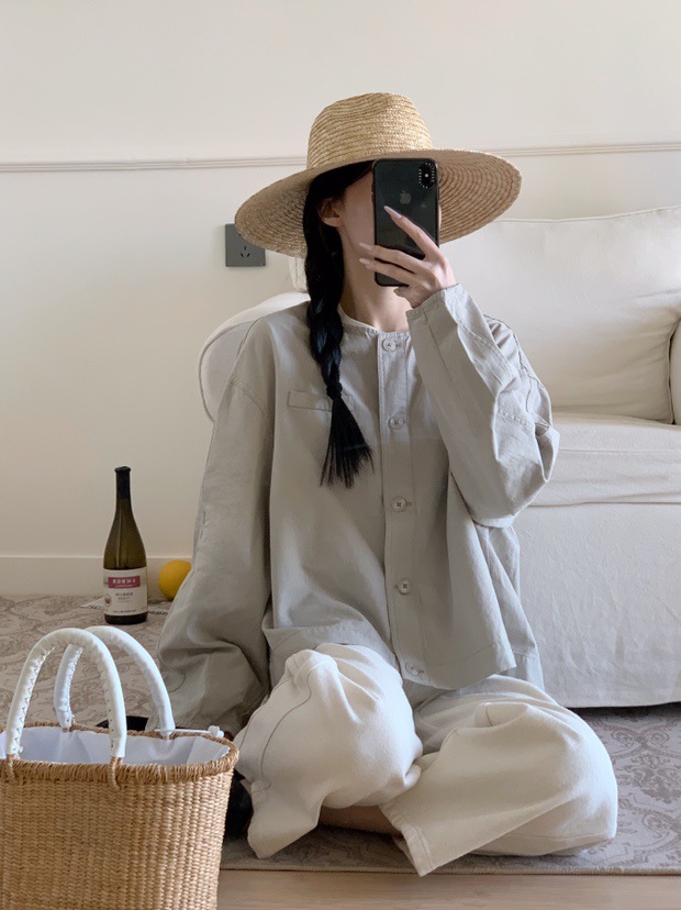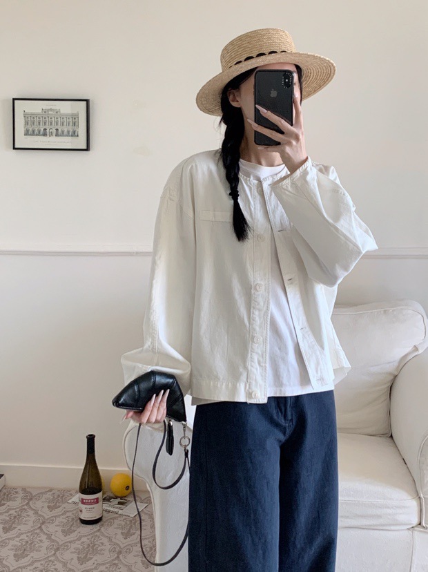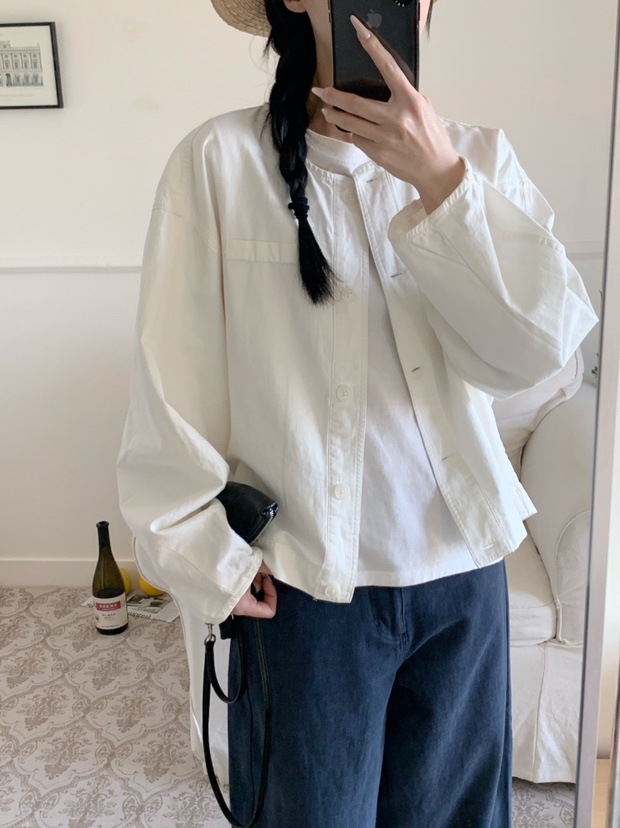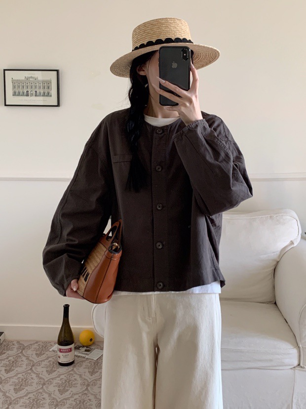 봄 2025 년 새 한국식 느슨한 올매치 라운드 넥 싱글 브레스트 긴팔 캐주얼 코트 여자 탑
