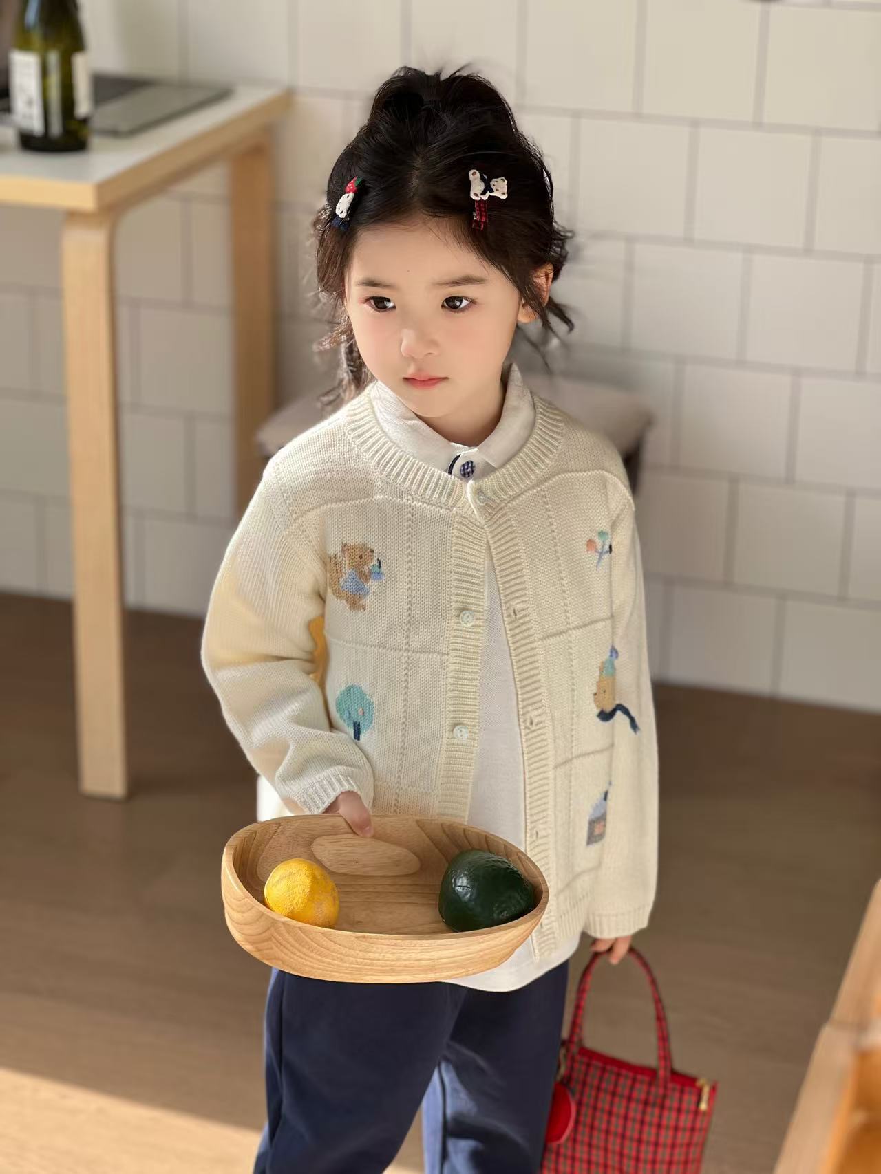 [재고] 2025 년 봄과 여름 새 곰 흰 카디건