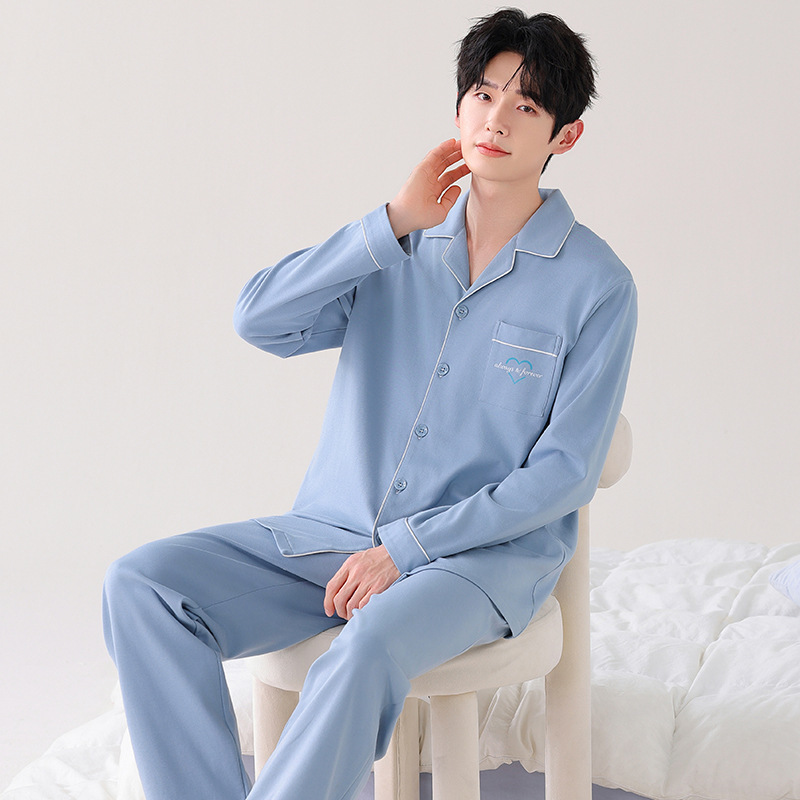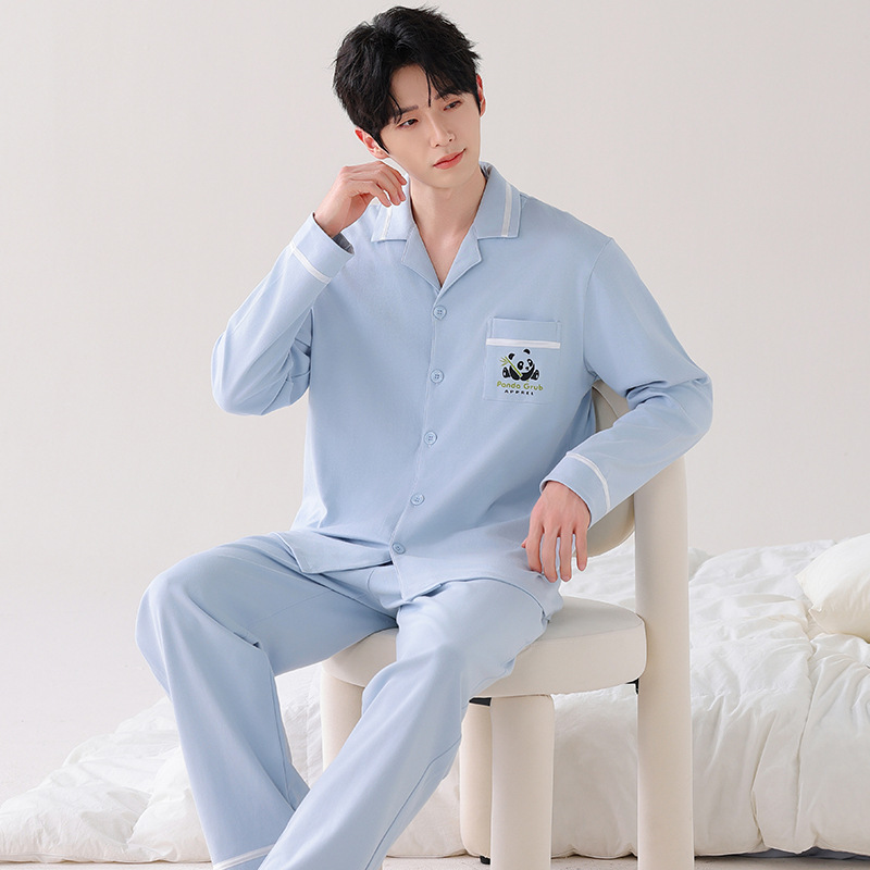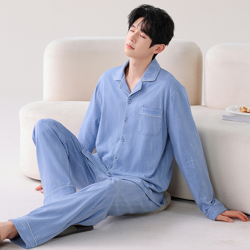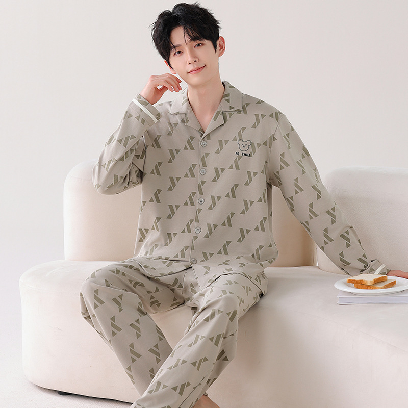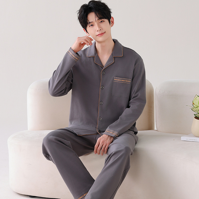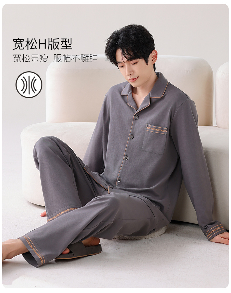 신상품 순면 남성 긴팔 잠옷 남성용 봄 가을 가디건 대형 사이즈 캐주얼 순면 홈웨어 세트 남성용스토어 가기