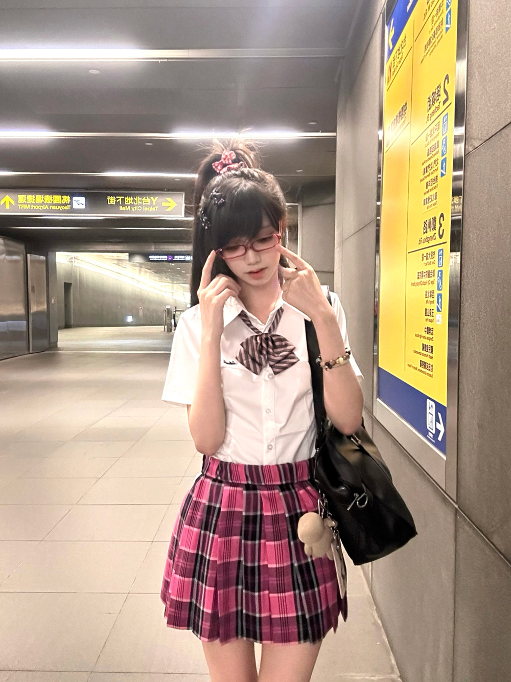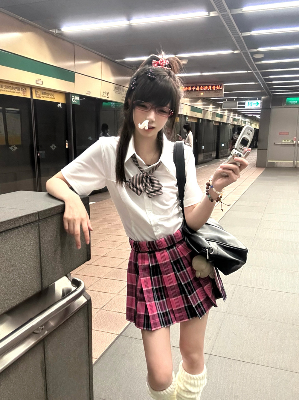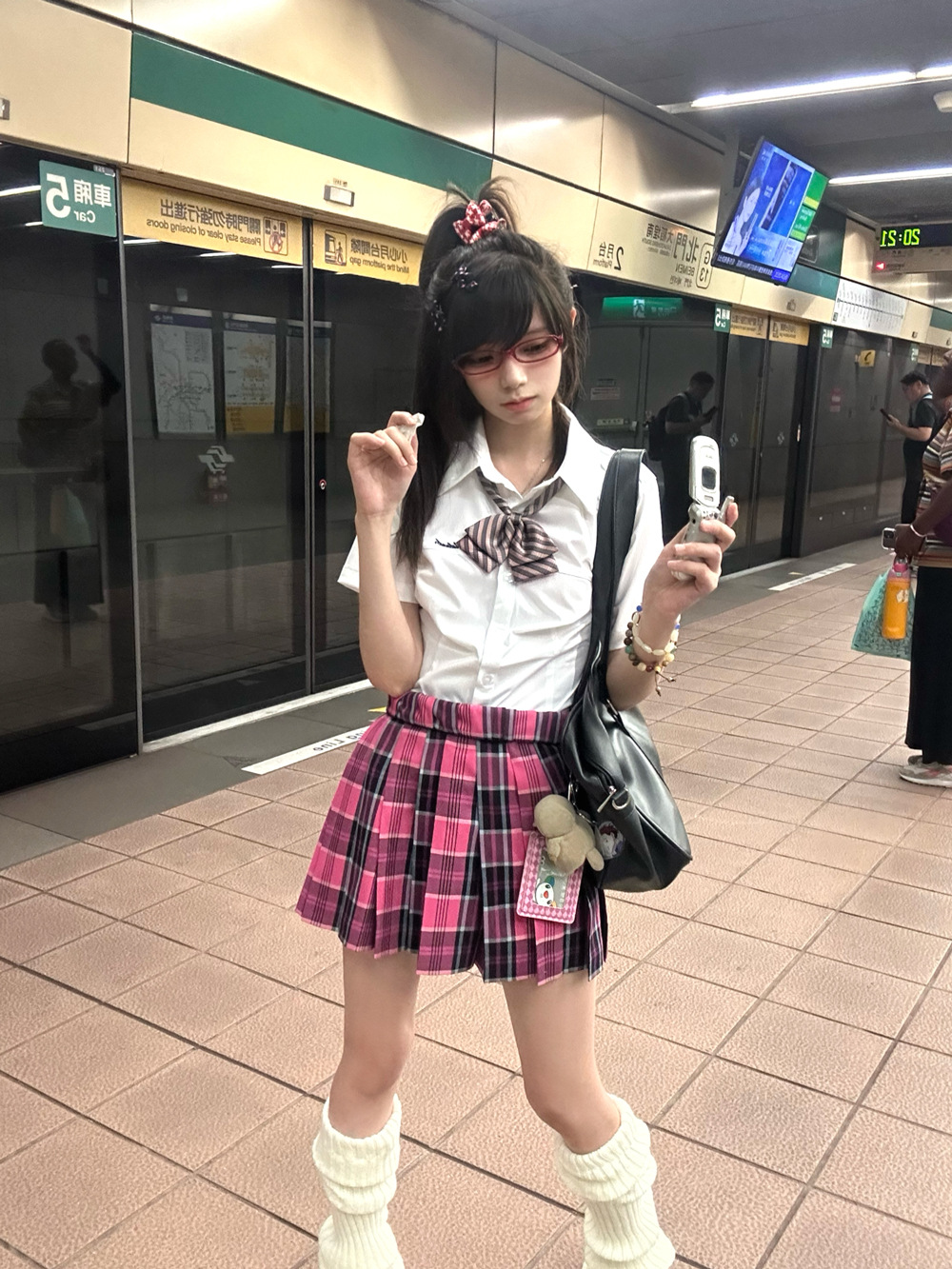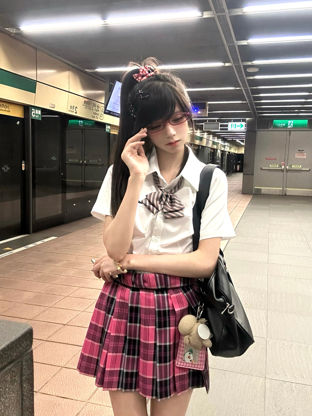 • 작은 장미 체크무늬 스커트 + 같은 체크무늬 나비넥타이