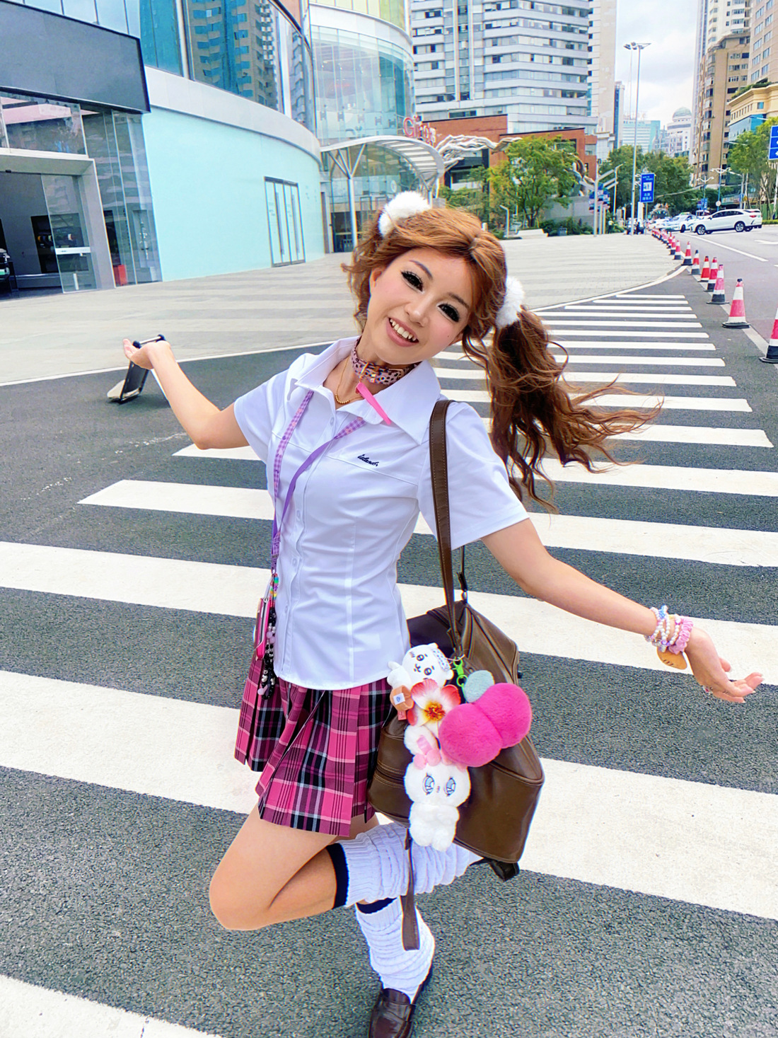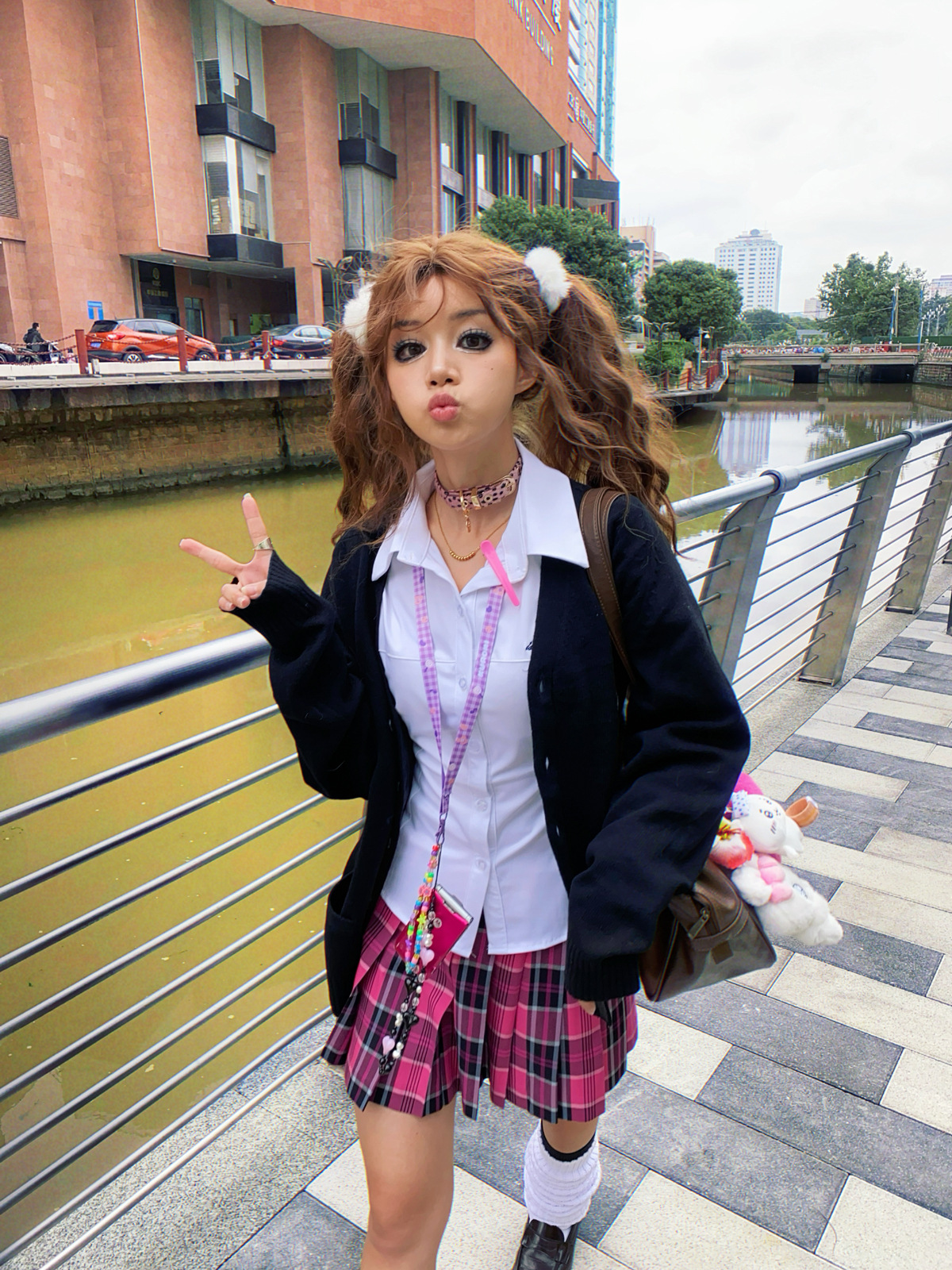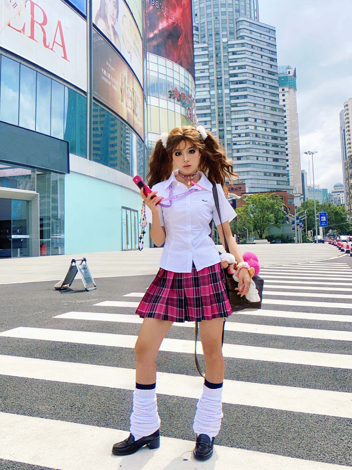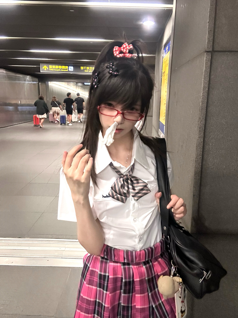 • 작은 장미 체크무늬 스커트 + 같은 체크무늬 나비넥타이