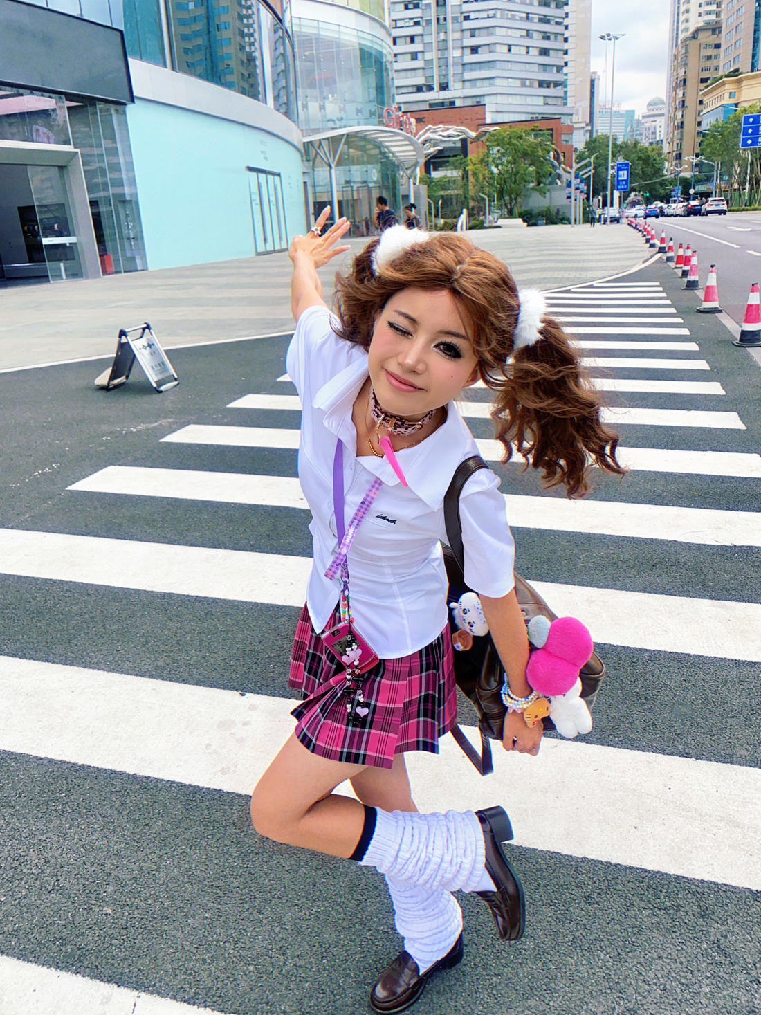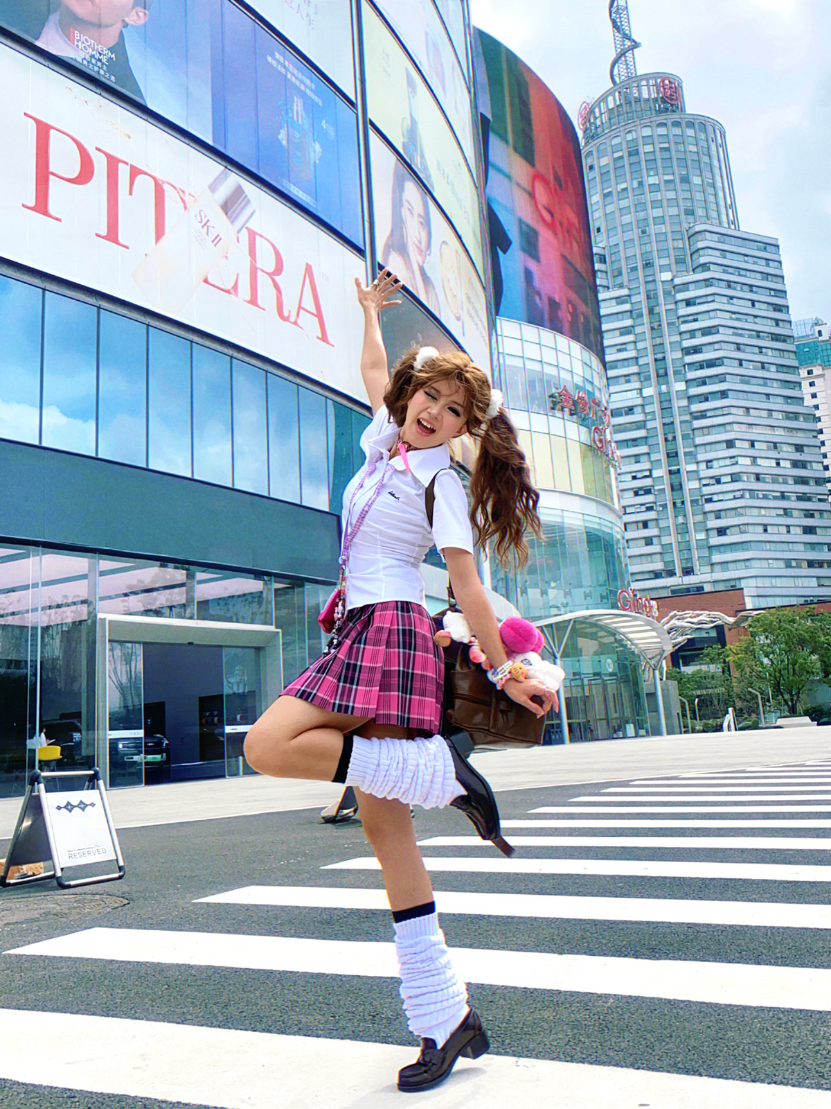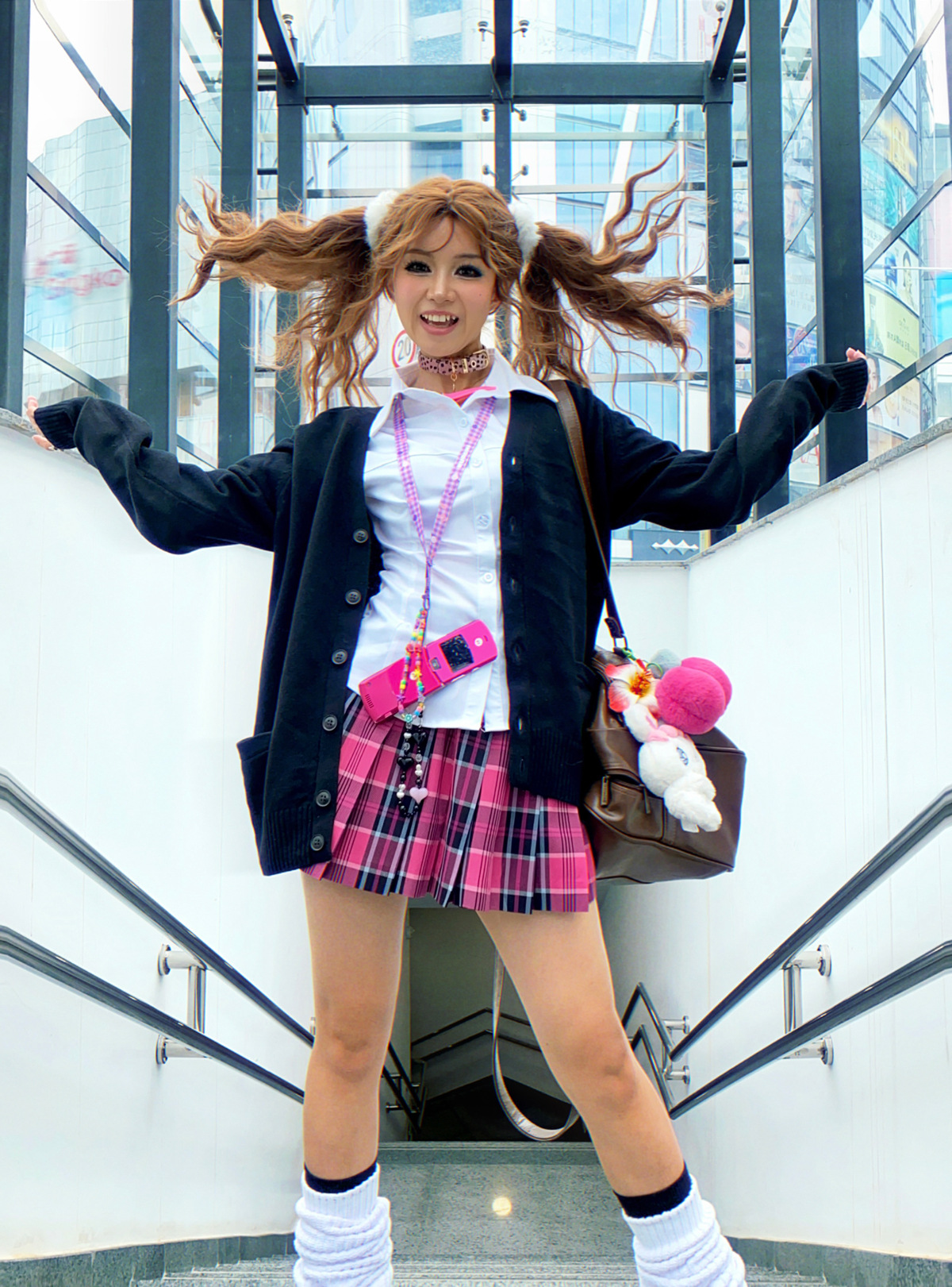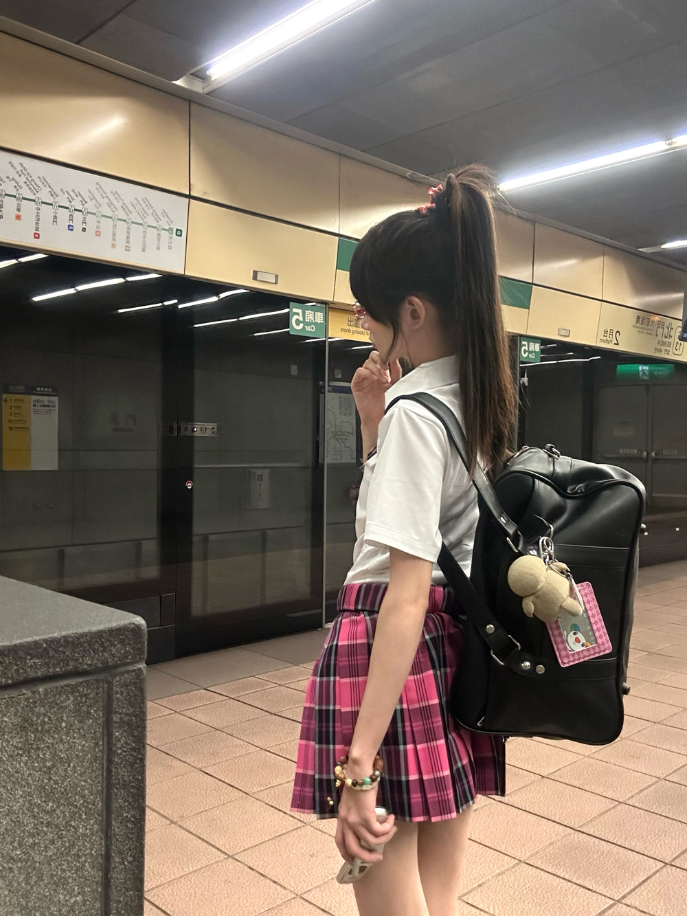 • 작은 장미 체크무늬 스커트 + 같은 체크무늬 나비넥타이