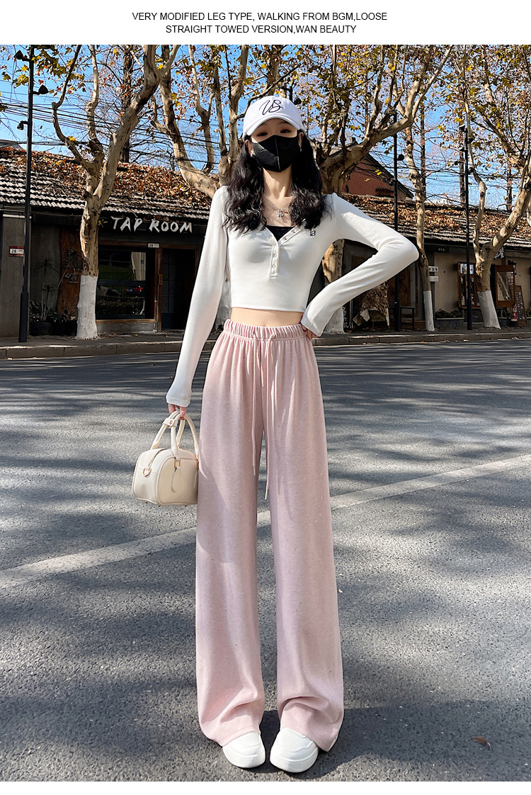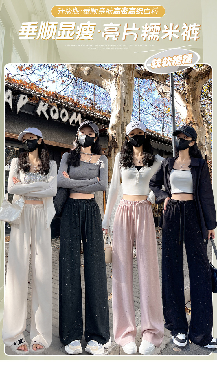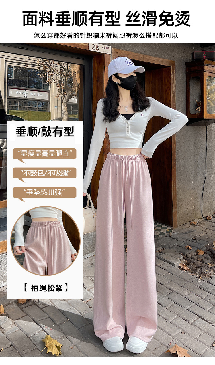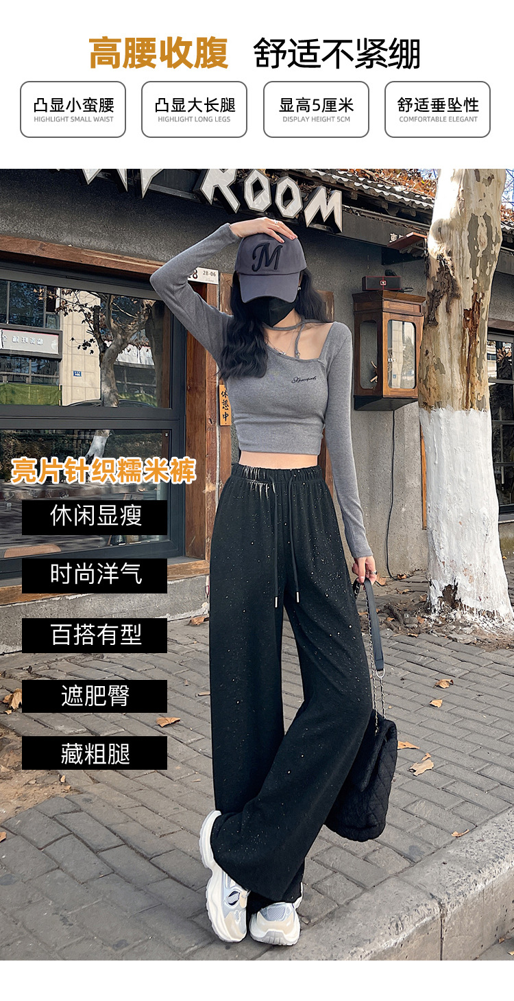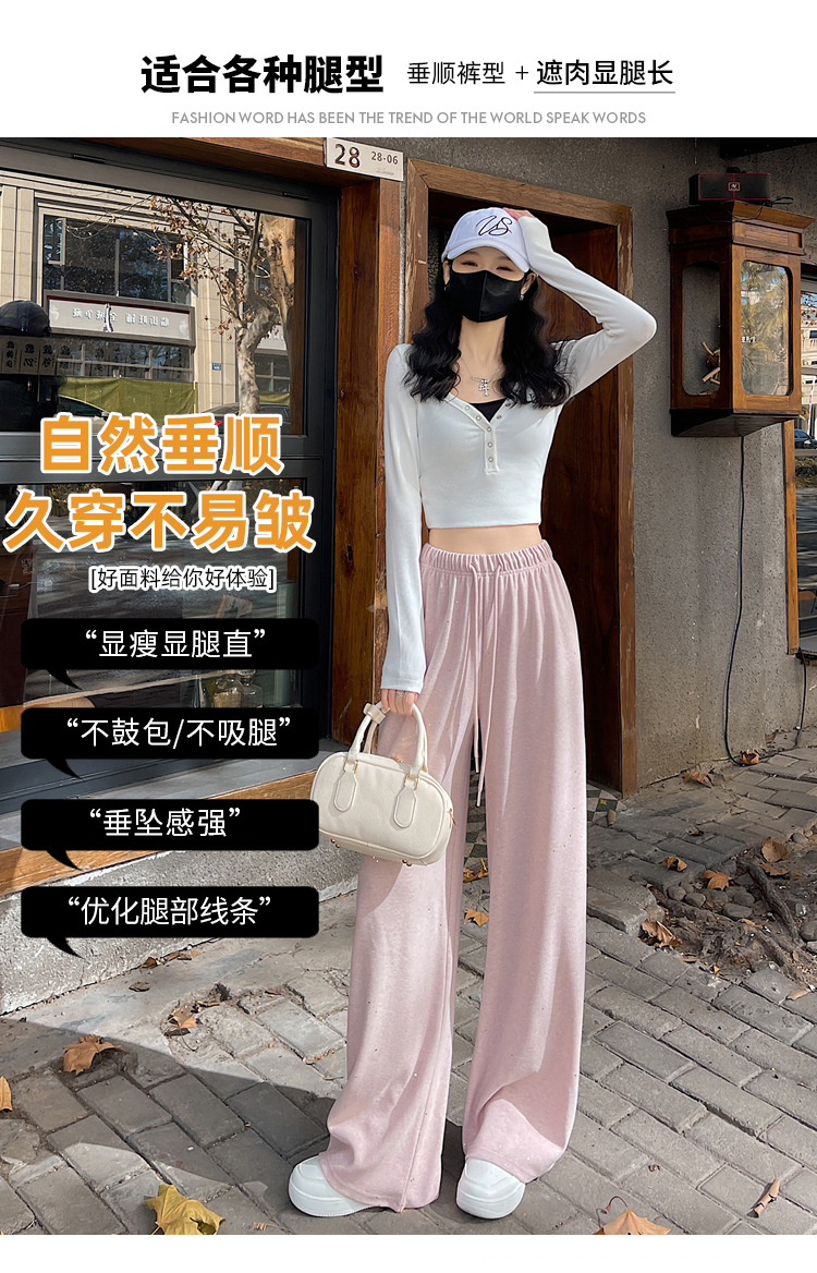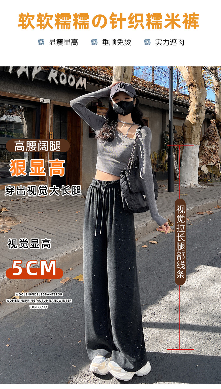봉합 된 넓은 다리 바지 여성용 2025 봄 높은 허리 투약 부드러운 왁스 게으른 캐주얼 니트 글루틴스 라이스 스트레이트 바지
