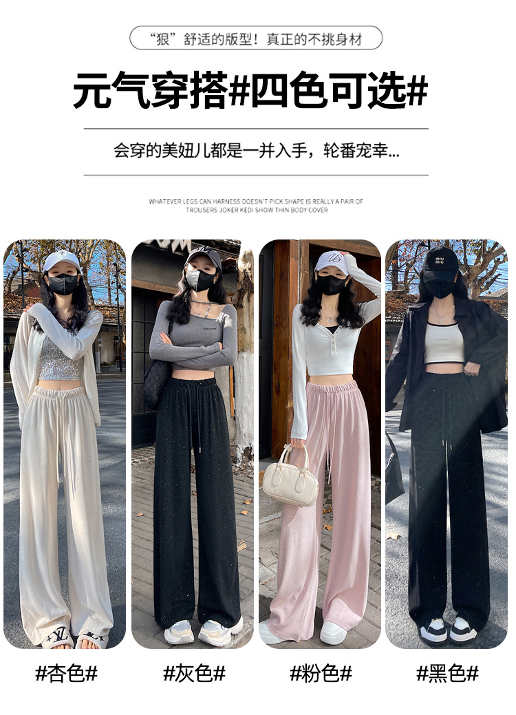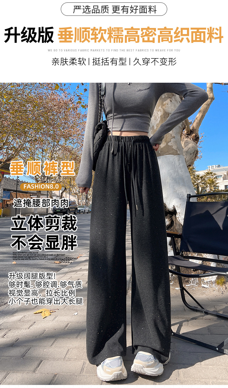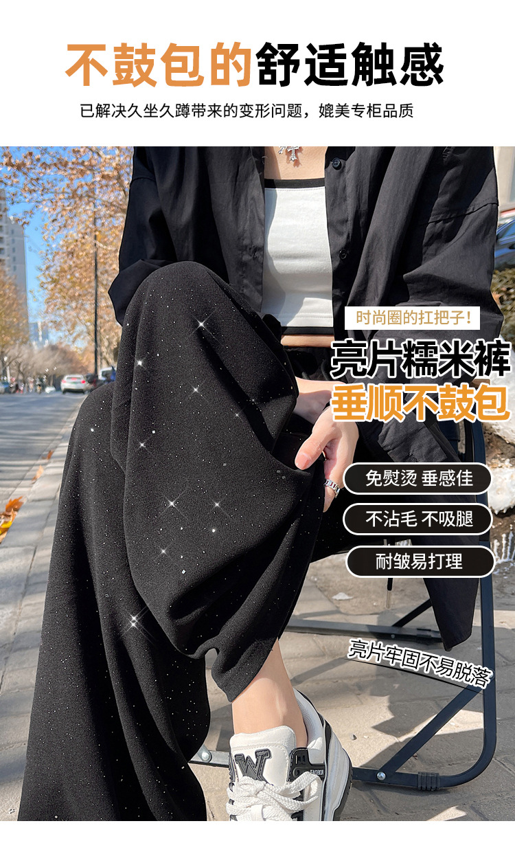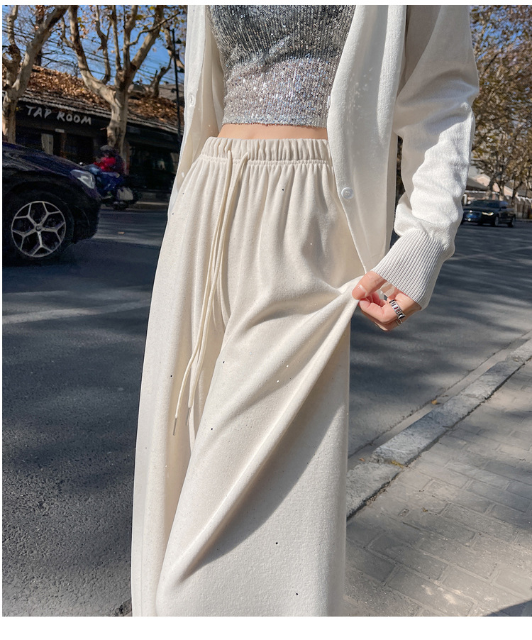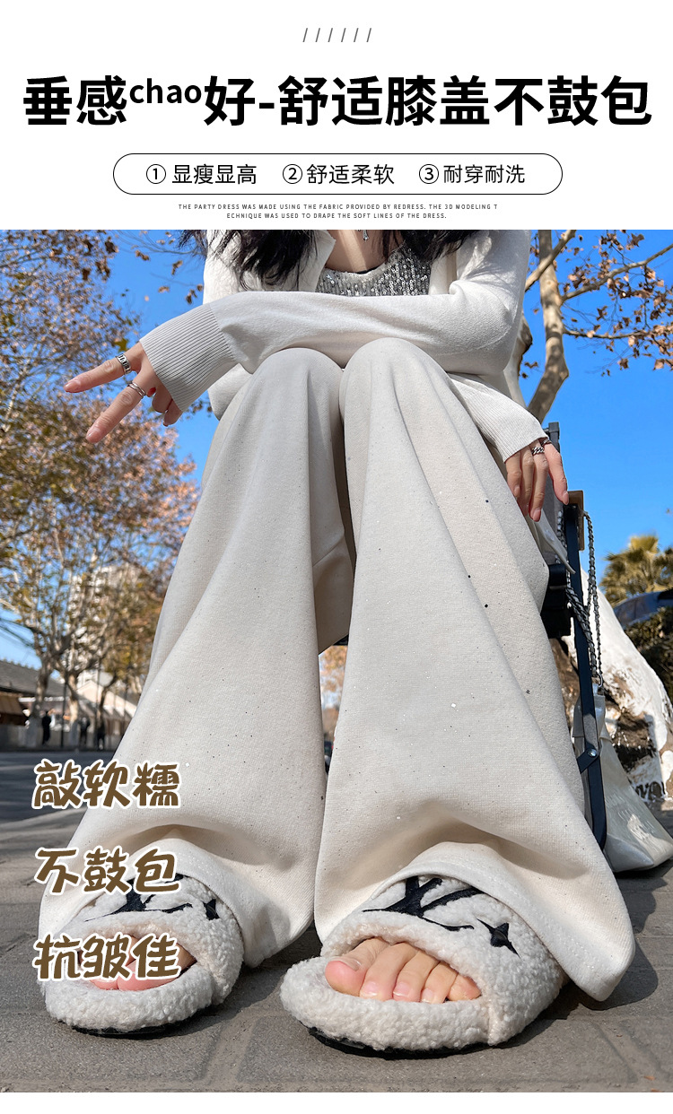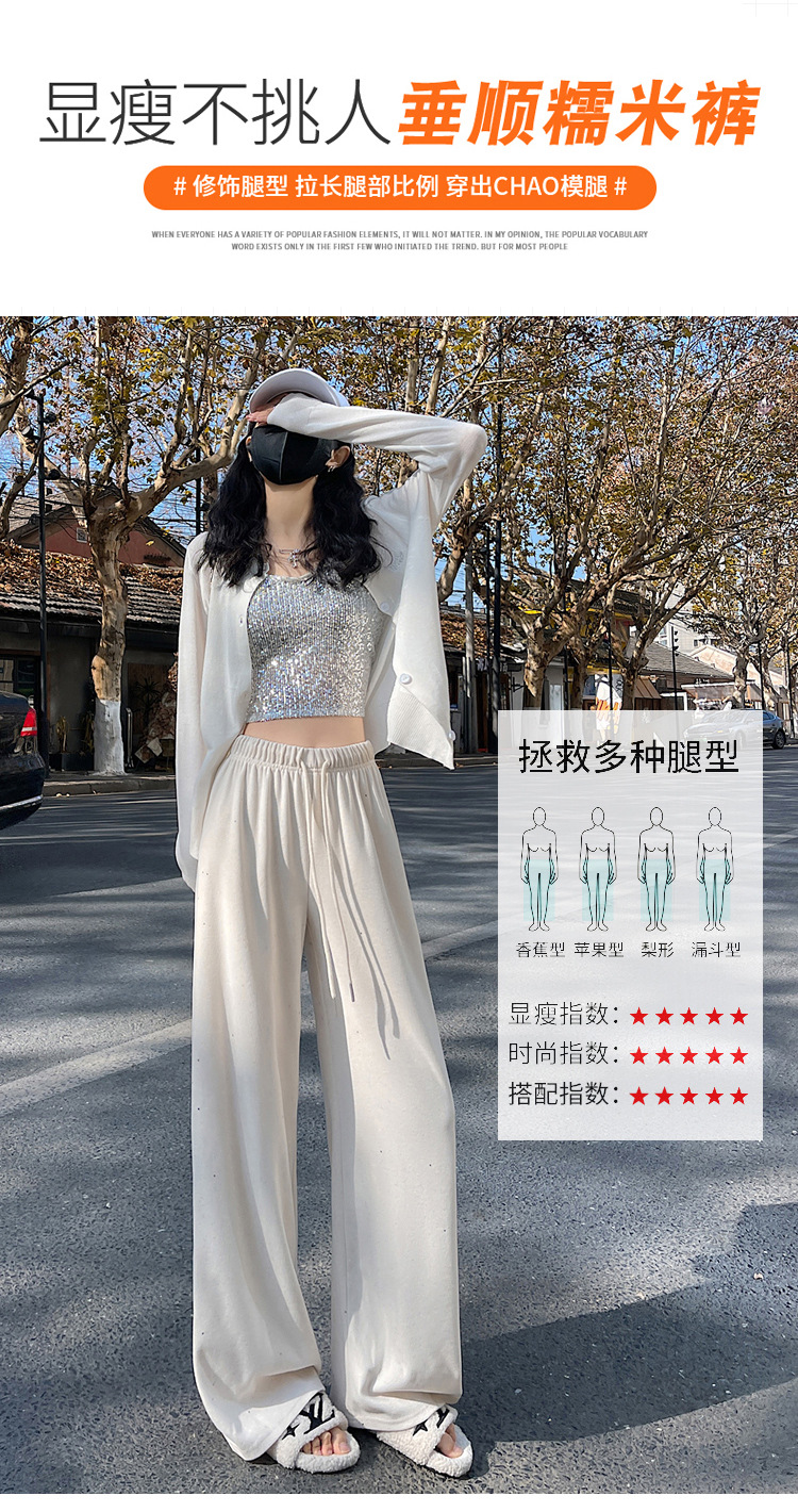 봉합 된 넓은 다리 바지 여성용 2025 봄 높은 허리 투약 부드러운 왁스 게으른 캐주얼 니트 글루틴스 라이스 스트레이트 바지