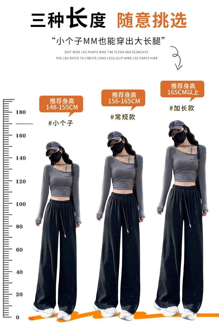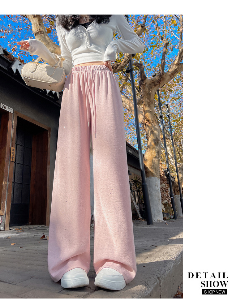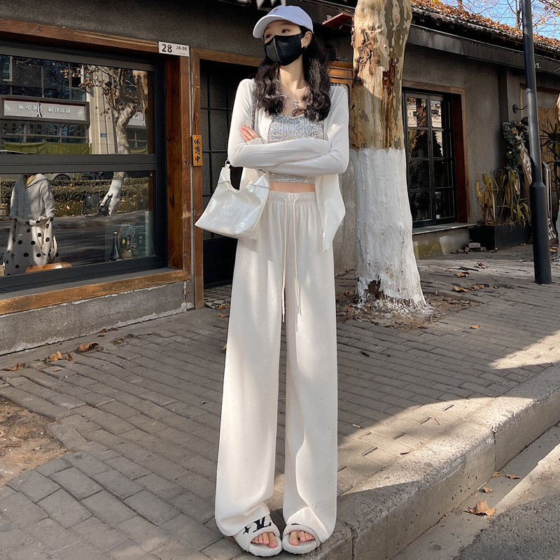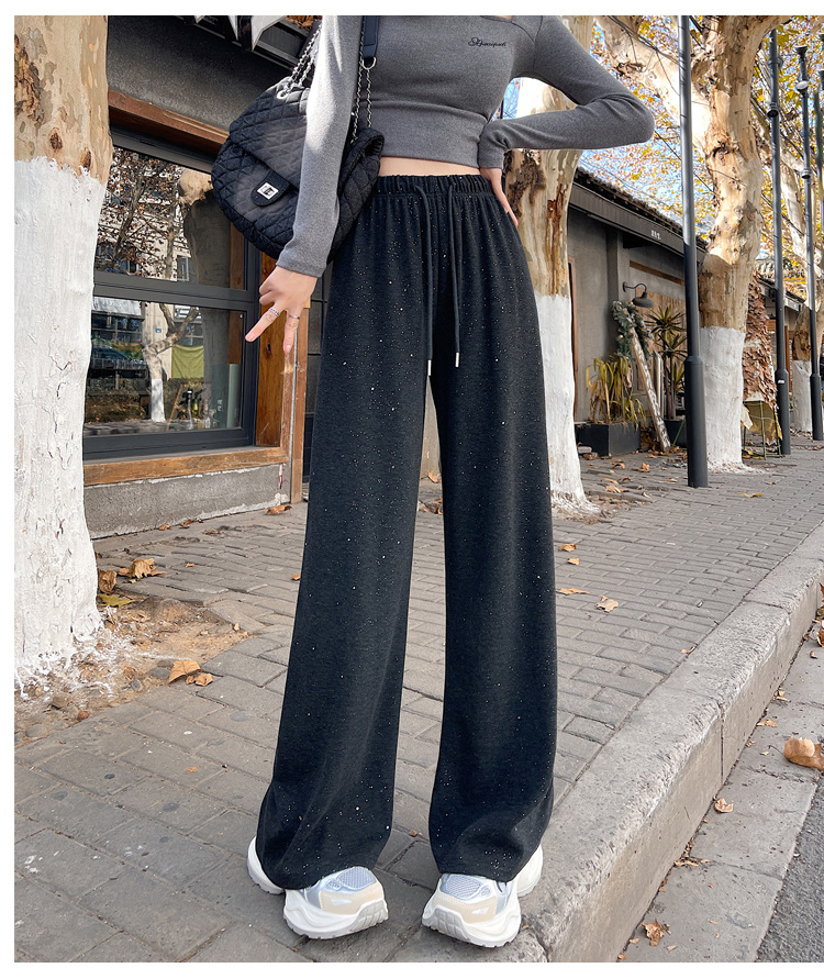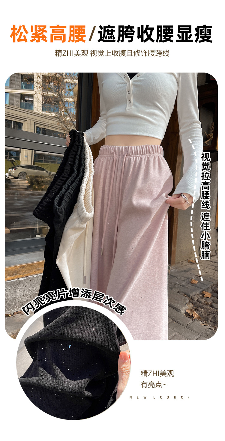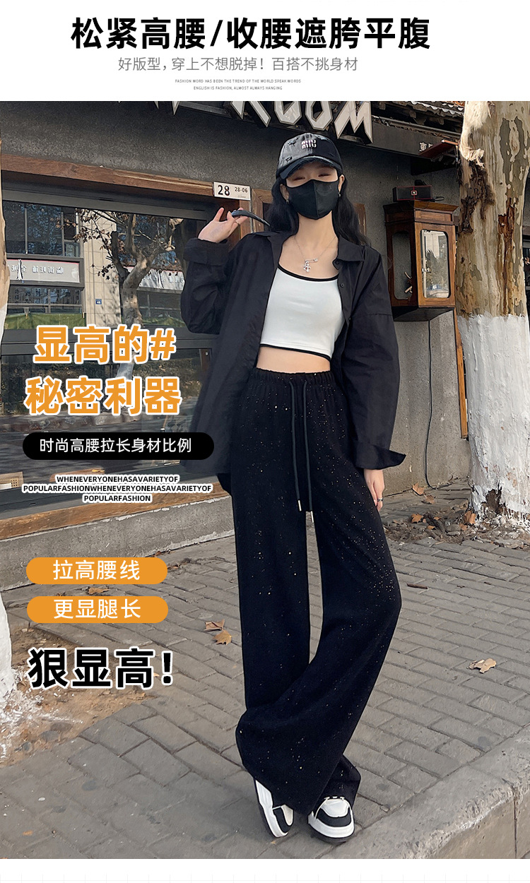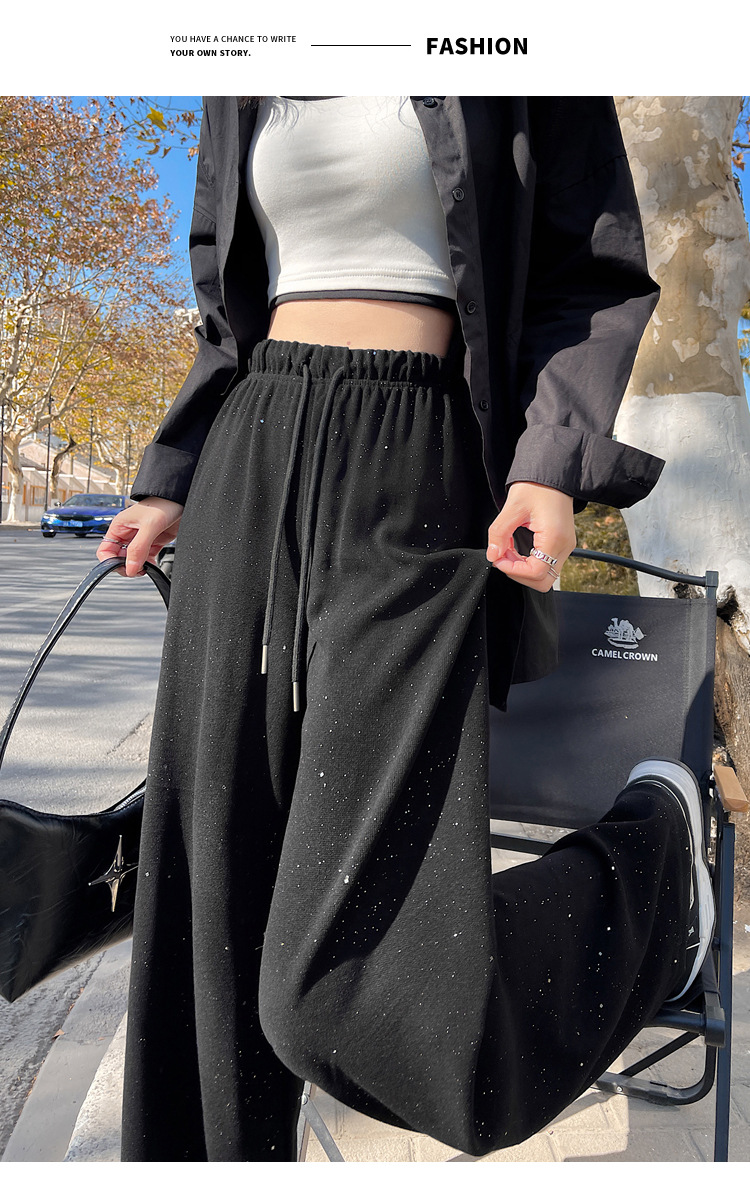 봉합 된 넓은 다리 바지 여성용 2025 봄 높은 허리 투약 부드러운 왁스 게으른 캐주얼 니트 글루틴스 라이스 스트레이트 바지