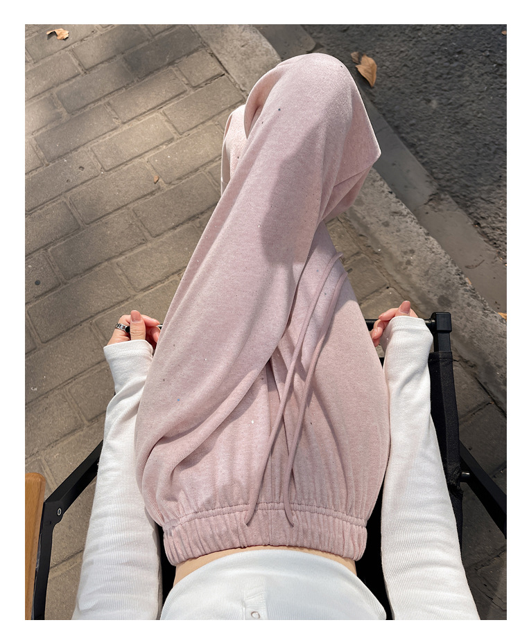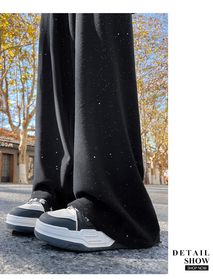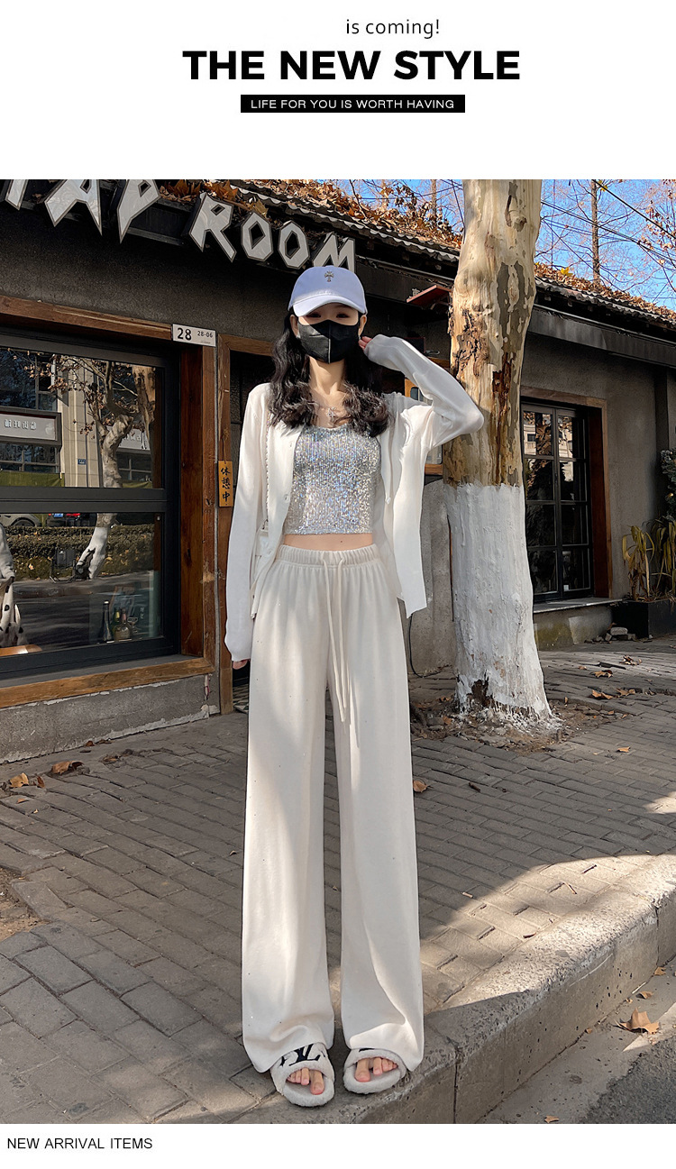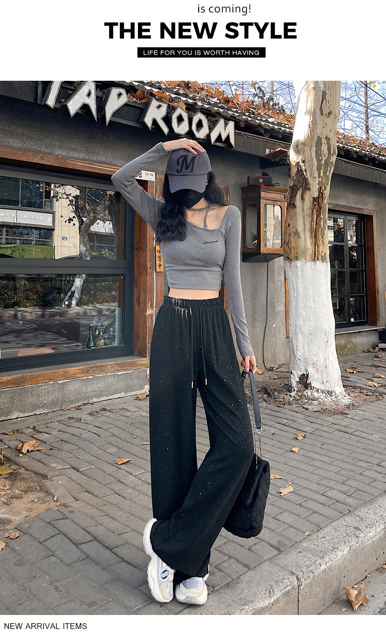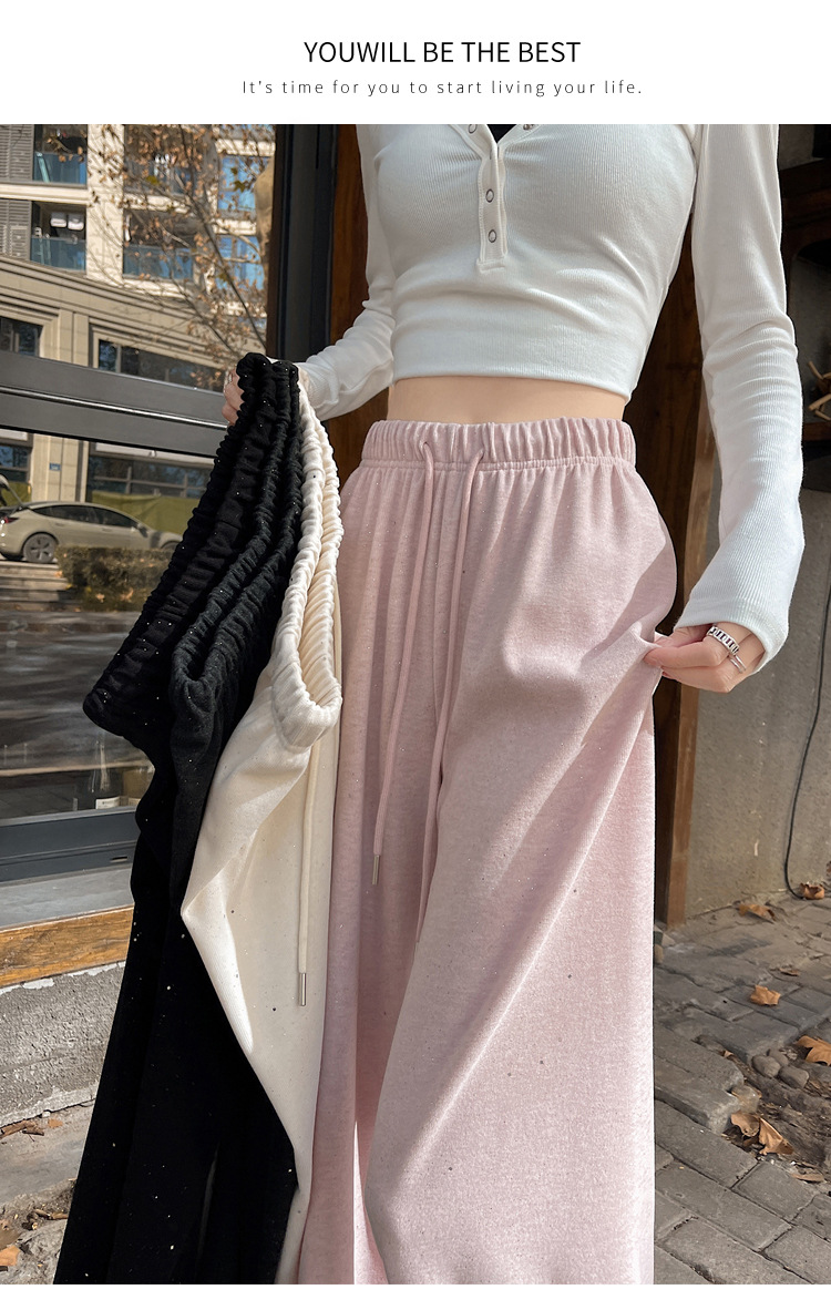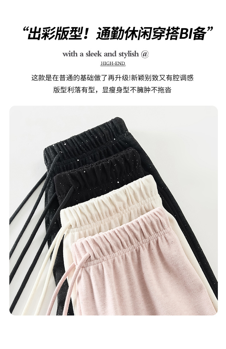 봉합 된 넓은 다리 바지 여성용 2025 봄 높은 허리 투약 부드러운 왁스 게으른 캐주얼 니트 글루틴스 라이스 스트레이트 바지