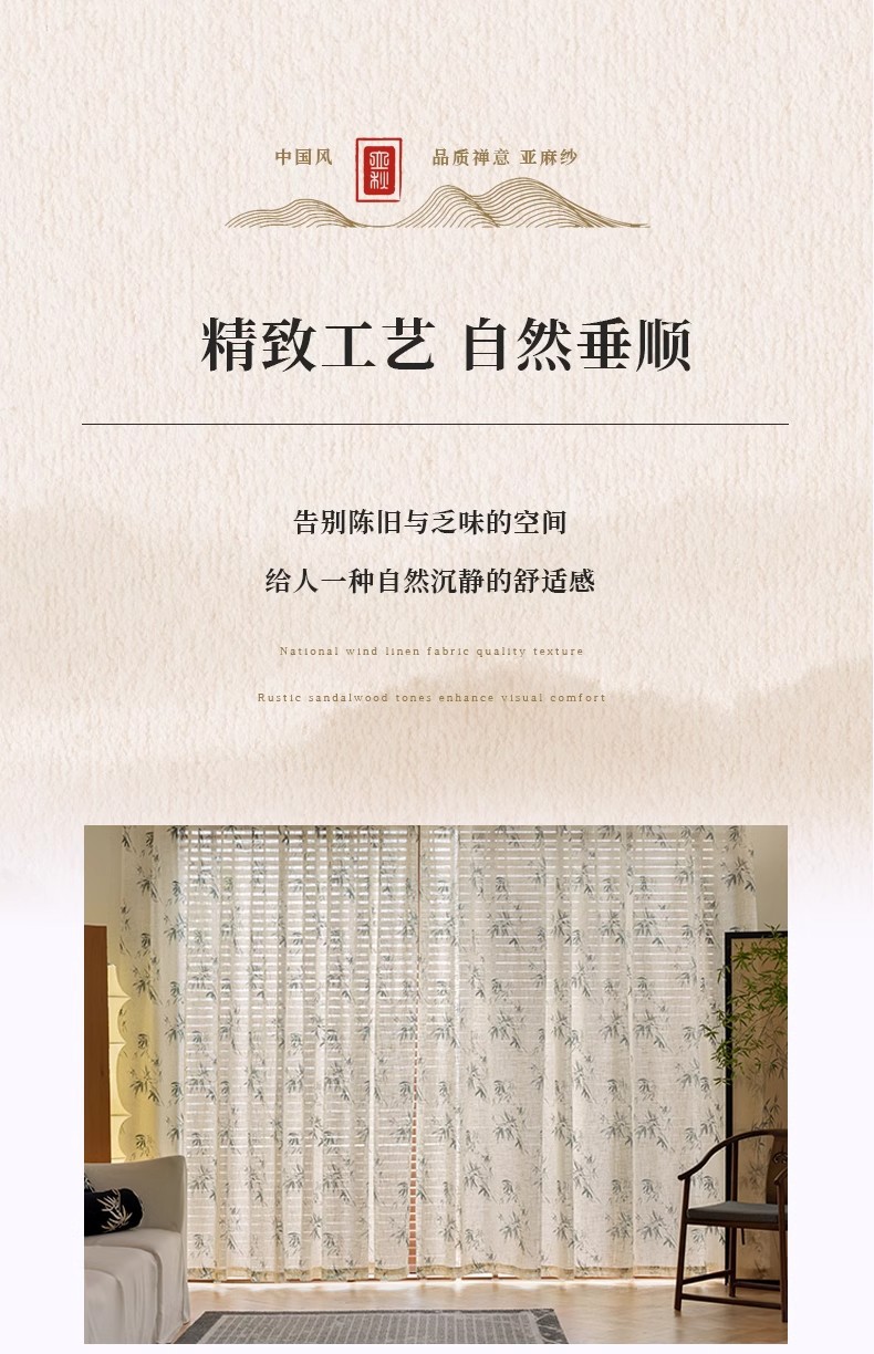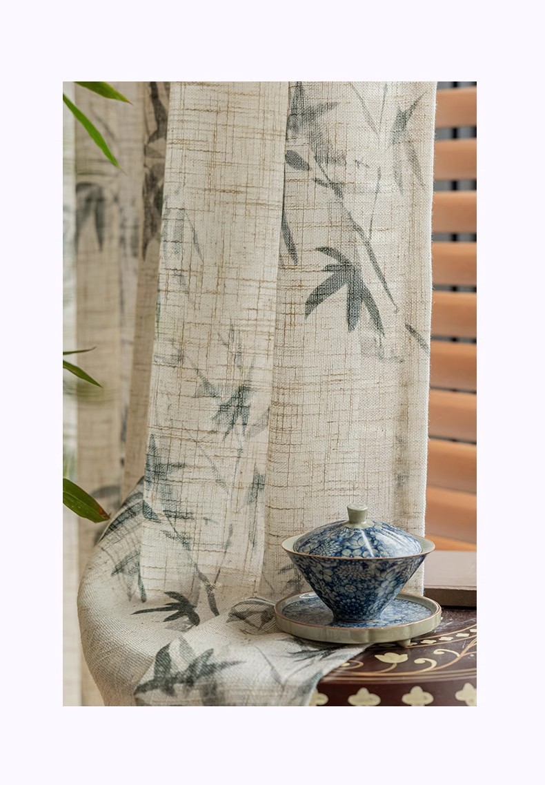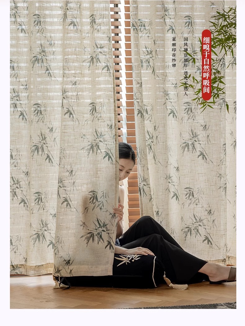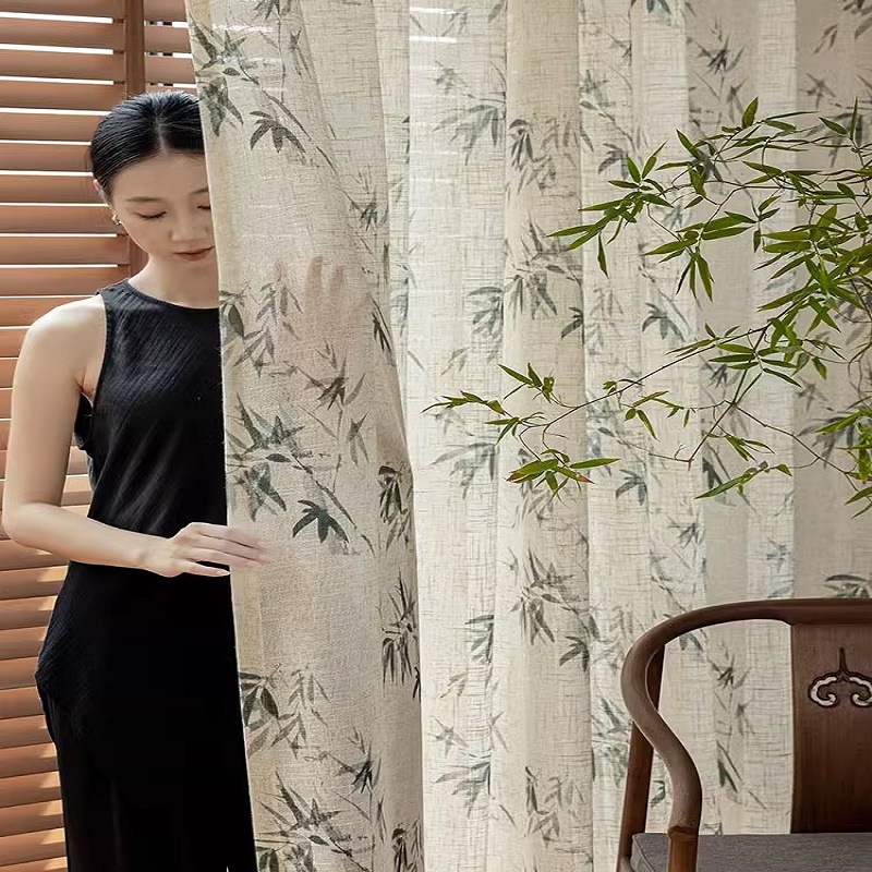 중국 미학 린넨 커튼 거즈 커튼 새로운 중국 풍경 대나무 선 창 화면 골동품 고전 중국 스타일 연구스토어 가기