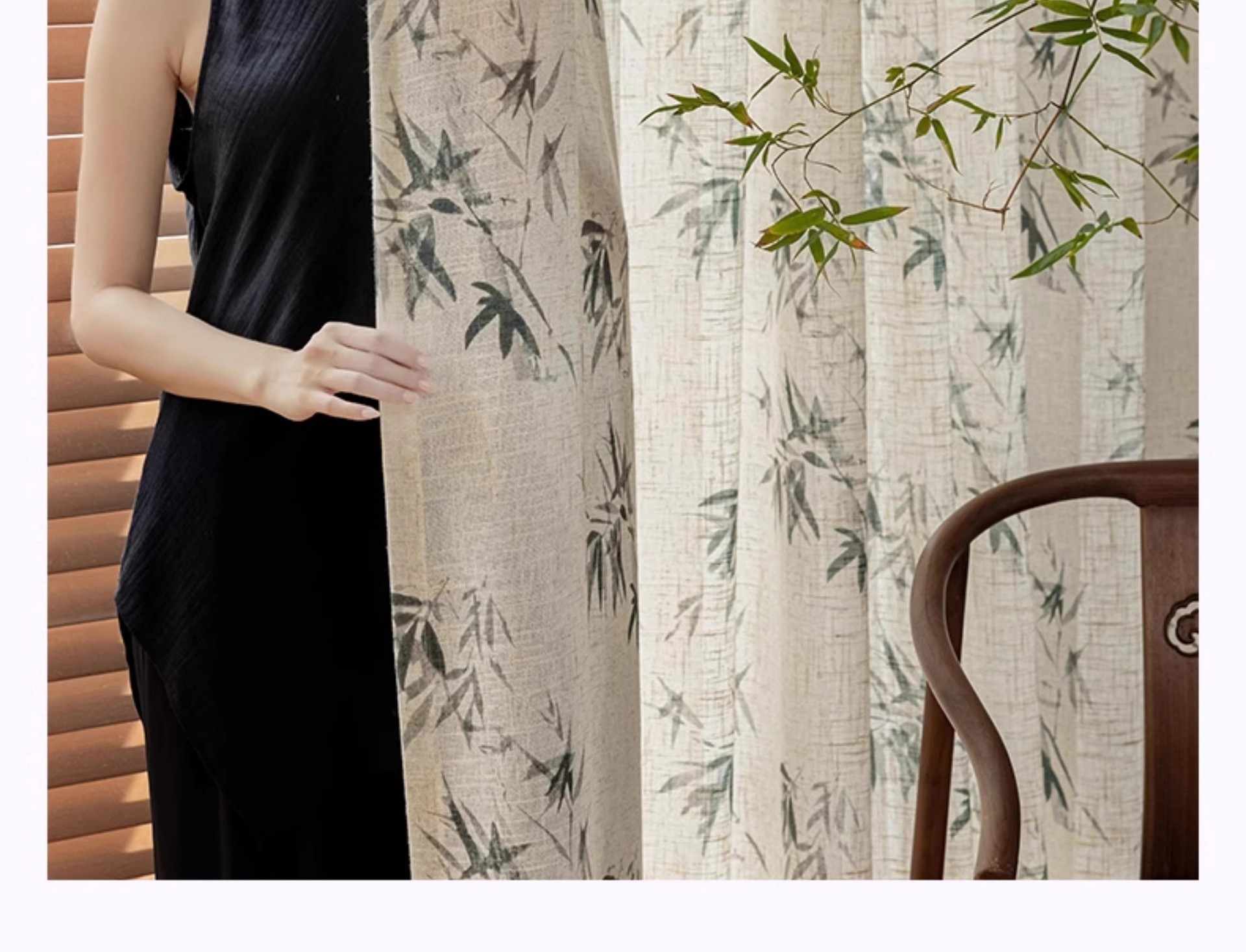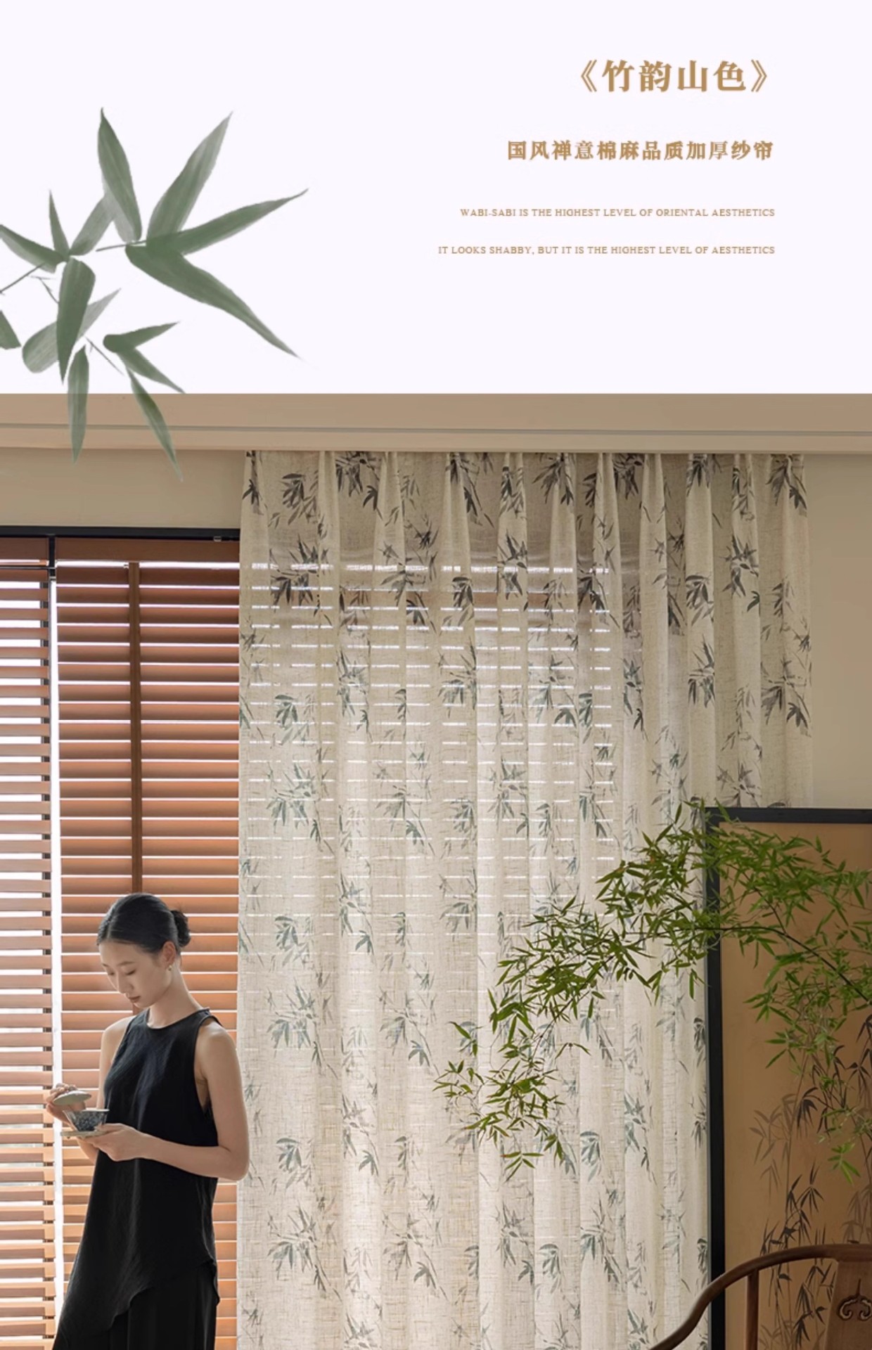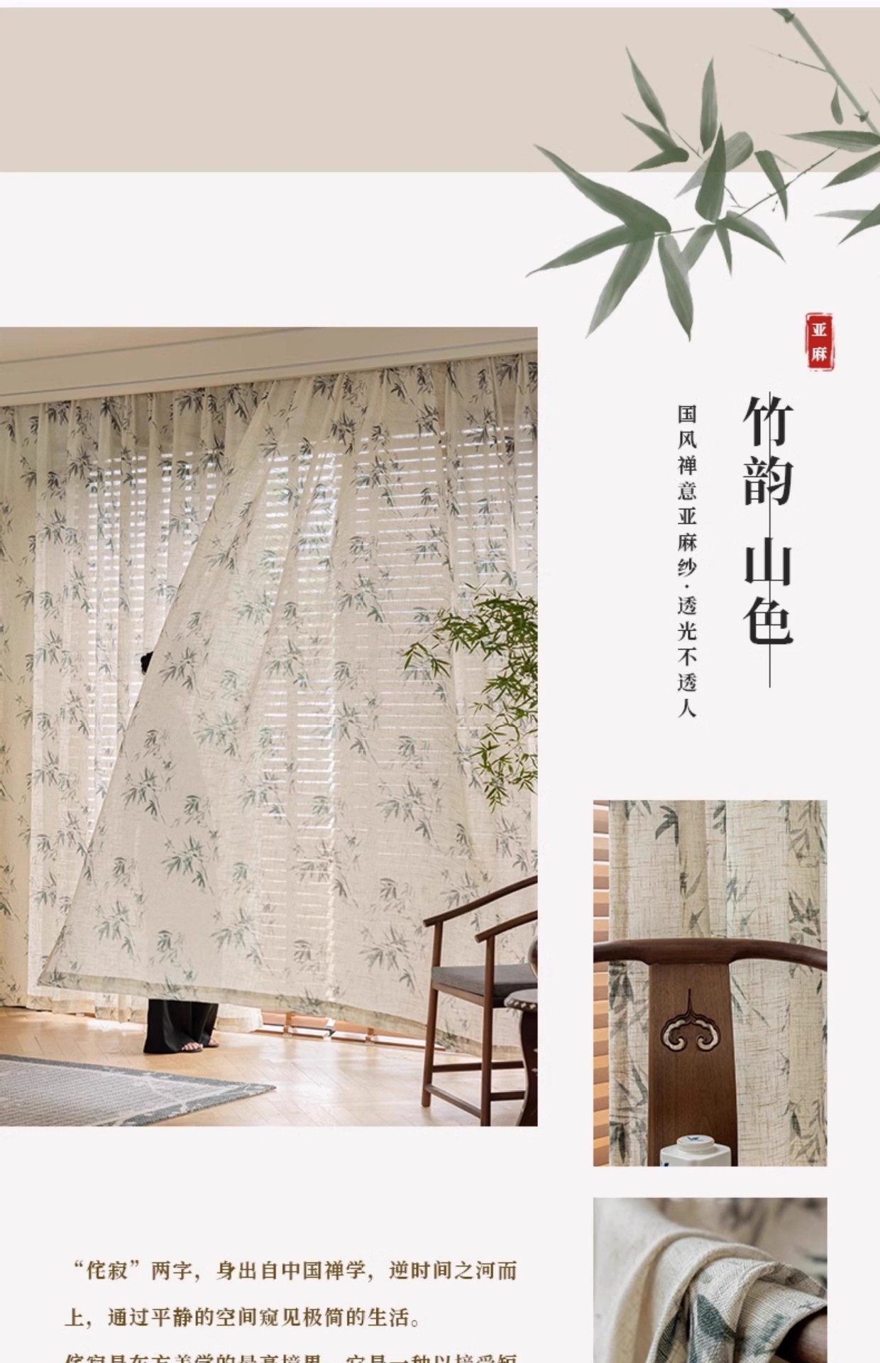 중국 미학 린넨 커튼 거즈 커튼 새로운 중국 풍경 대나무 선 창 화면 골동품 고전 중국 스타일 연구