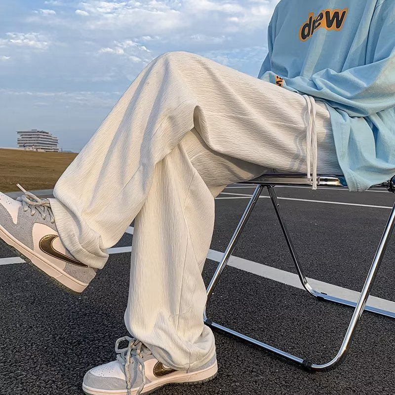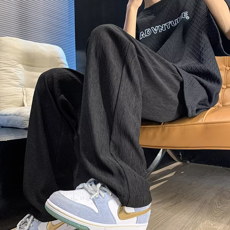 Lj直筒阔腿裤子纹坠感休闲长裤男春季ins宽松男生潮流拖地裤스토어 가기