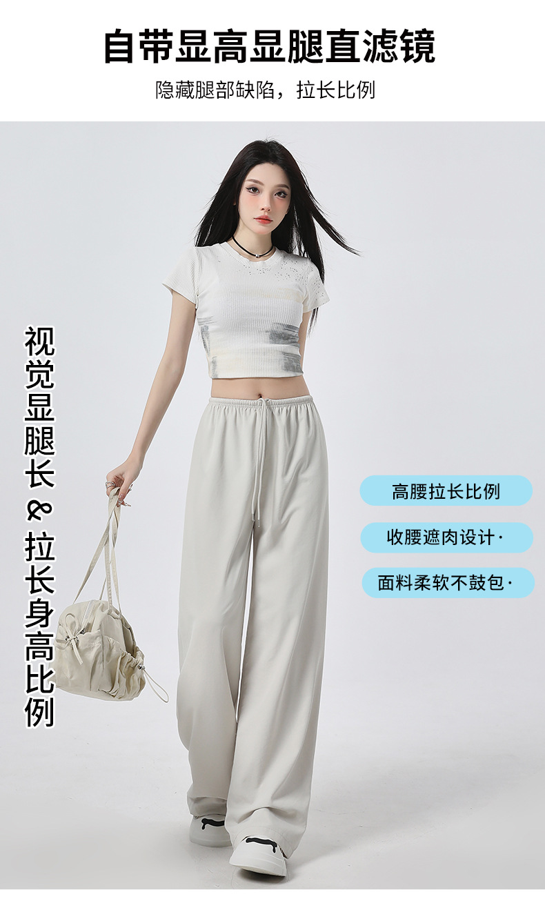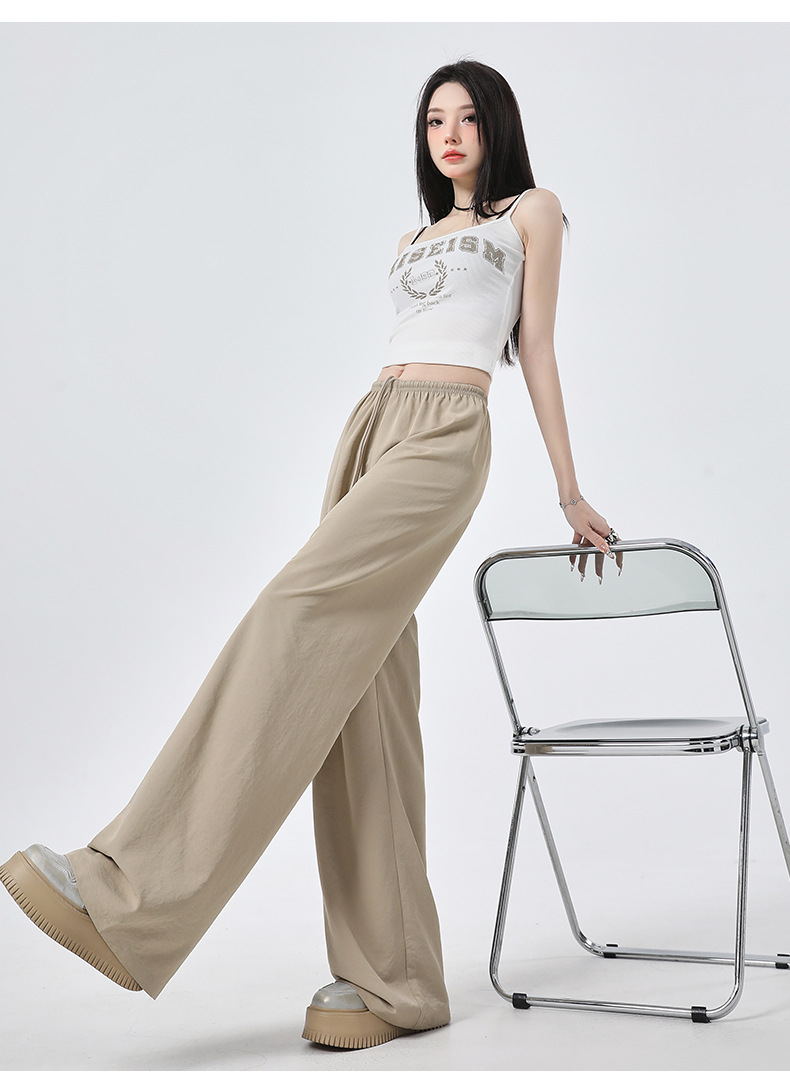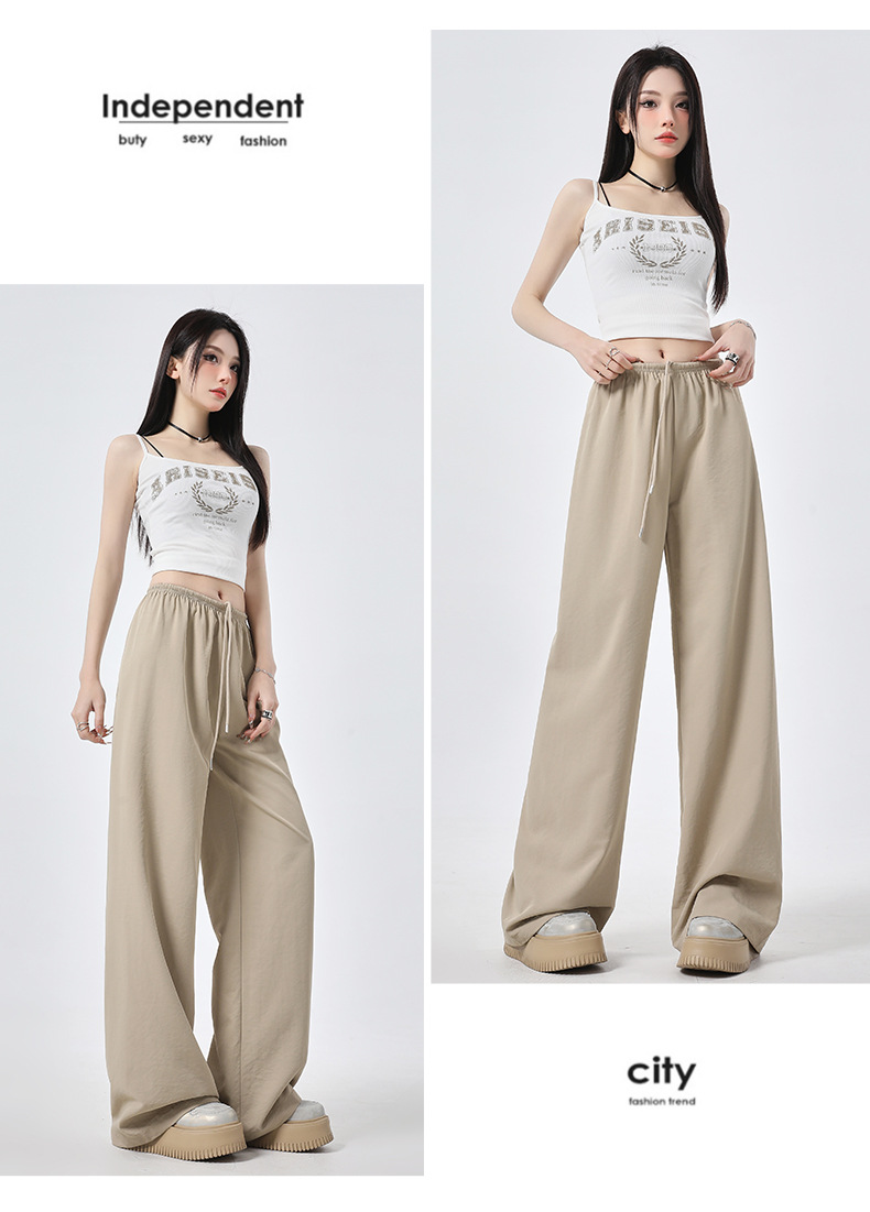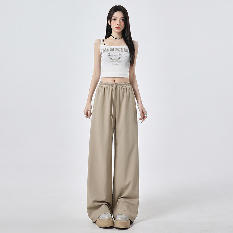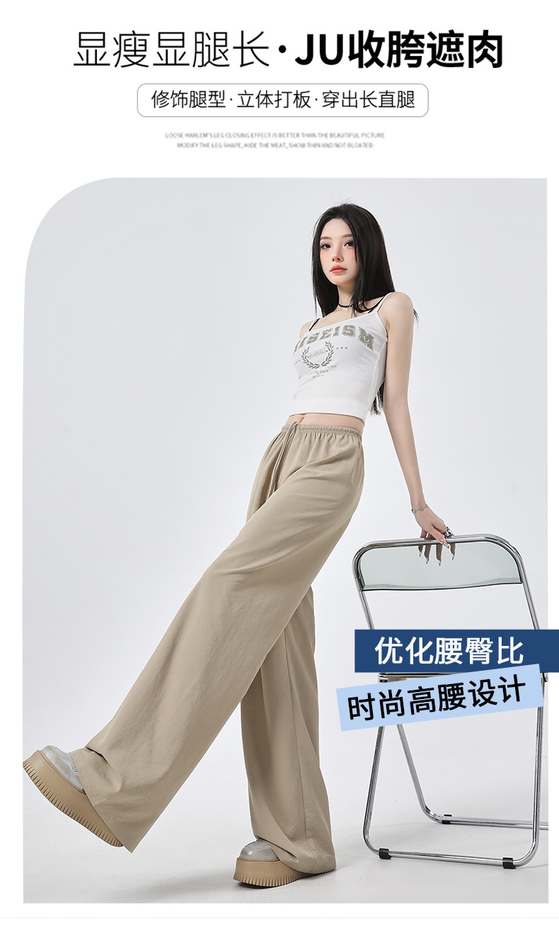 높은 허리 느슨한 넓은 다리 바지 슬림 체크 무늬 캐주얼 바지 여성용 게으른 스타일 2025 봄/여름 새로운 긴 바지스토어 가기