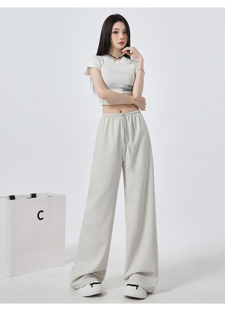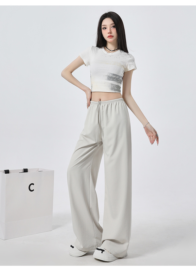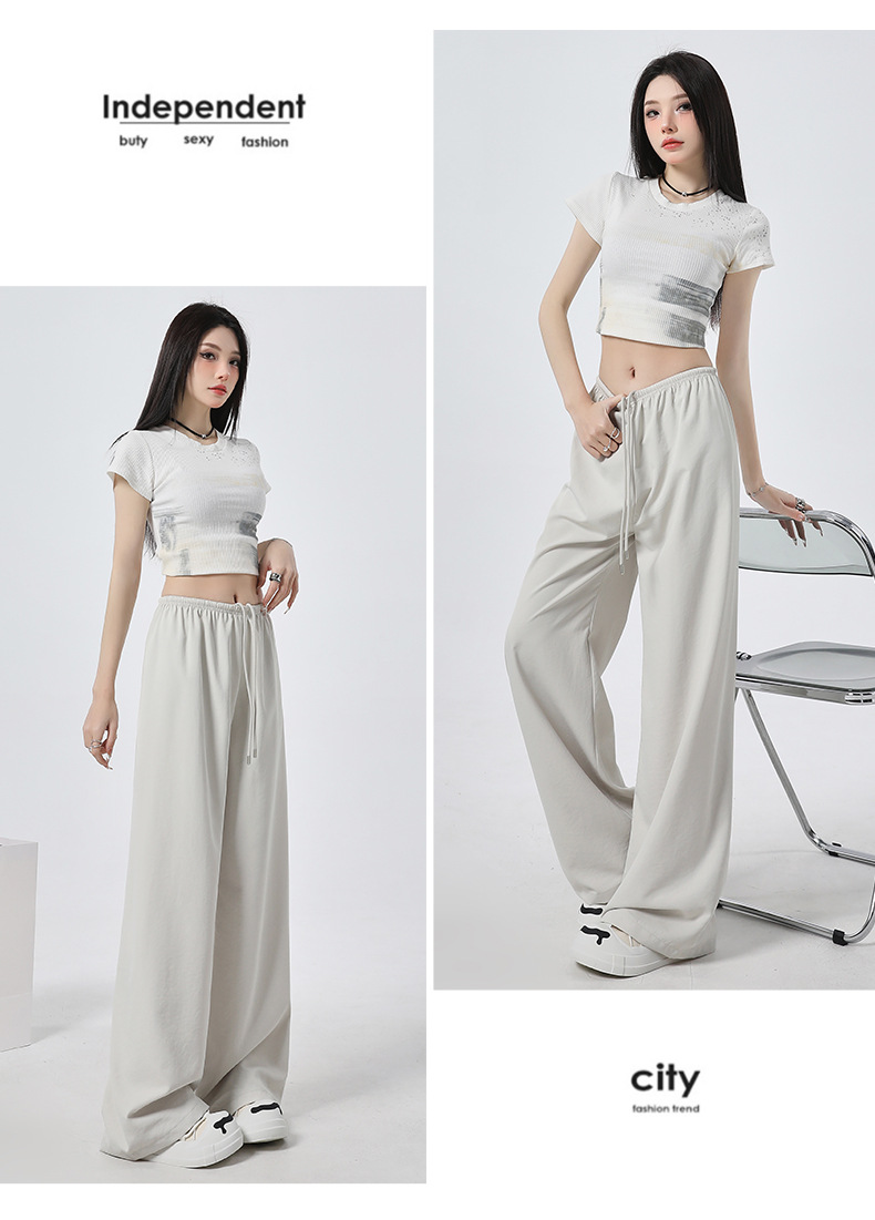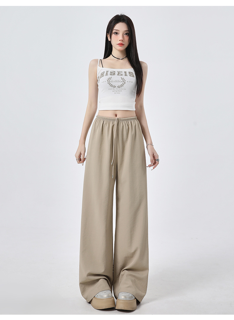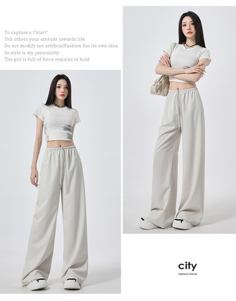 높은 허리 느슨한 넓은 다리 바지 슬림 체크 무늬 캐주얼 바지 여성용 게으른 스타일 2025 봄/여름 새로운 긴 바지스토어 가기