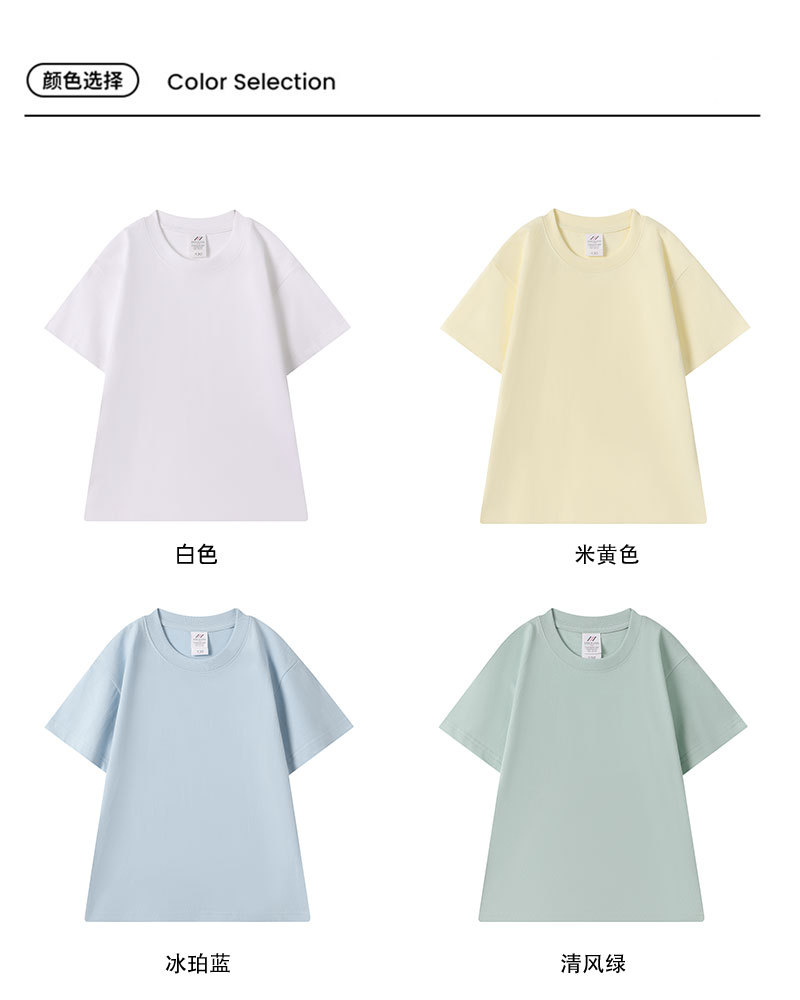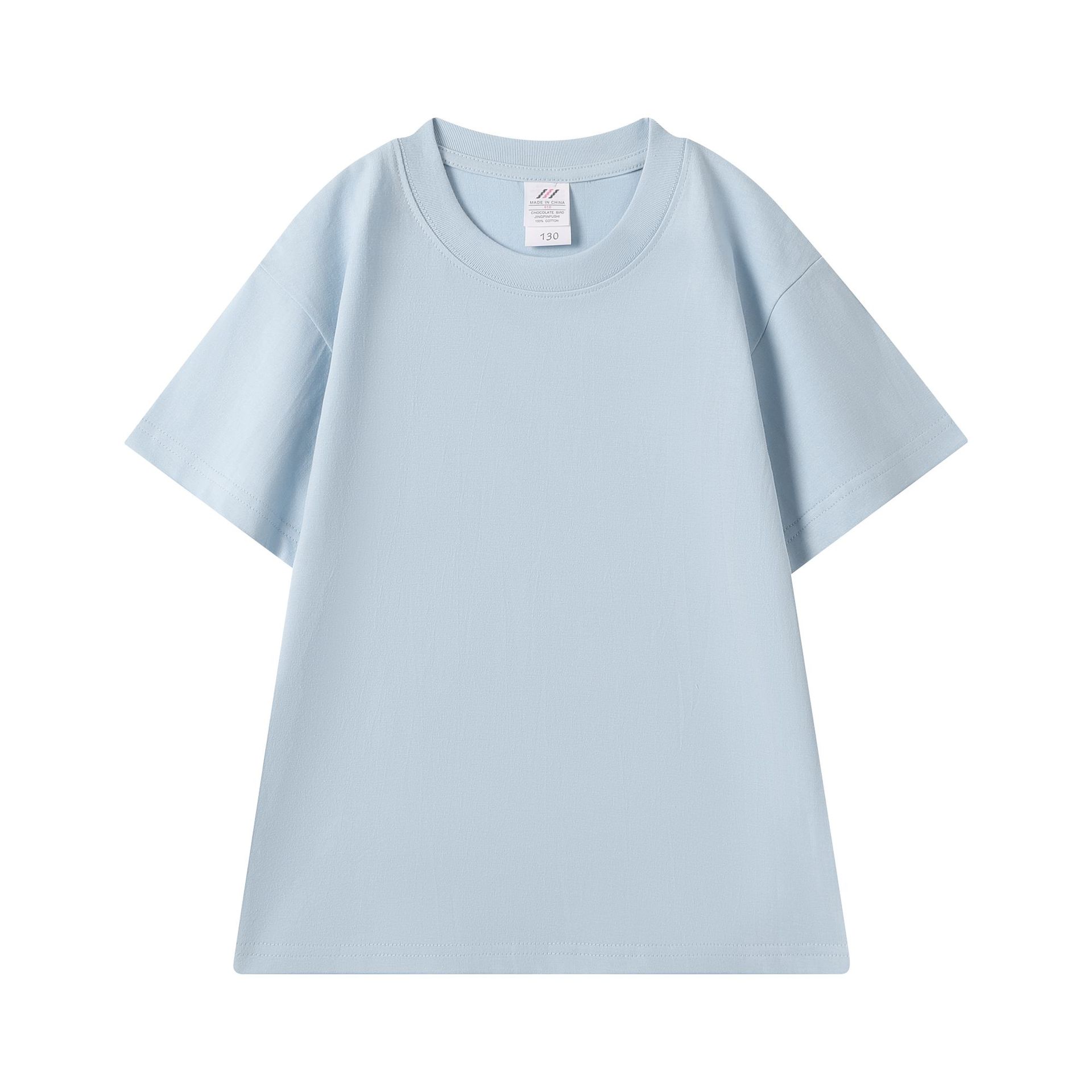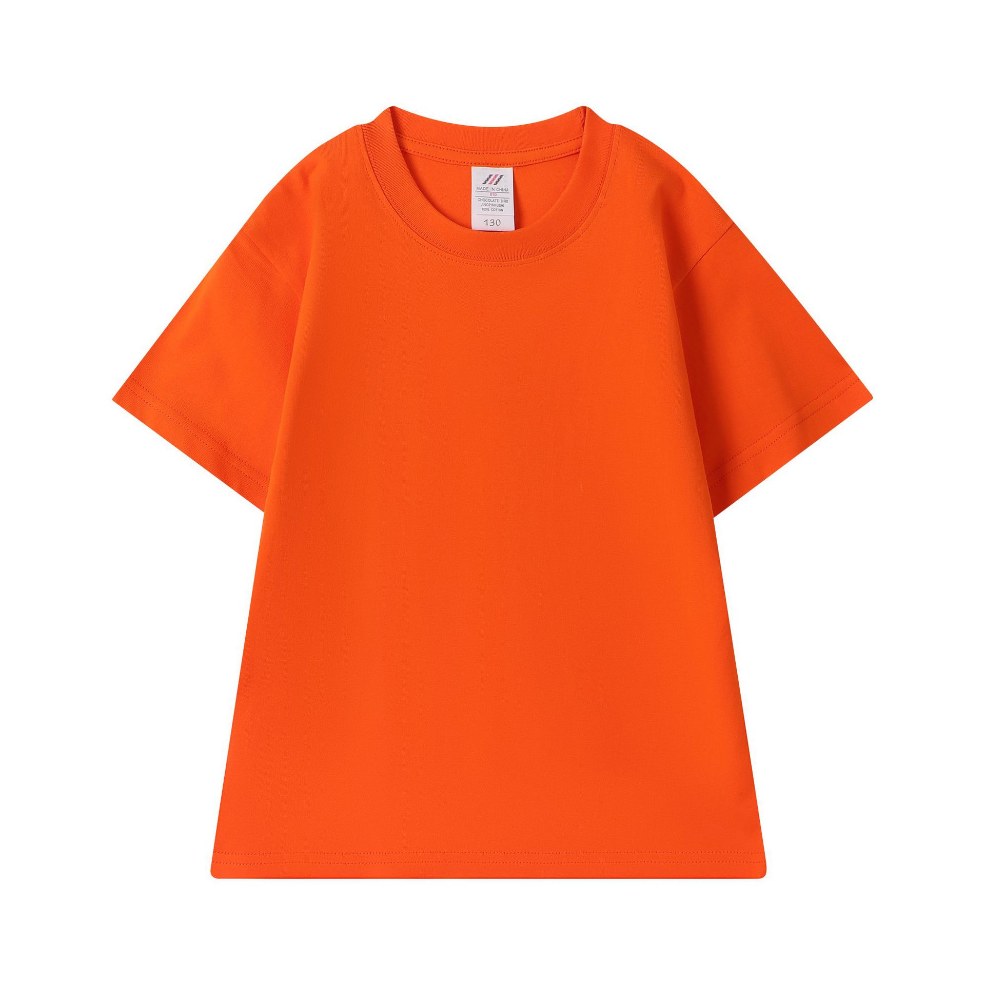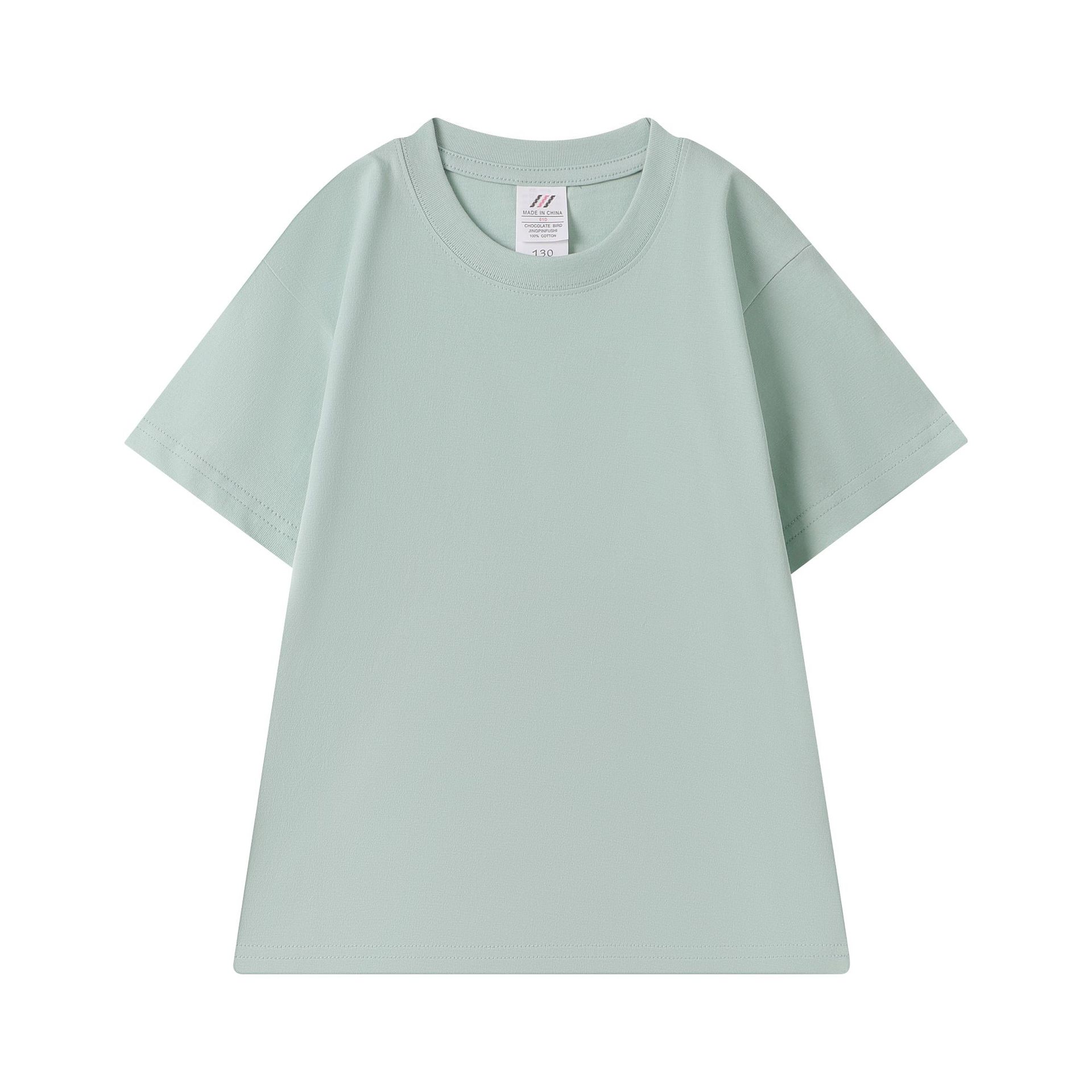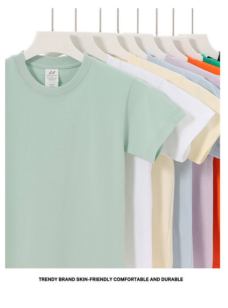 봄과 여름 새로운 230g 면화 어린이 둥근 목 짧은 소매 티셔츠 도매 조수 브랜드 아동복 매일 단색면 짧은 t스토어 가기