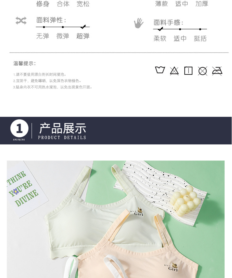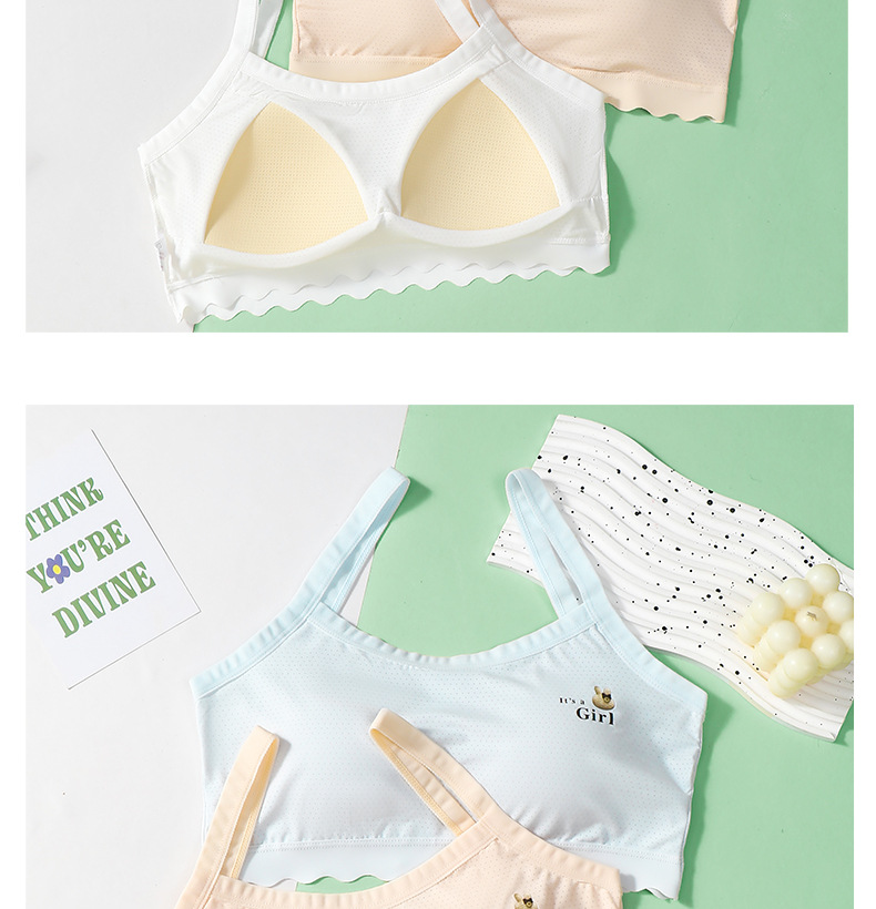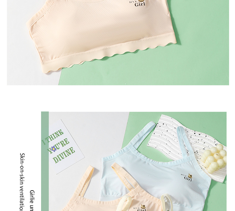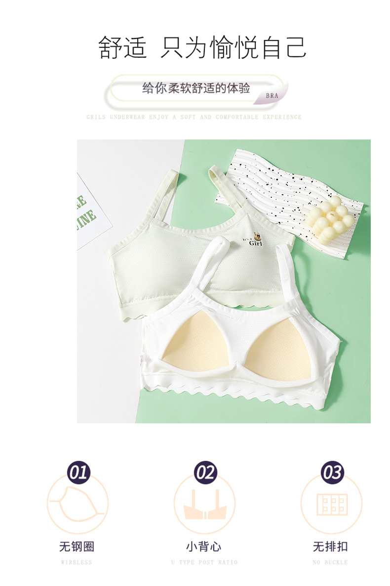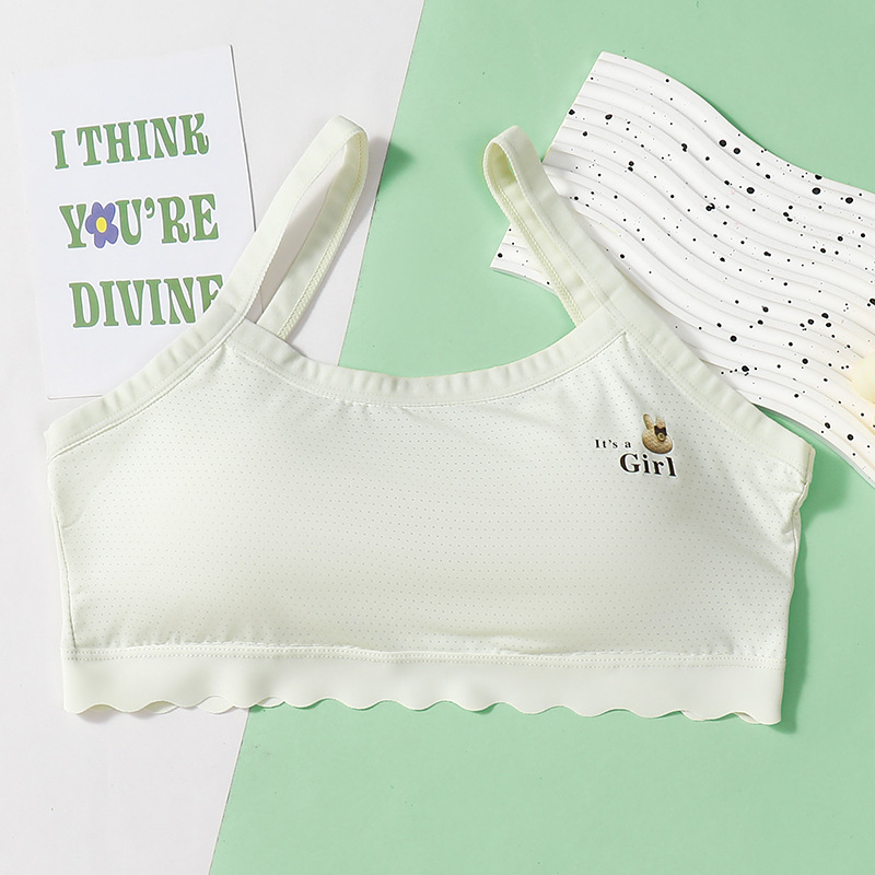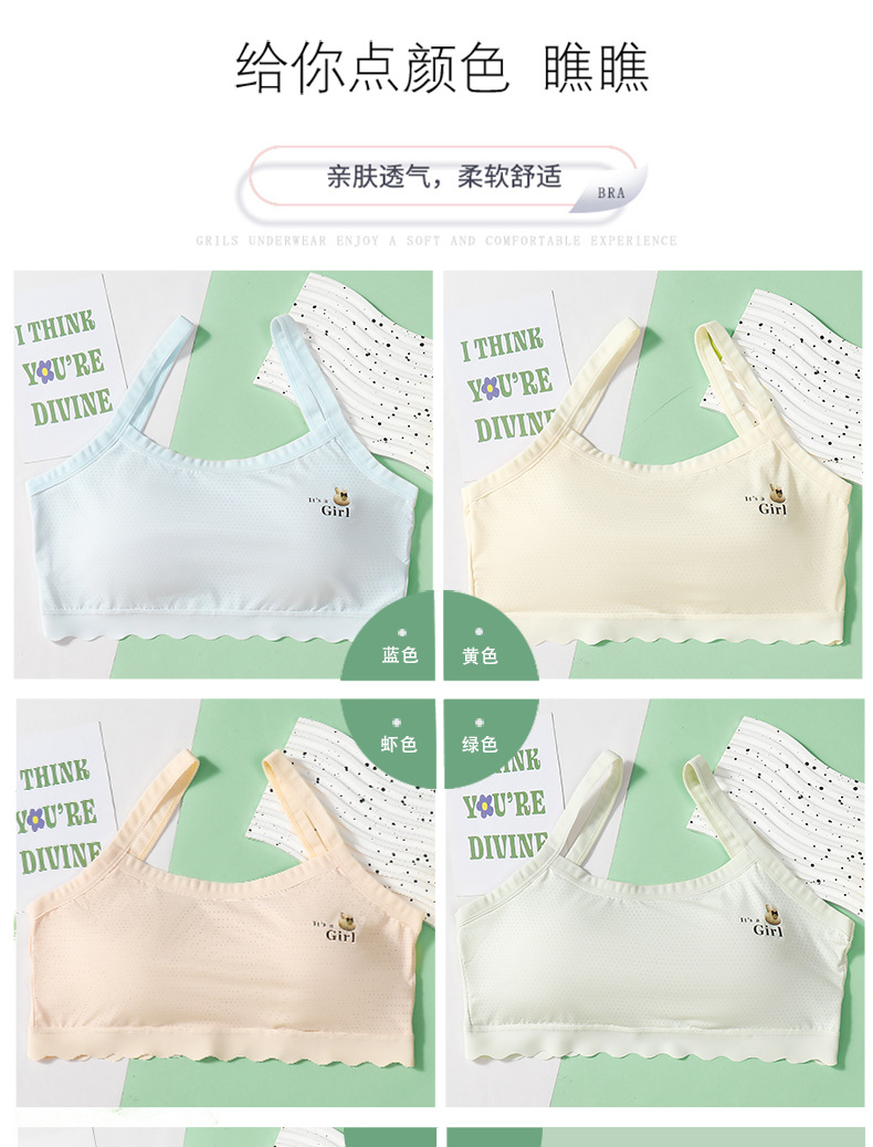 속옷 학생 브라 소녀 사춘기 카미솔 아이스 실크 통기성 안티 범프 고정 컵 중학교 브라스토어 가기