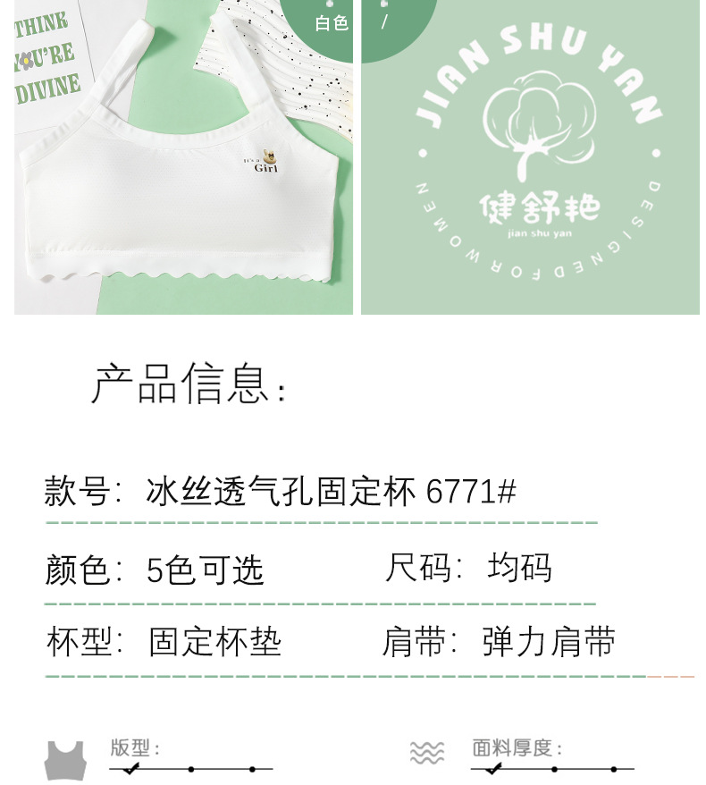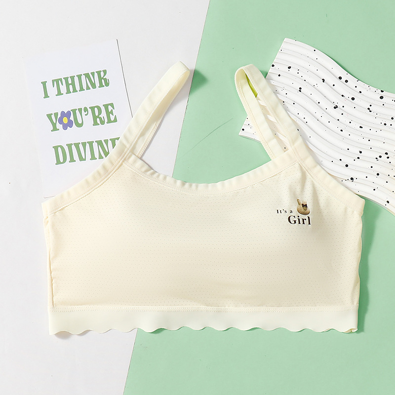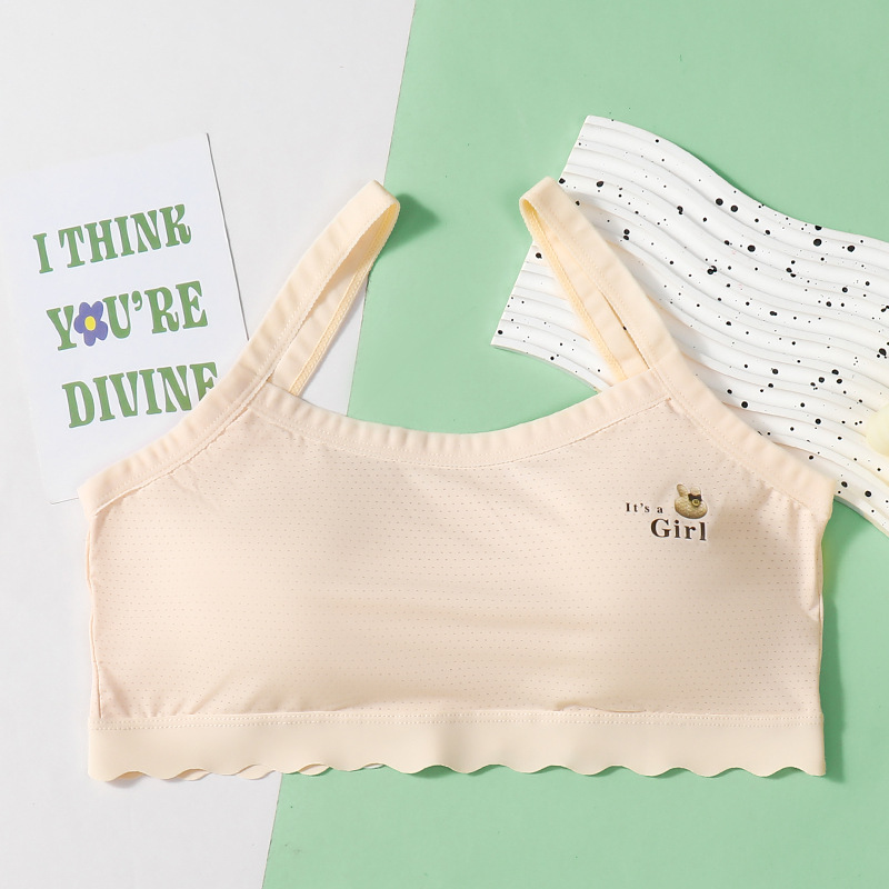 속옷 학생 브라 소녀 사춘기 카미솔 아이스 실크 통기성 안티 범프 고정 컵 중학교 브라