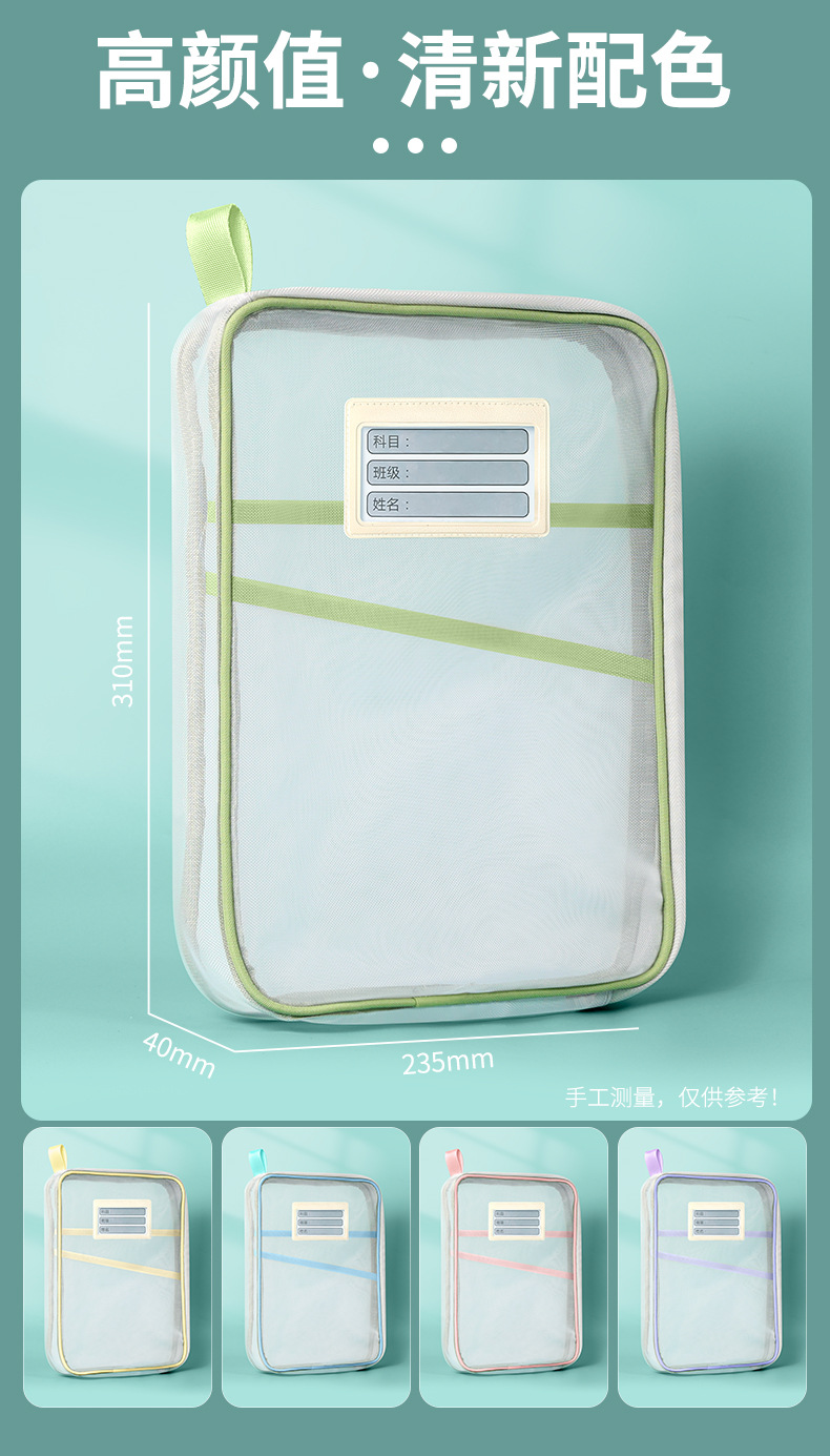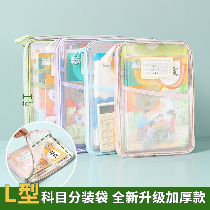 L 자형 주제 분류 가방 투명 문서 가방 지퍼 메쉬 큰 오프닝 학생 손 들고 책 가방 검사 가방