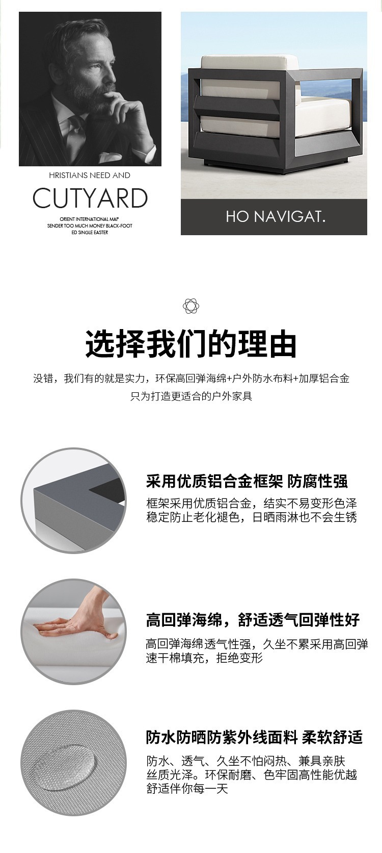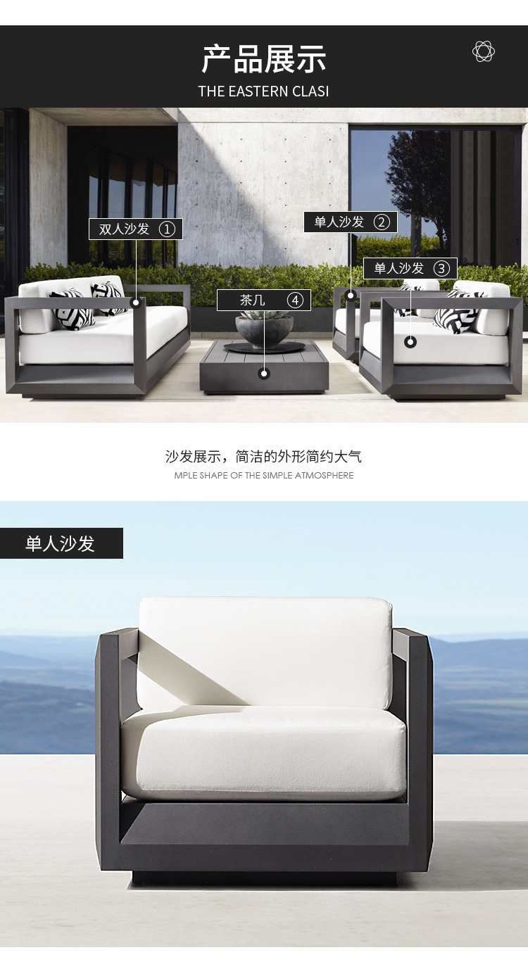 야외 소파 고급 알루미늄 합금 안뜰 모델 룸 야외 테라스 정원 방수 호텔 커피 테이블 가구스토어 가기