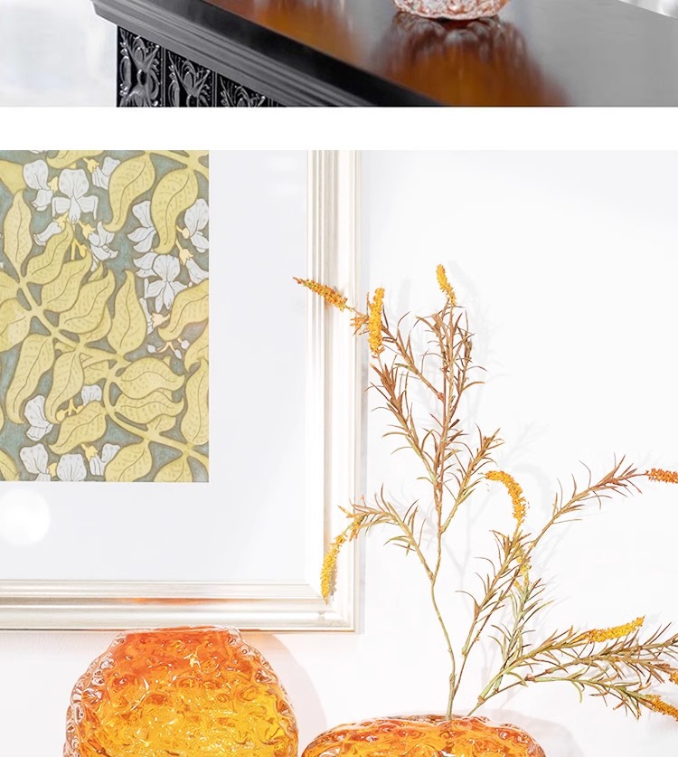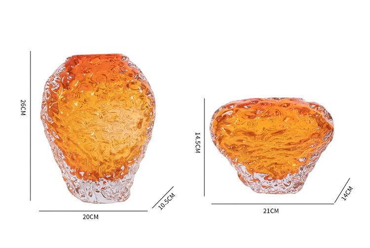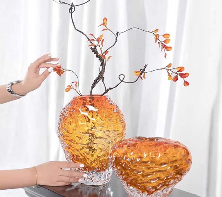 每一个花瓶都是人工吹制的纯手工花瓶会出现气泡、流线、磨痕、杂质、黑白点:色料不均、底部打磨痕迹等手工痕迹,这是手工花瓶无法避免的,非瑕疵,介意的亲们请谨慎下单。
