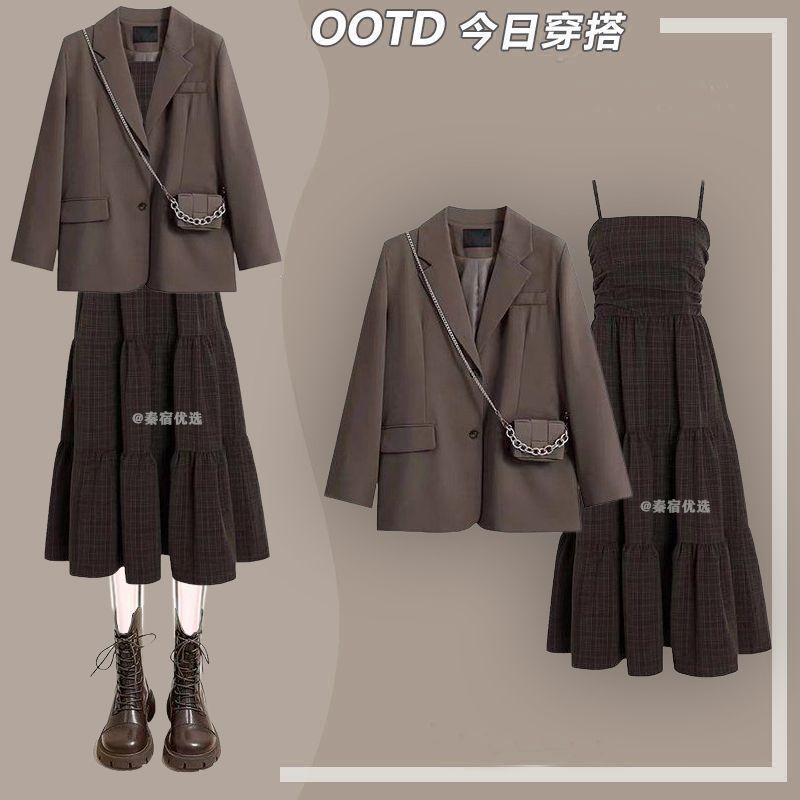 봄 · 가을 세트 입고 여자 2025 새 한국식 스키니 원피스 투피스 세트 재킷스토어 가기