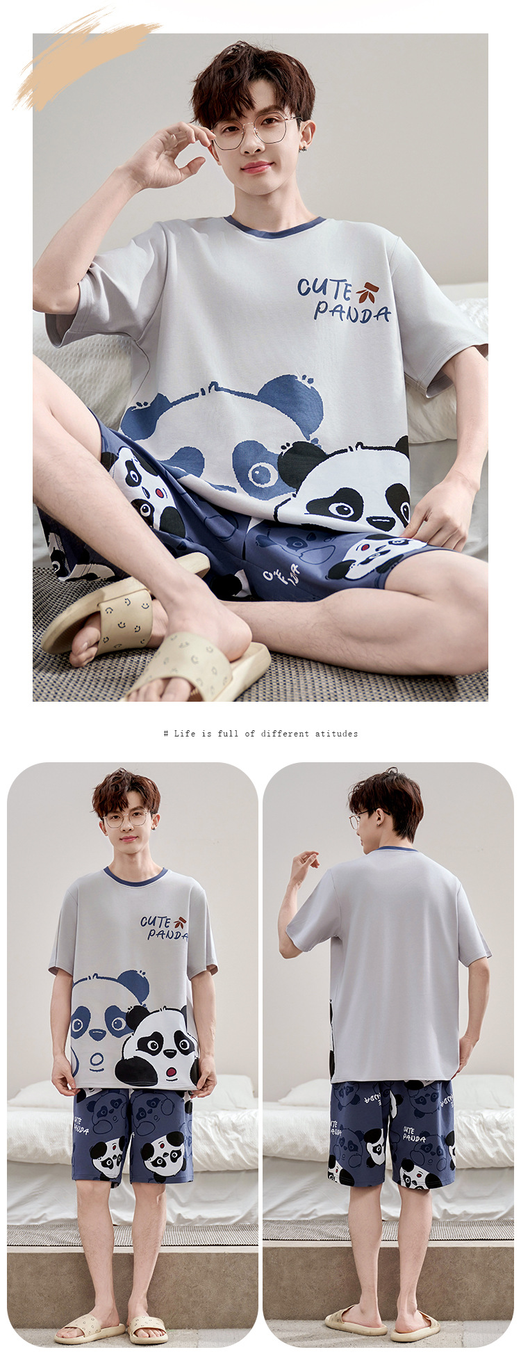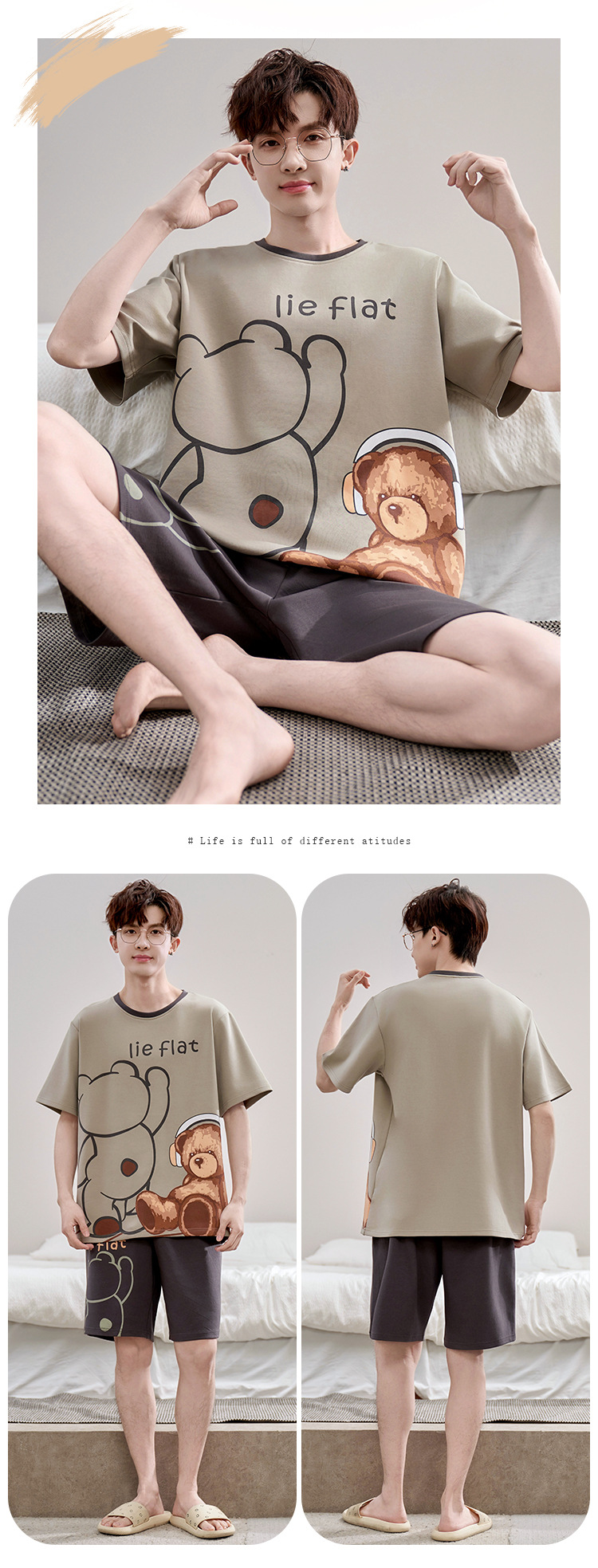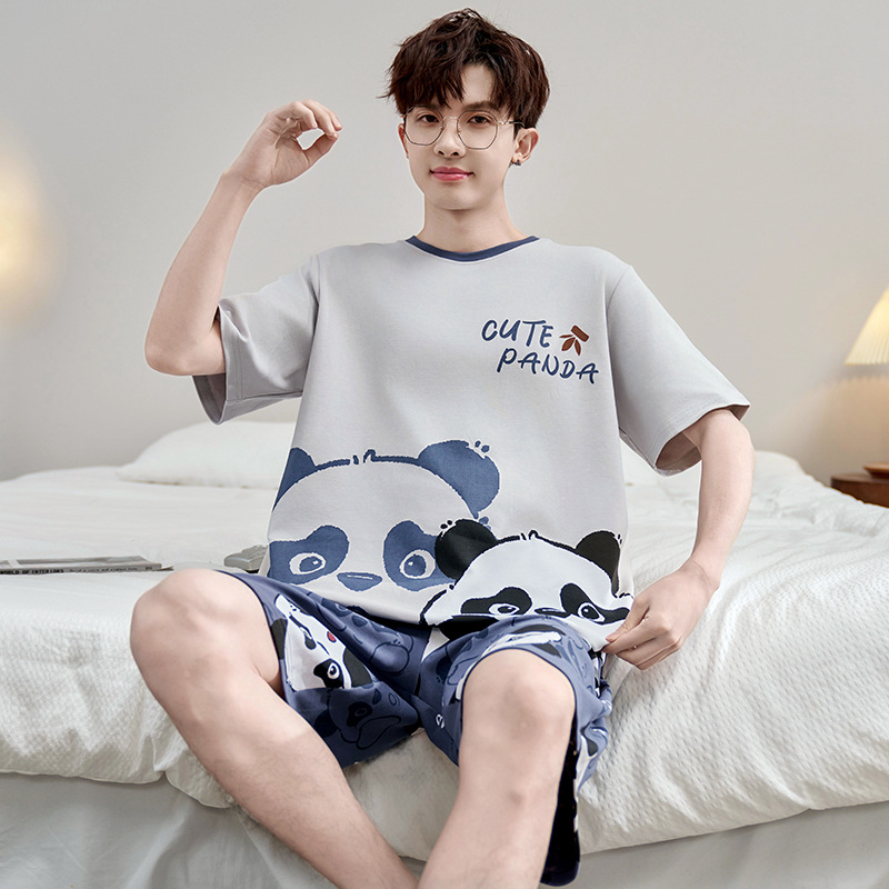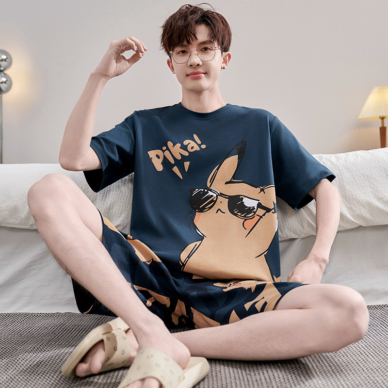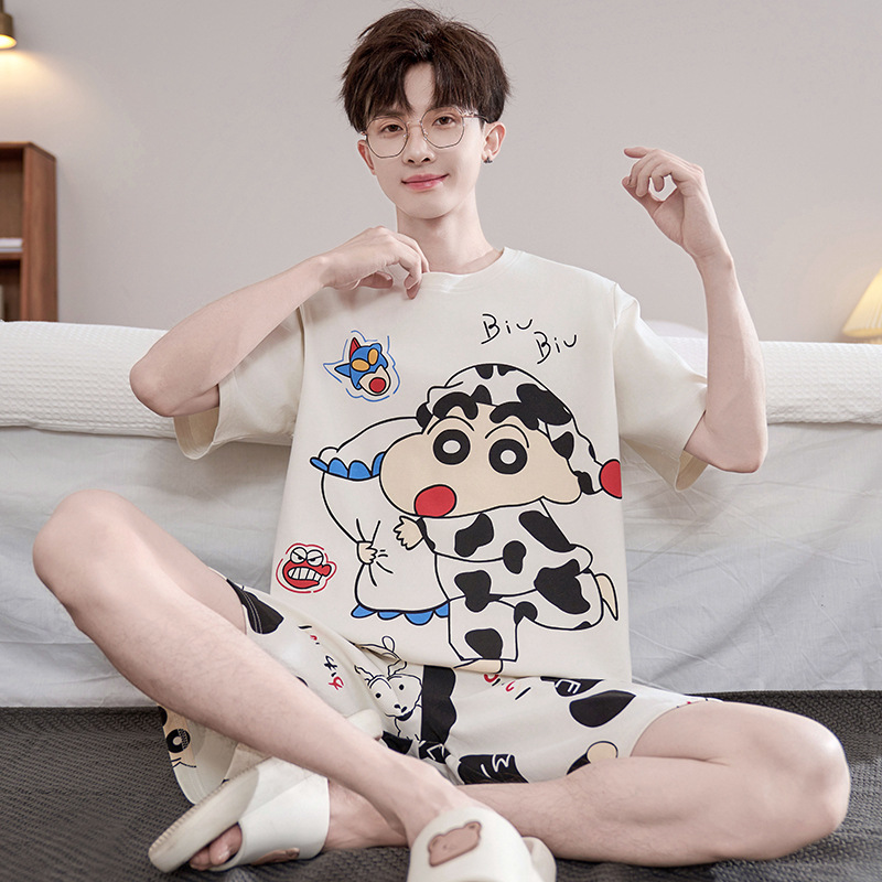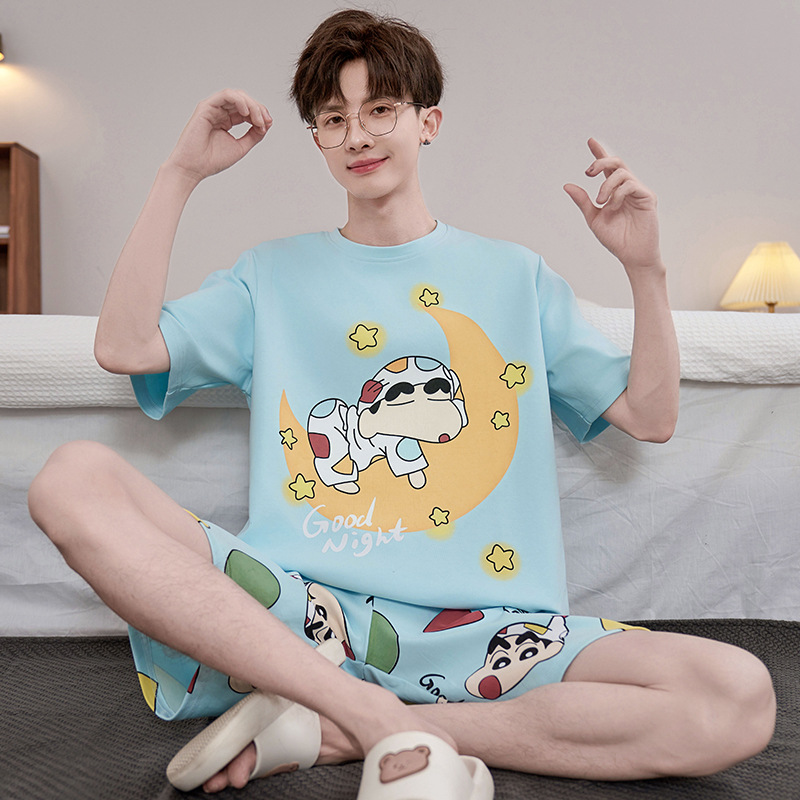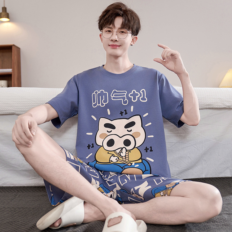 2025 새로운 십대 짧은 소매 잠옷 남자의 순면 만화 고등학생 18 세 큰 소년 20 세 가정 옷스토어 가기