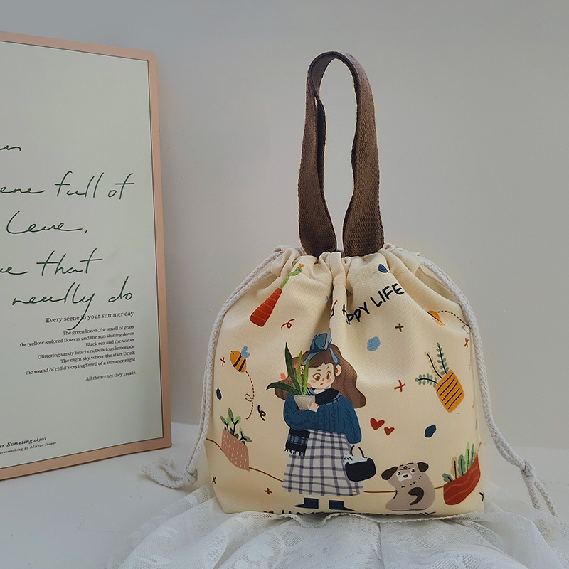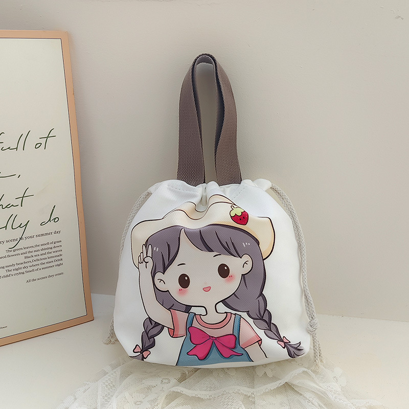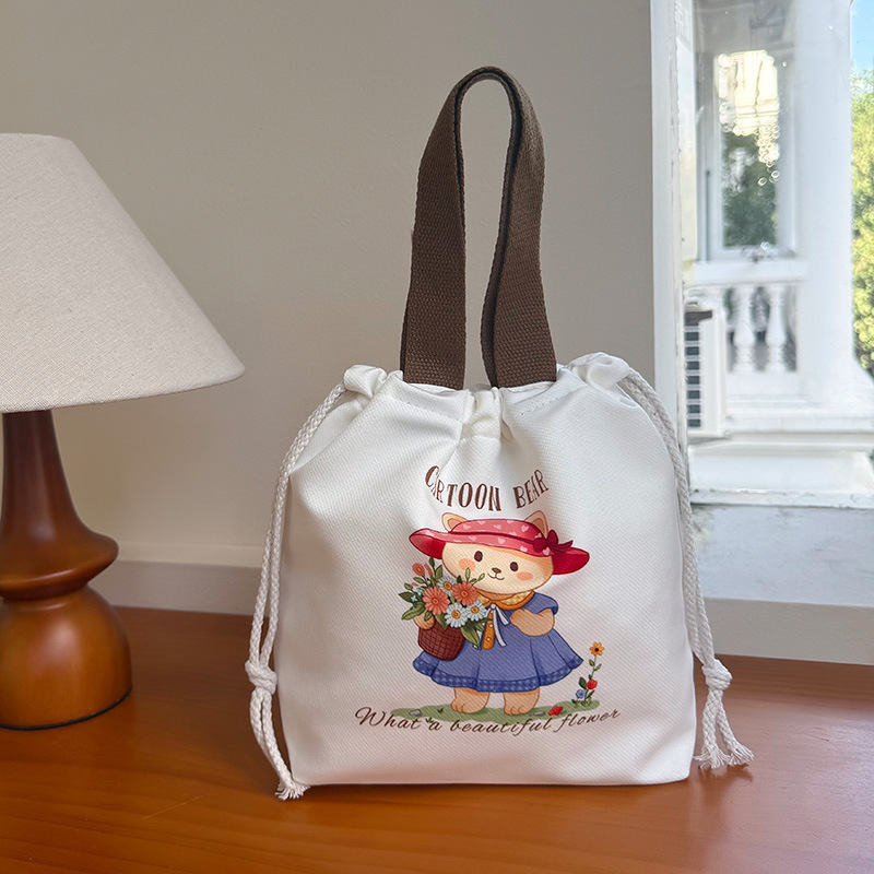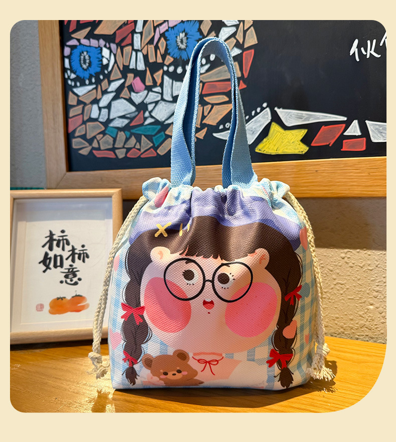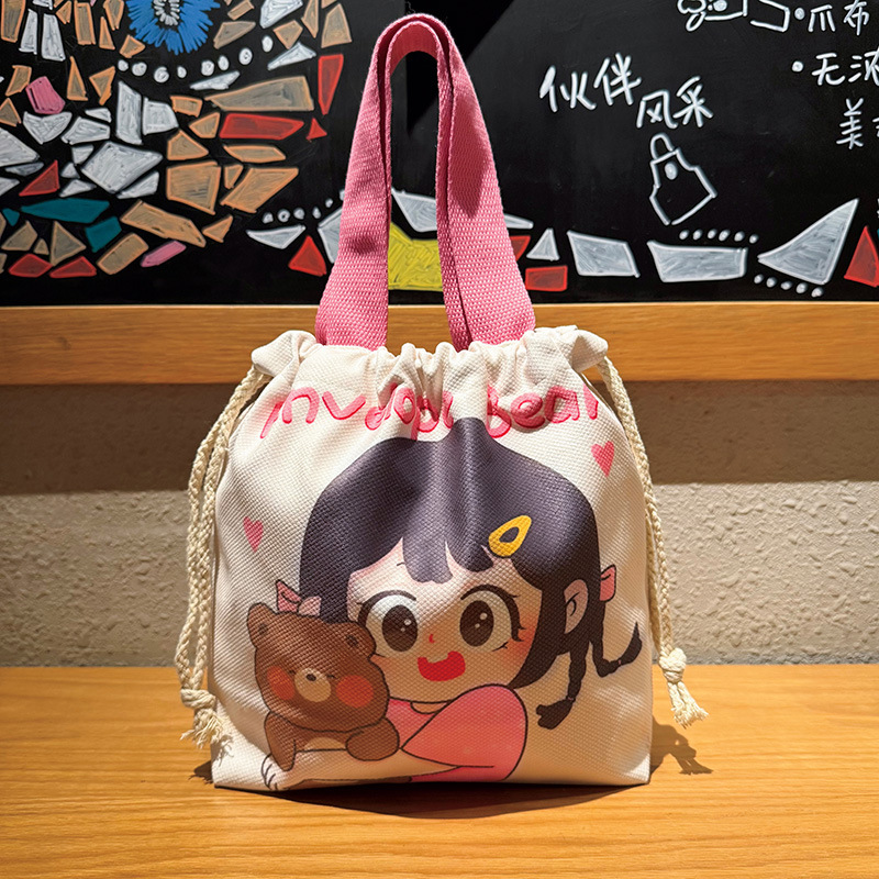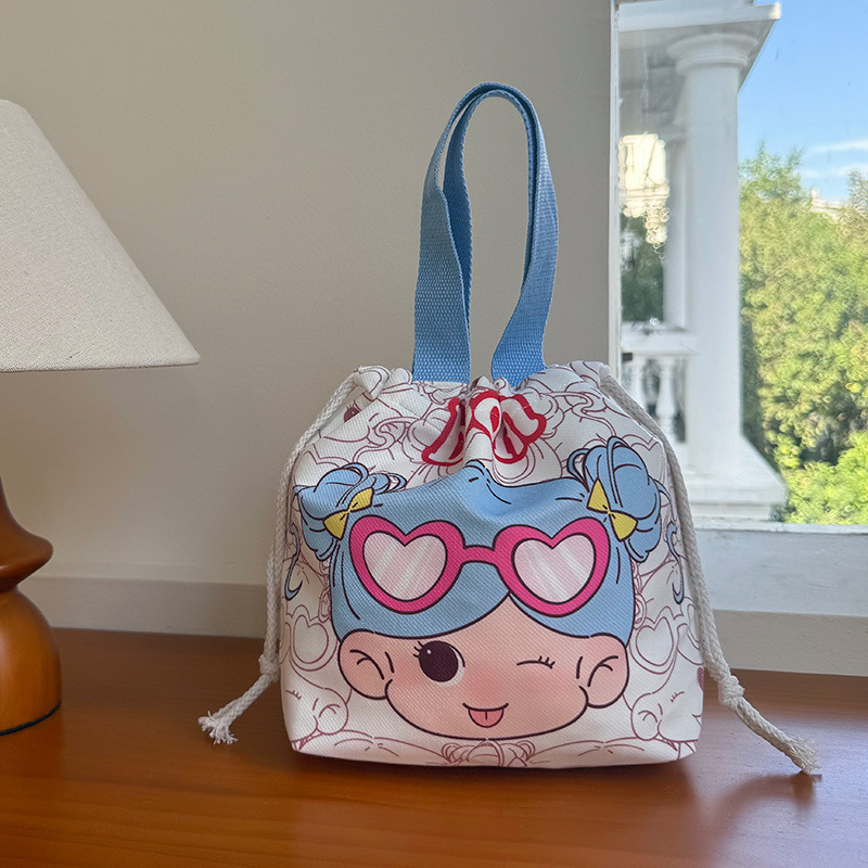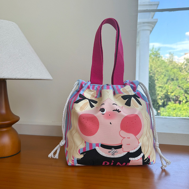 저장 가방 귀여운 만화 drawstring 포켓 도시락 가방 대용량 화장품 가방 휴대용 캔버스 가방 머리카락 세대