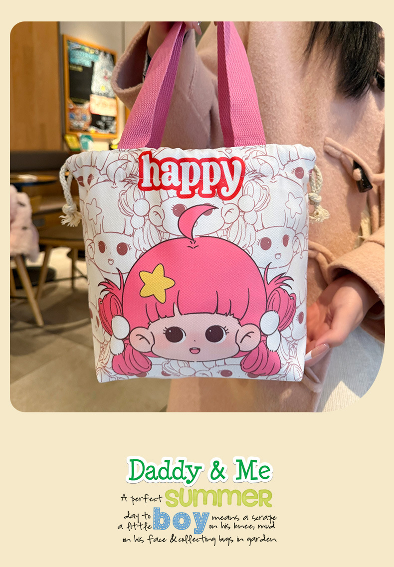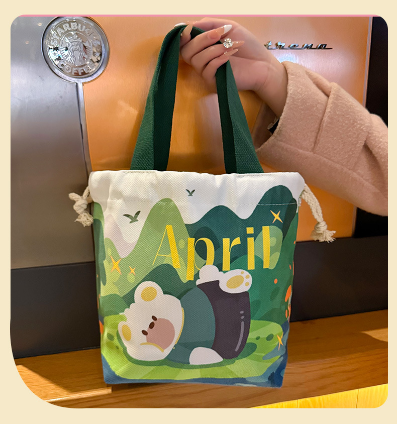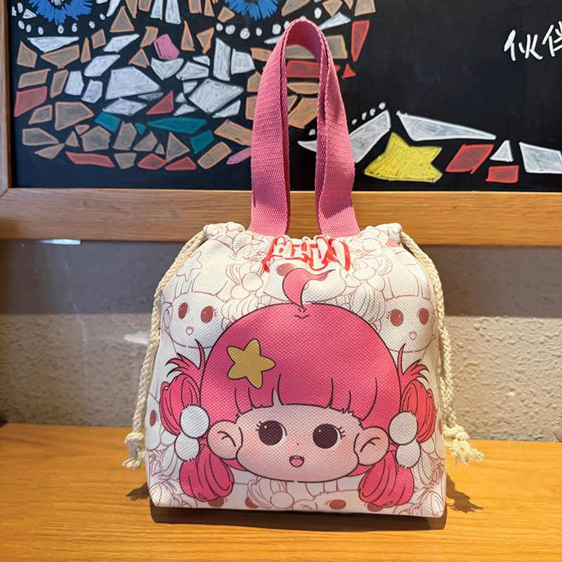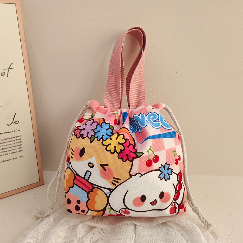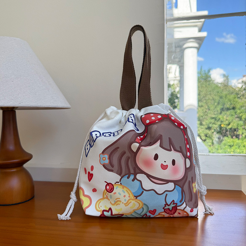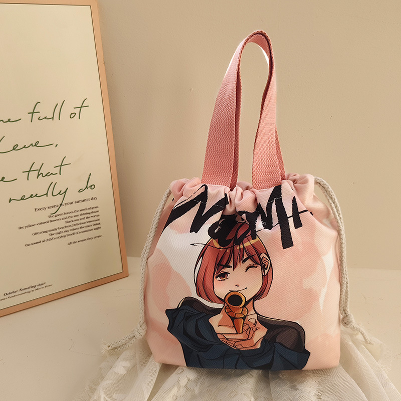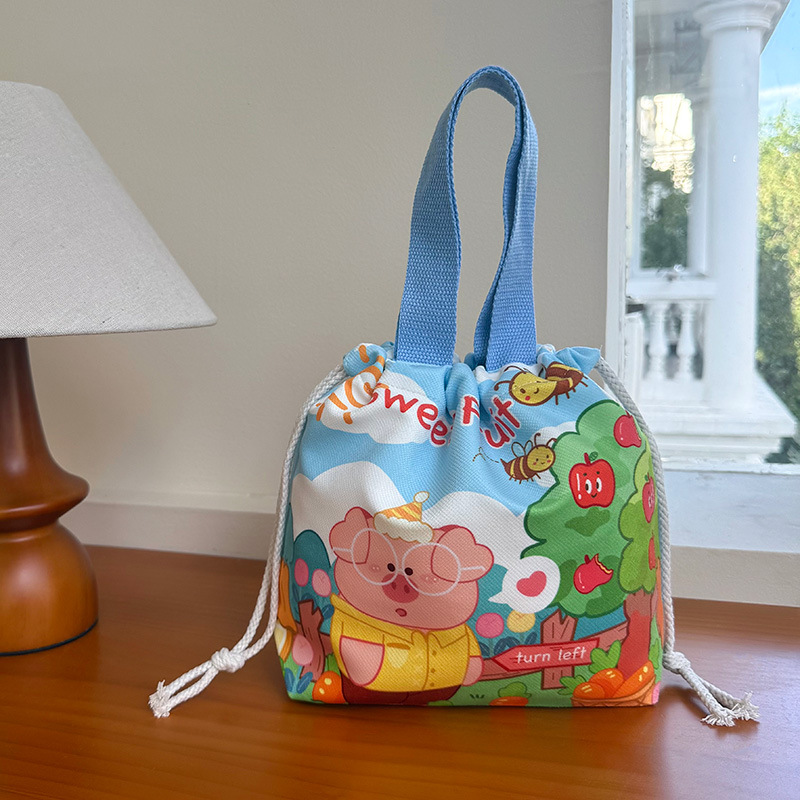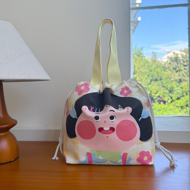 저장 가방 귀여운 만화 drawstring 포켓 도시락 가방 대용량 화장품 가방 휴대용 캔버스 가방 머리카락 세대