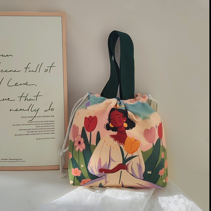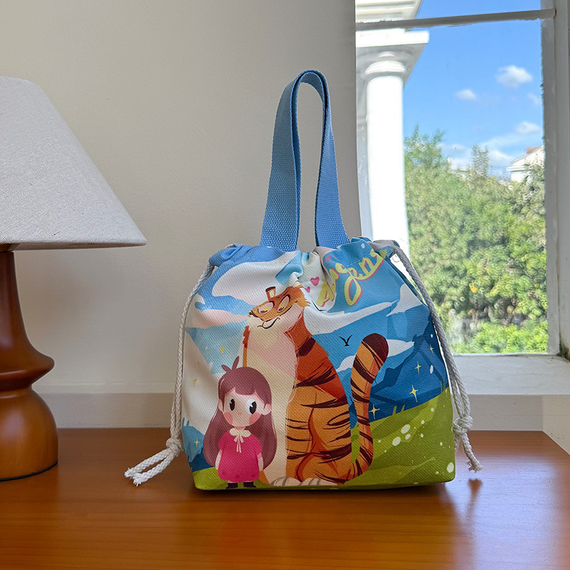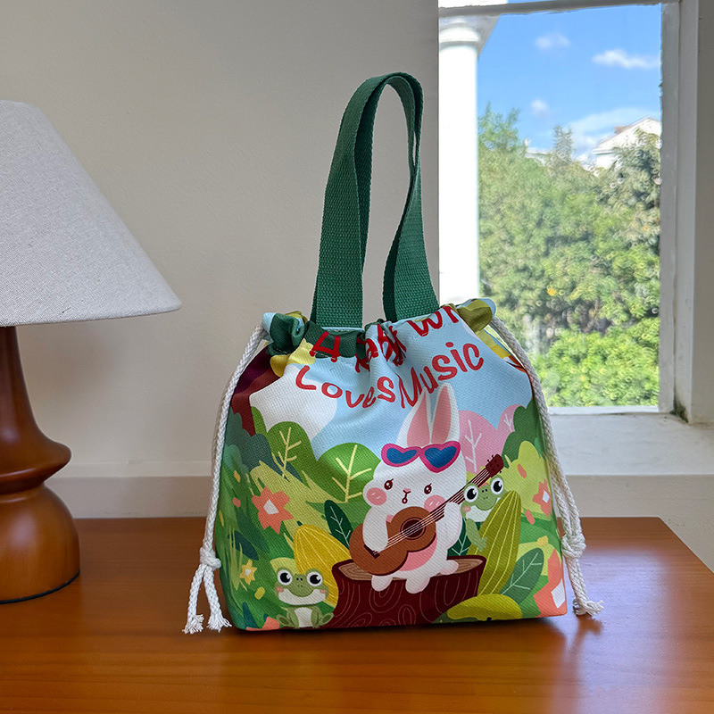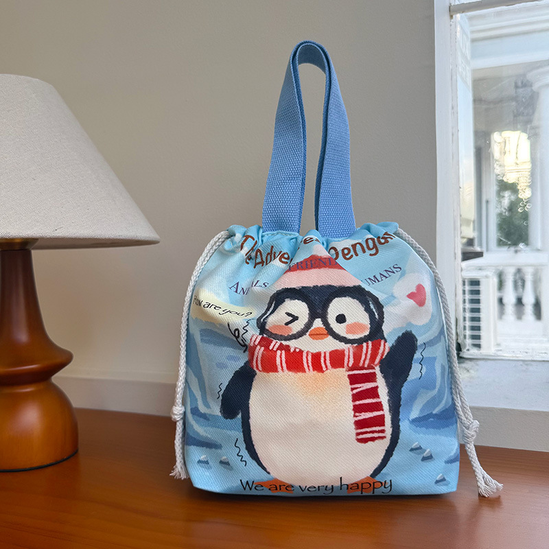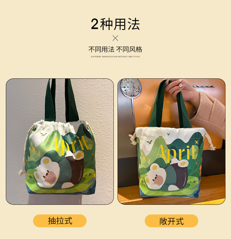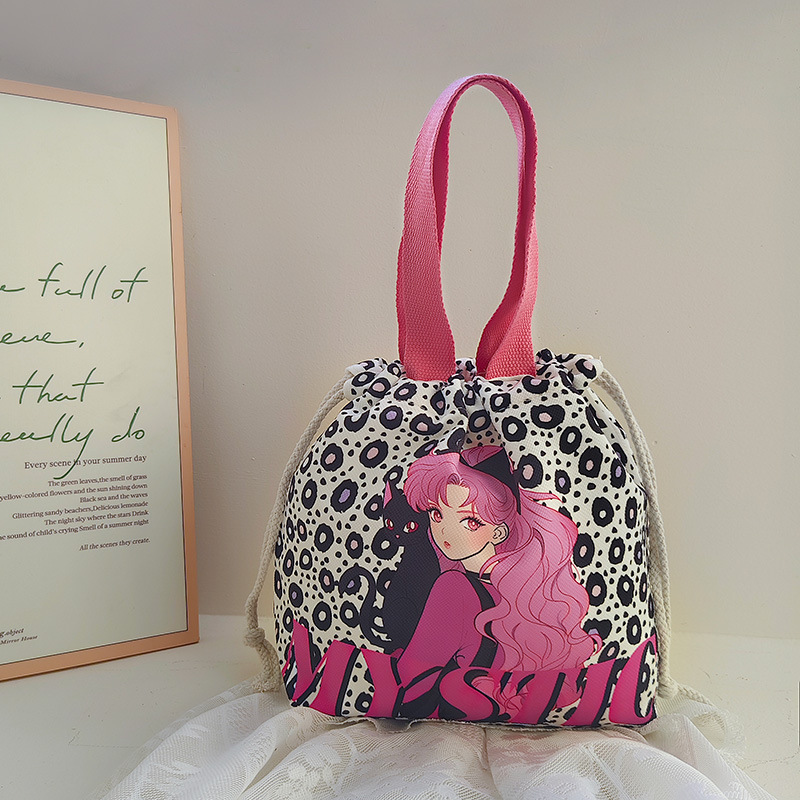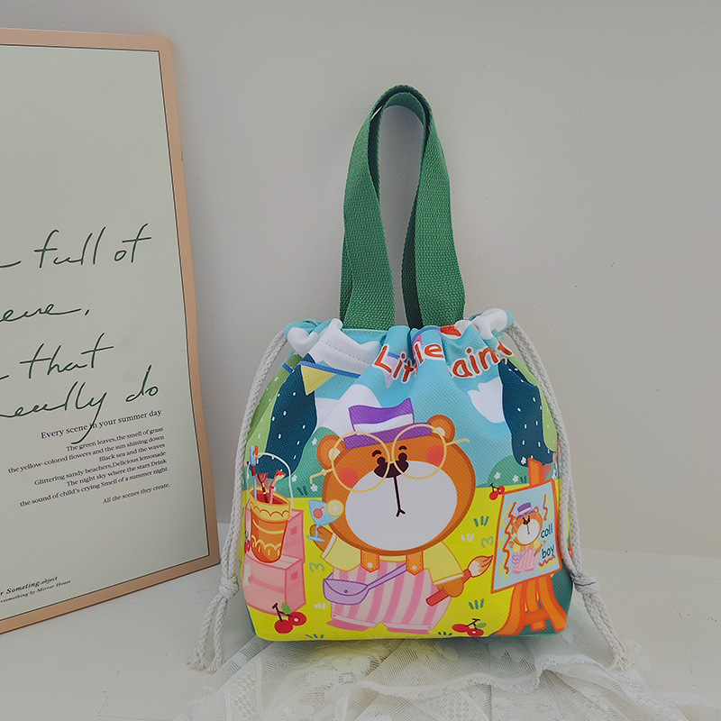 저장 가방 귀여운 만화 drawstring 포켓 도시락 가방 대용량 화장품 가방 휴대용 캔버스 가방 머리카락 세대