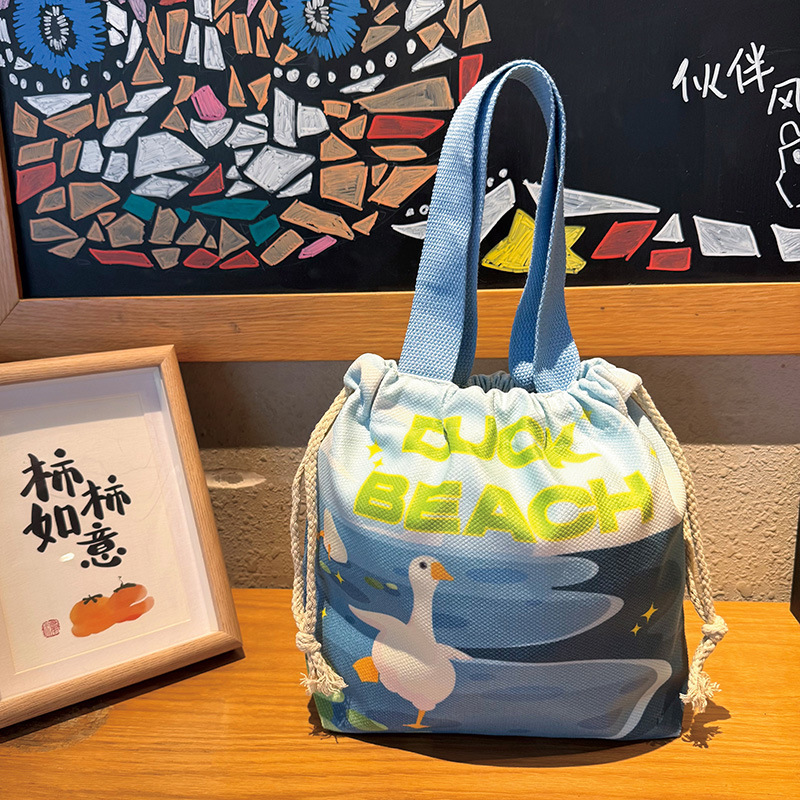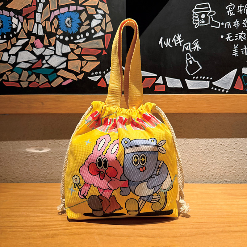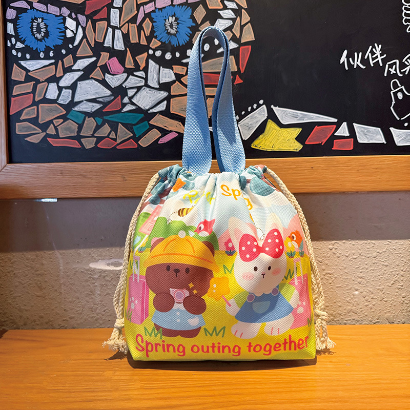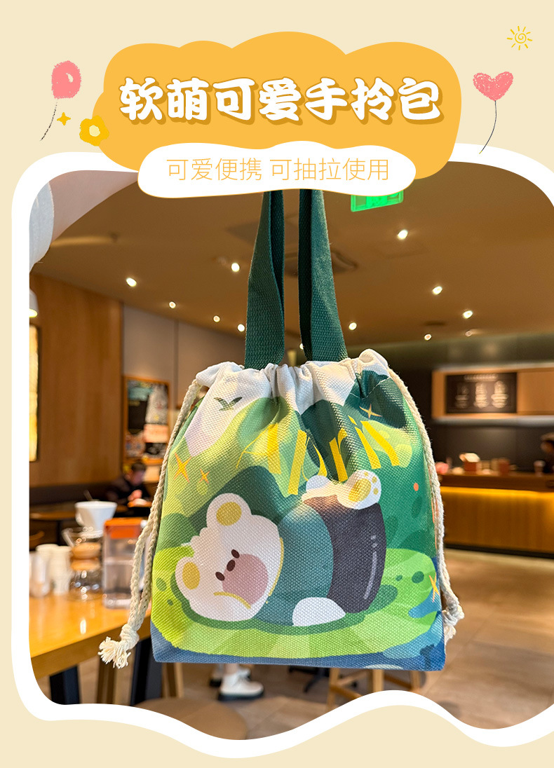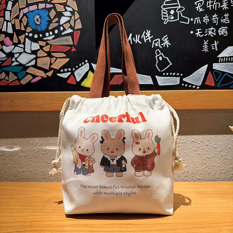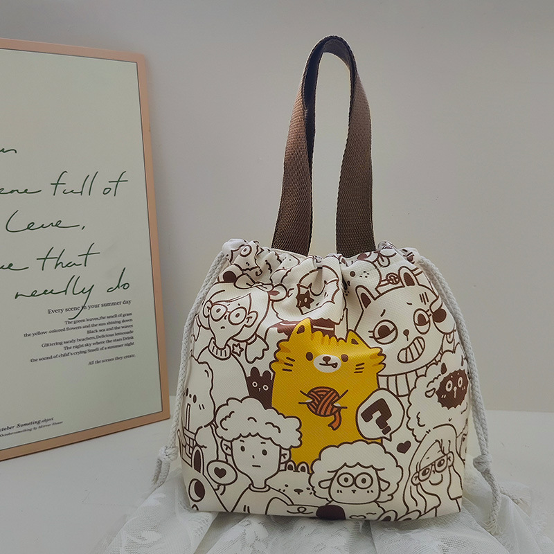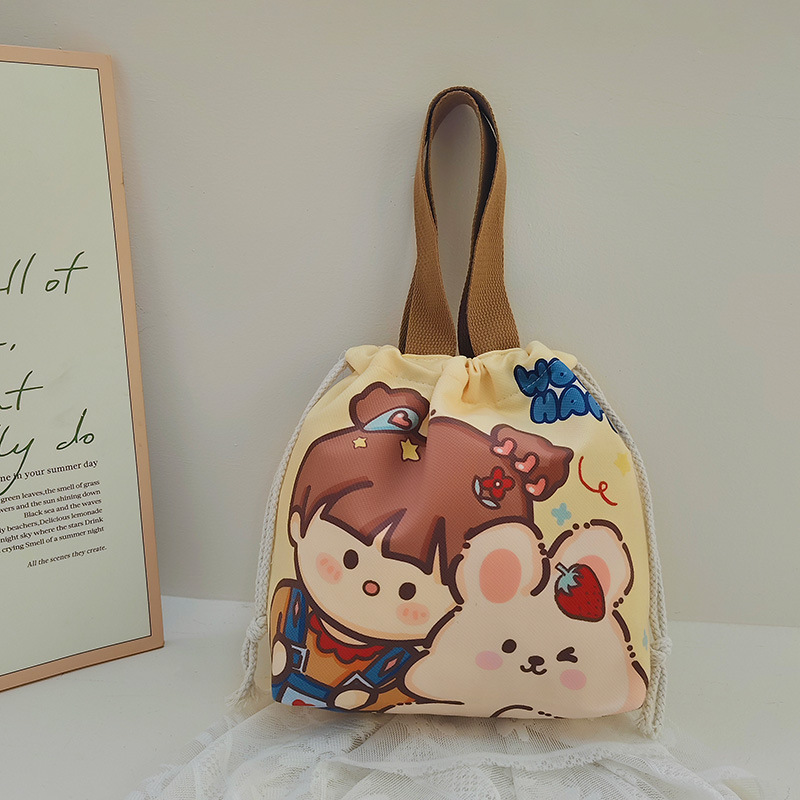 저장 가방 귀여운 만화 drawstring 포켓 도시락 가방 대용량 화장품 가방 휴대용 캔버스 가방 머리카락 세대스토어 가기