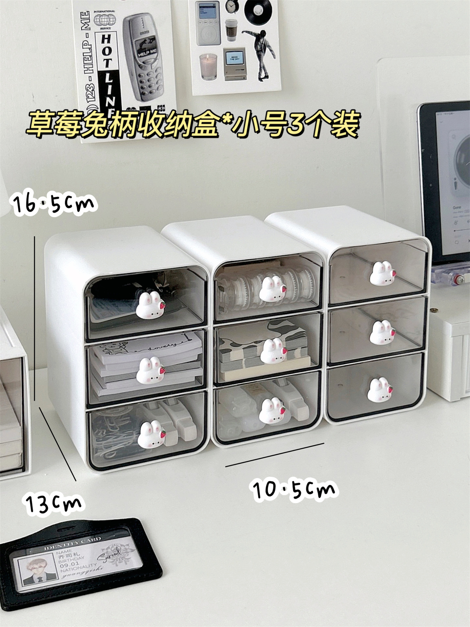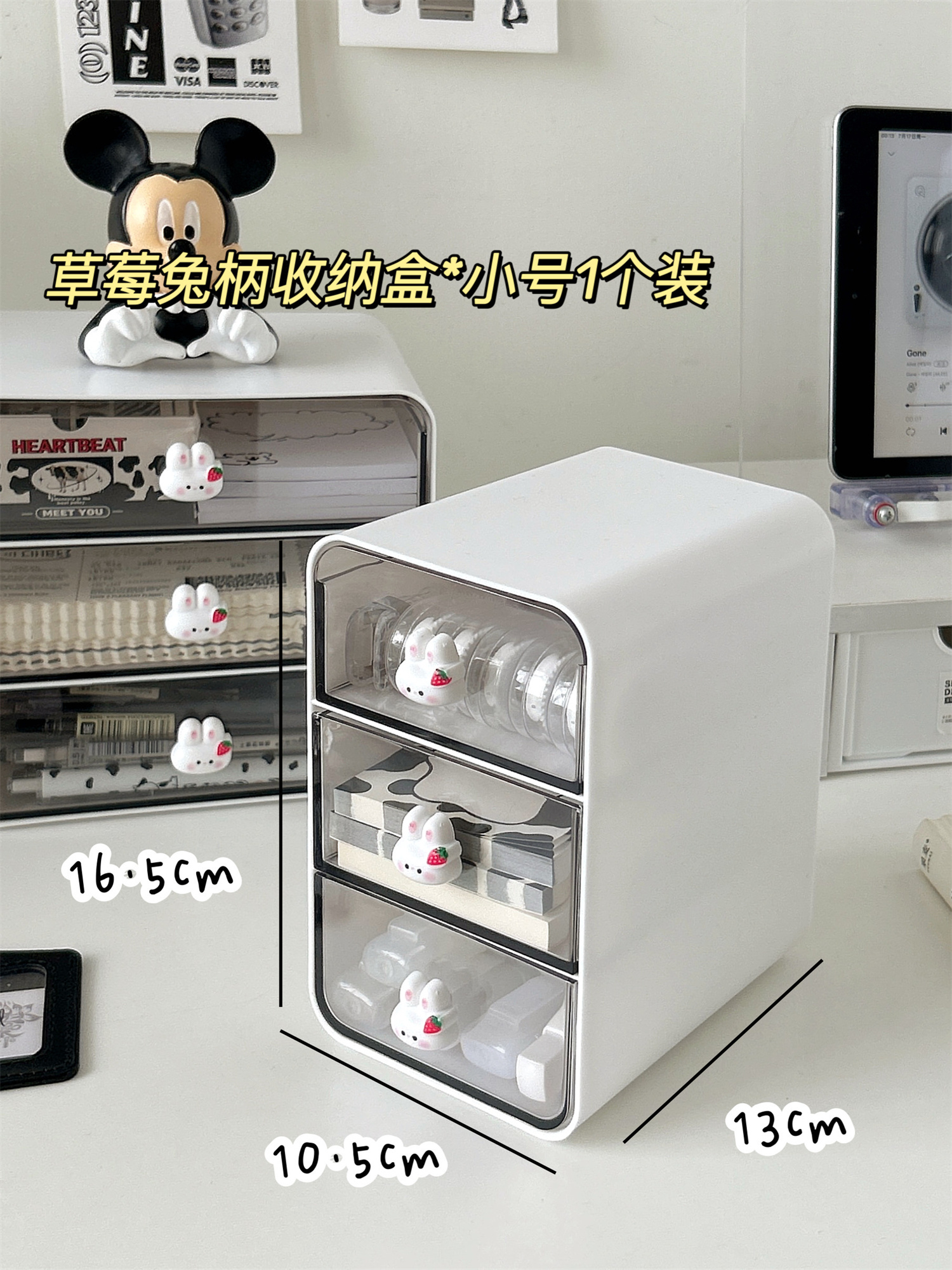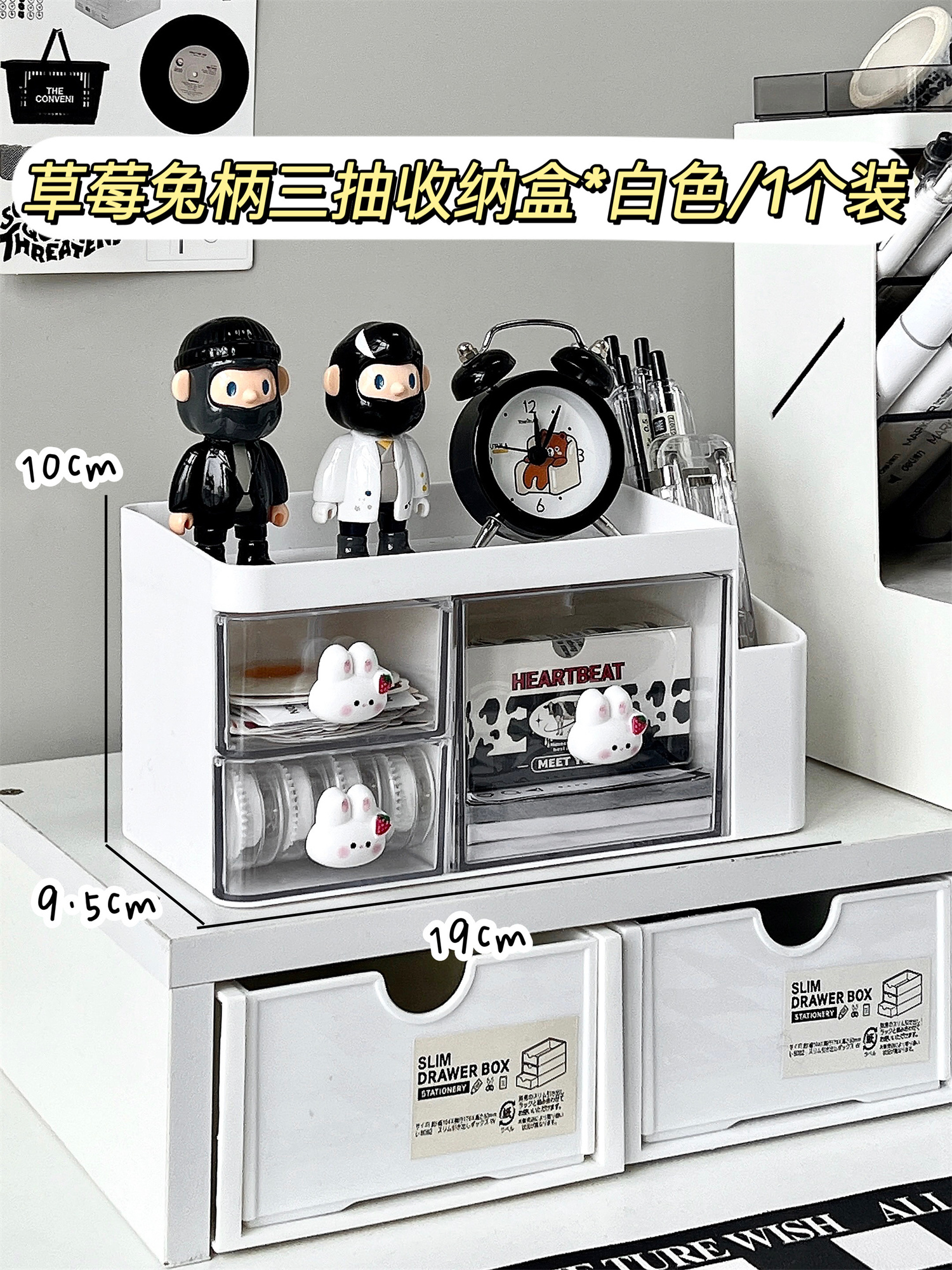 • ⇠⇠⇠딸기 토끼 손잡이 3단 서랍 수납함 * 화이트 / 1개입