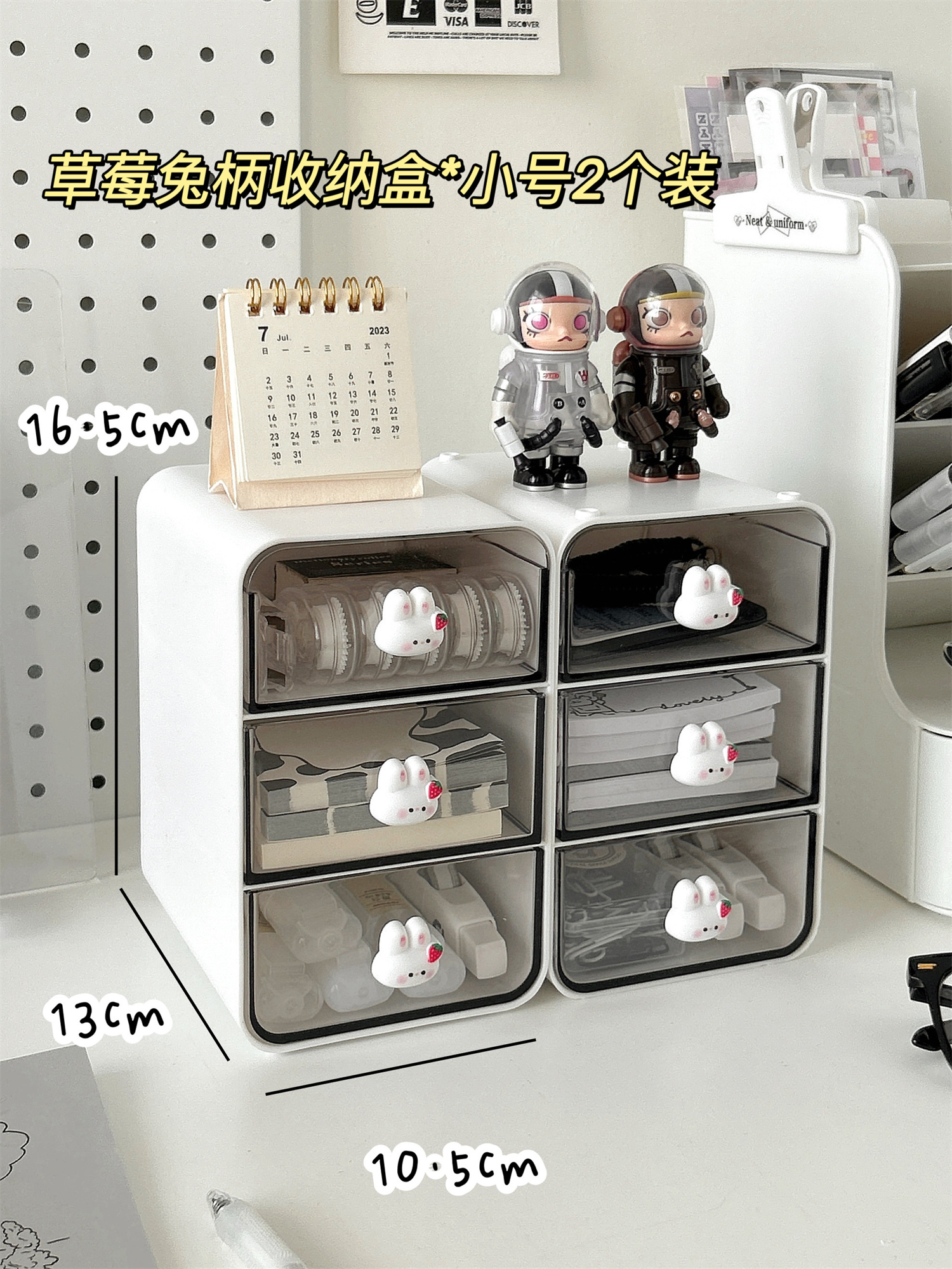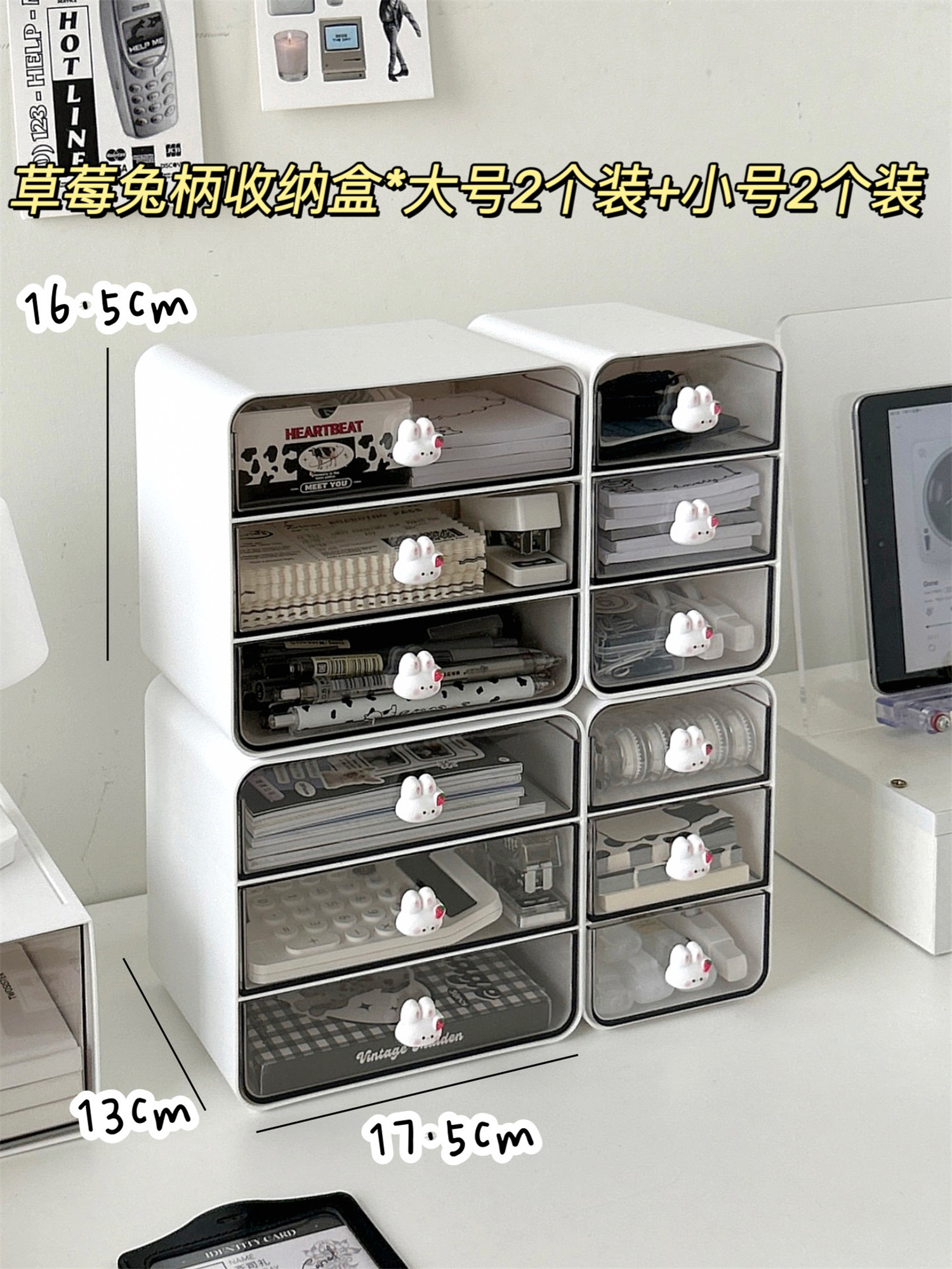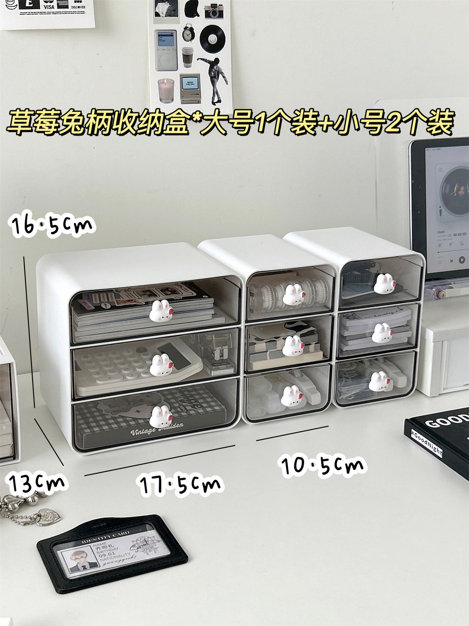 • ⇠⇠⇠딸기 토끼 손잡이 3단 서랍 수납함 * 화이트 / 1개입