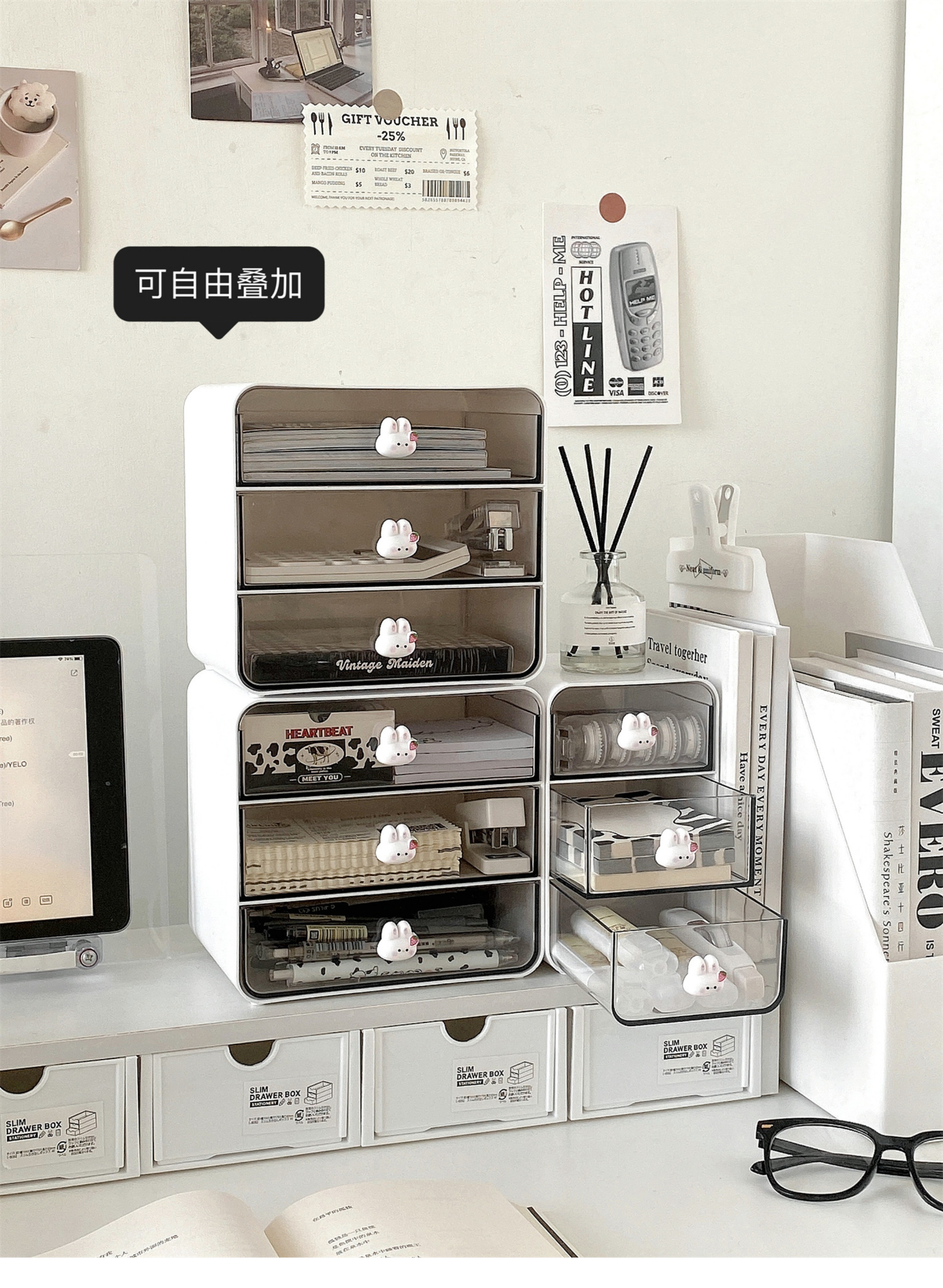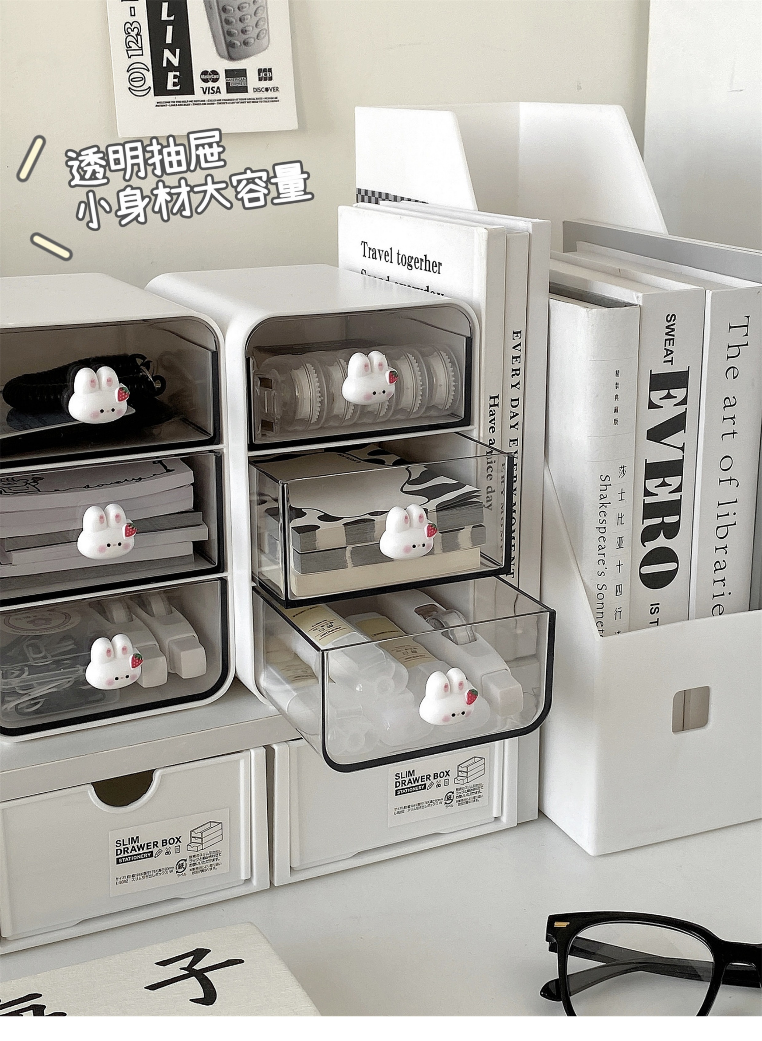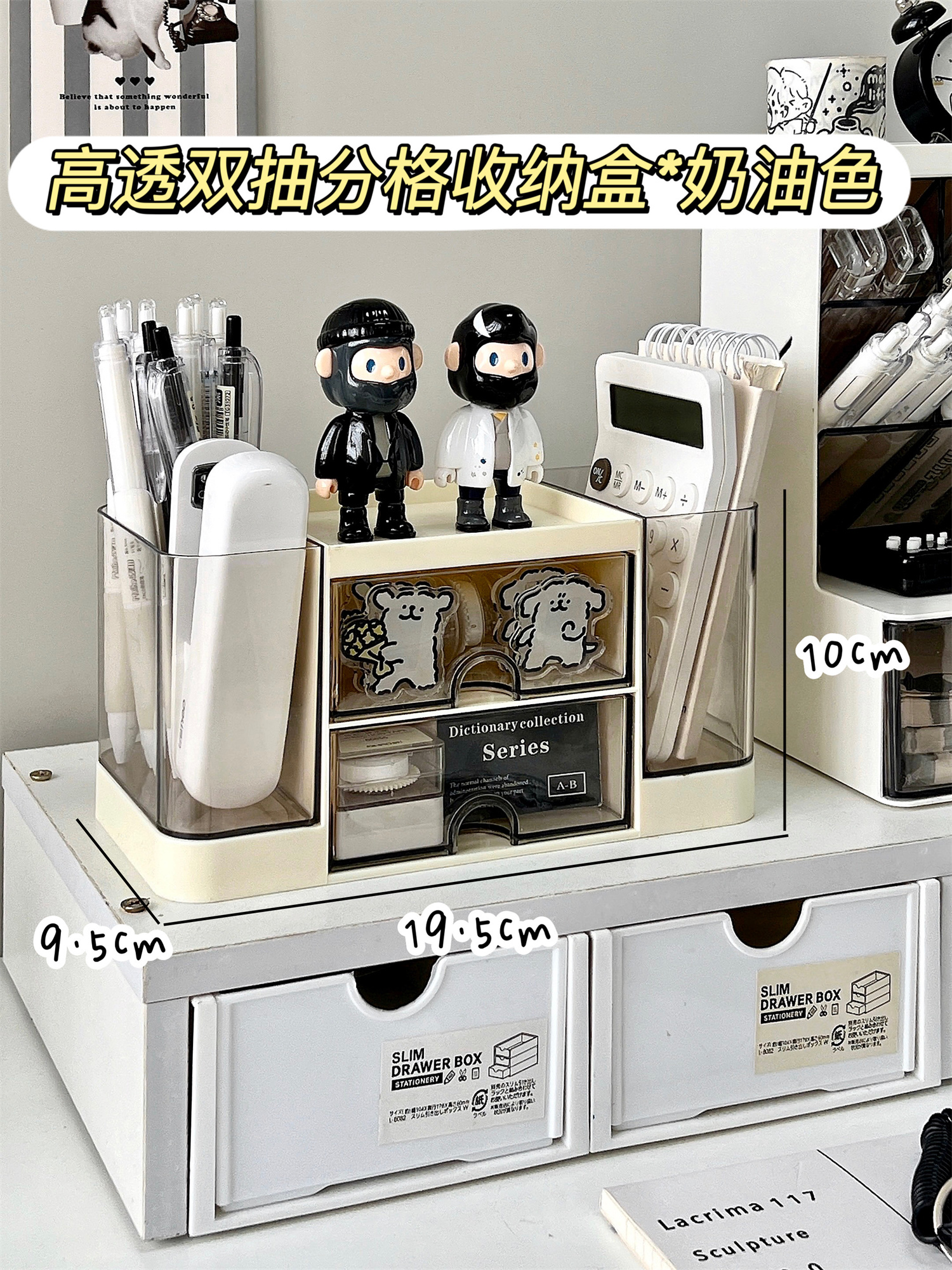 • ⇠⇠⇠투명도가 높은 이중서랍 수납함*크림색상→→→
