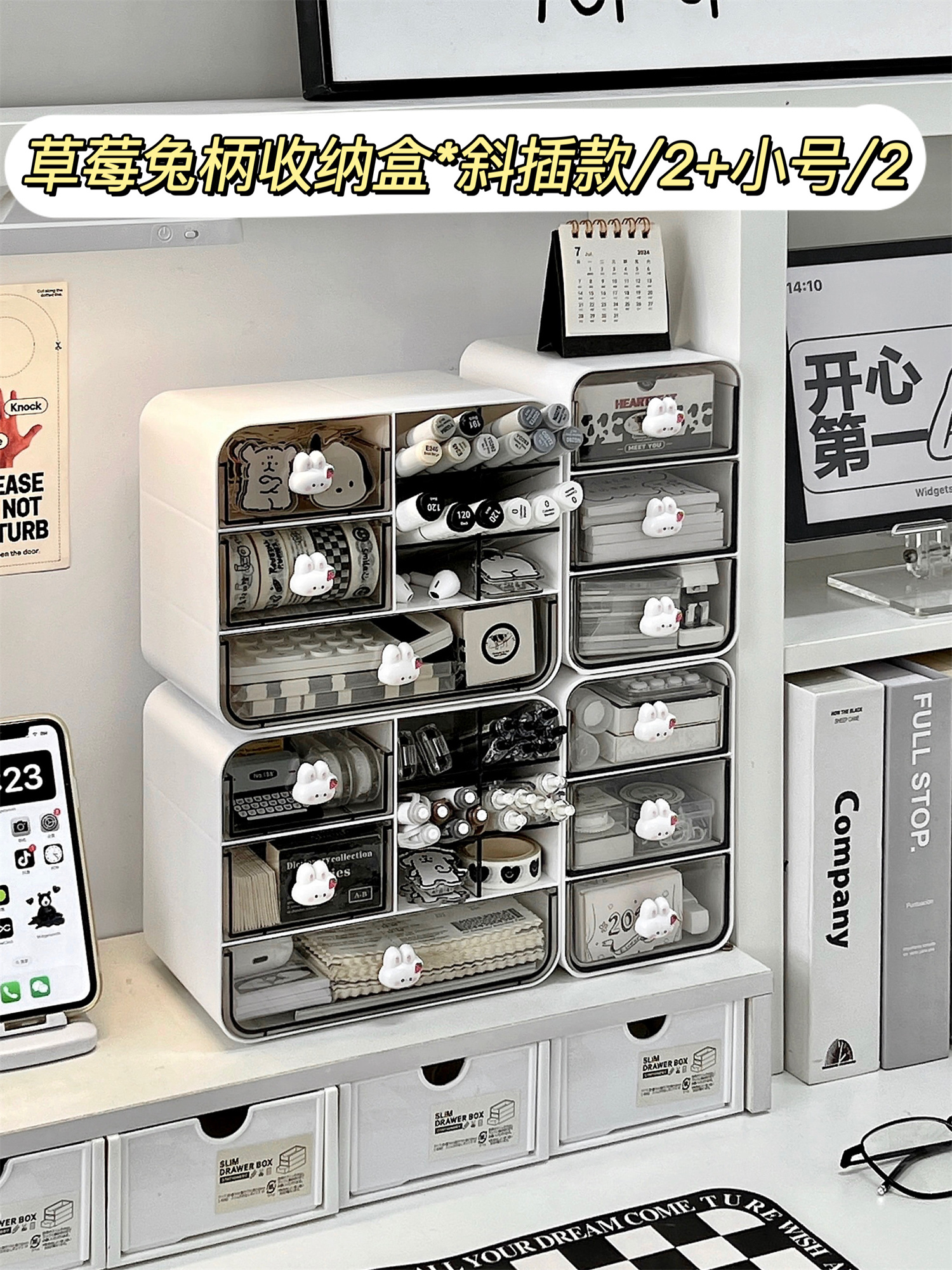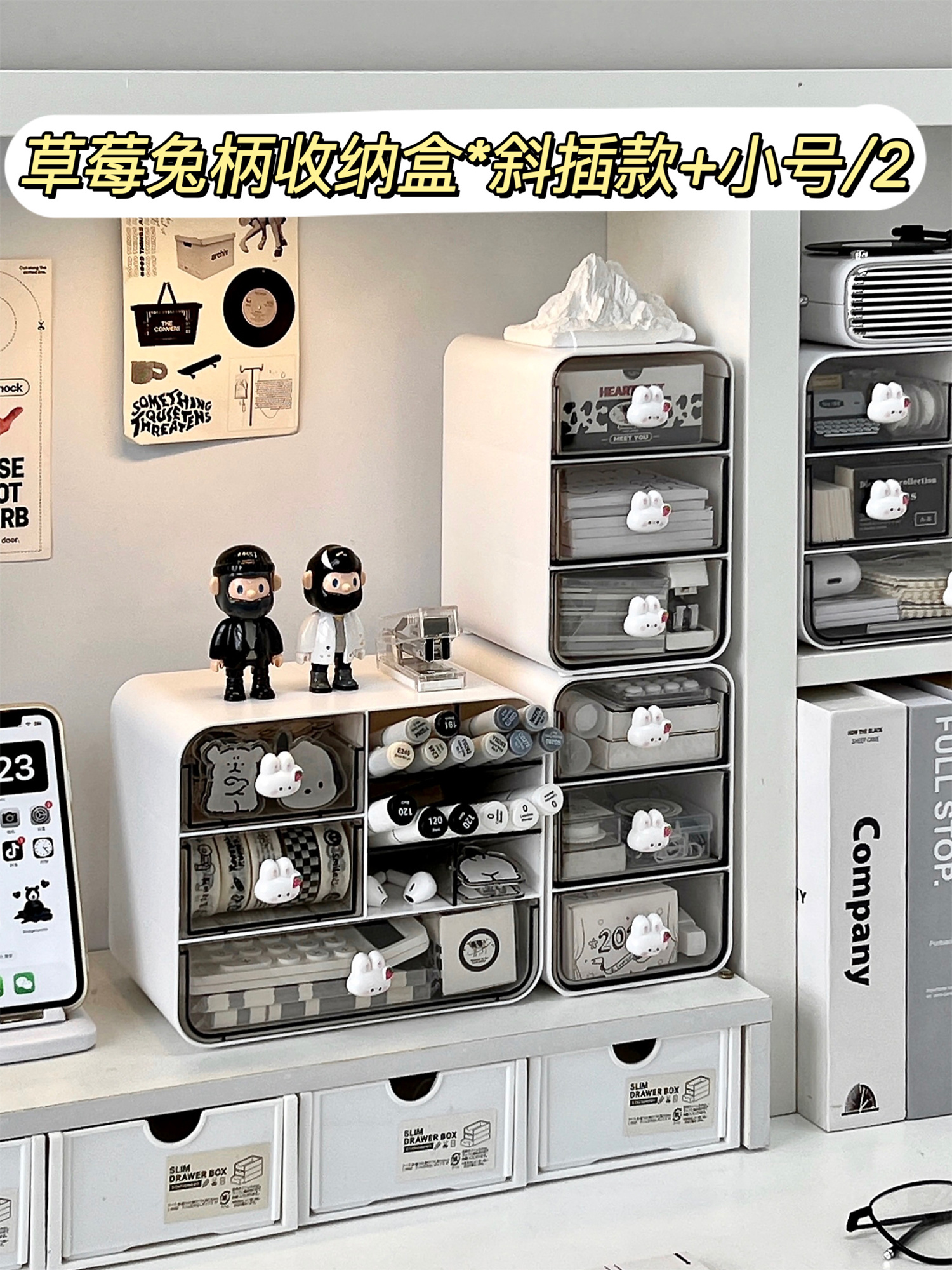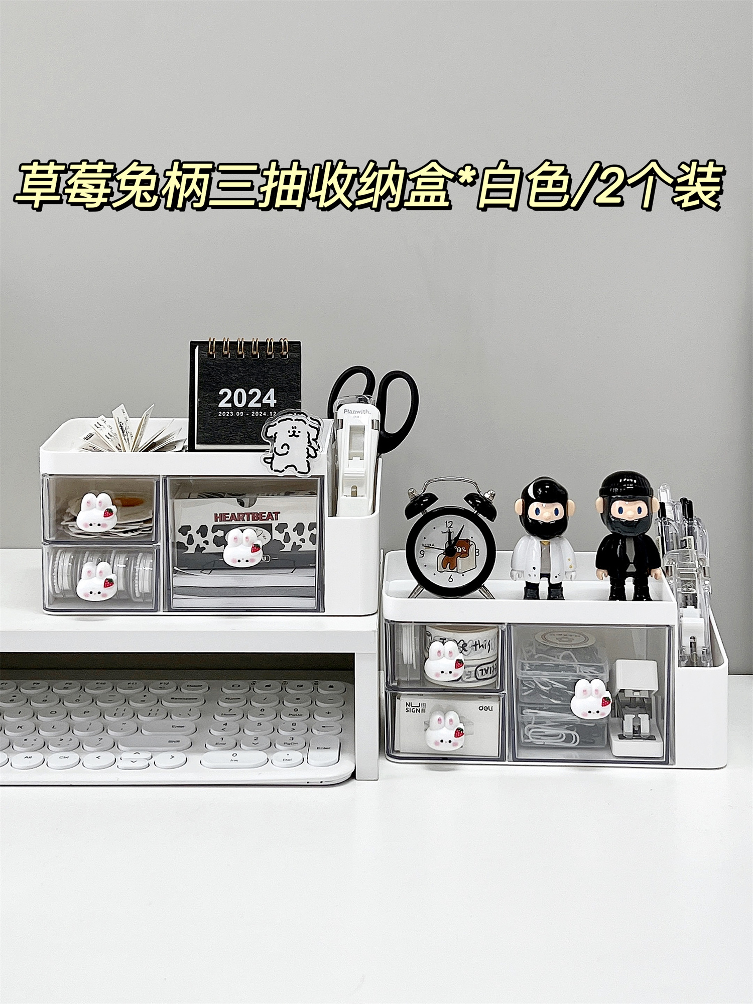 • ⇠⇠⇠딸기 토끼 손잡이 3단 서랍 수납함 * 화이트 / 2개입