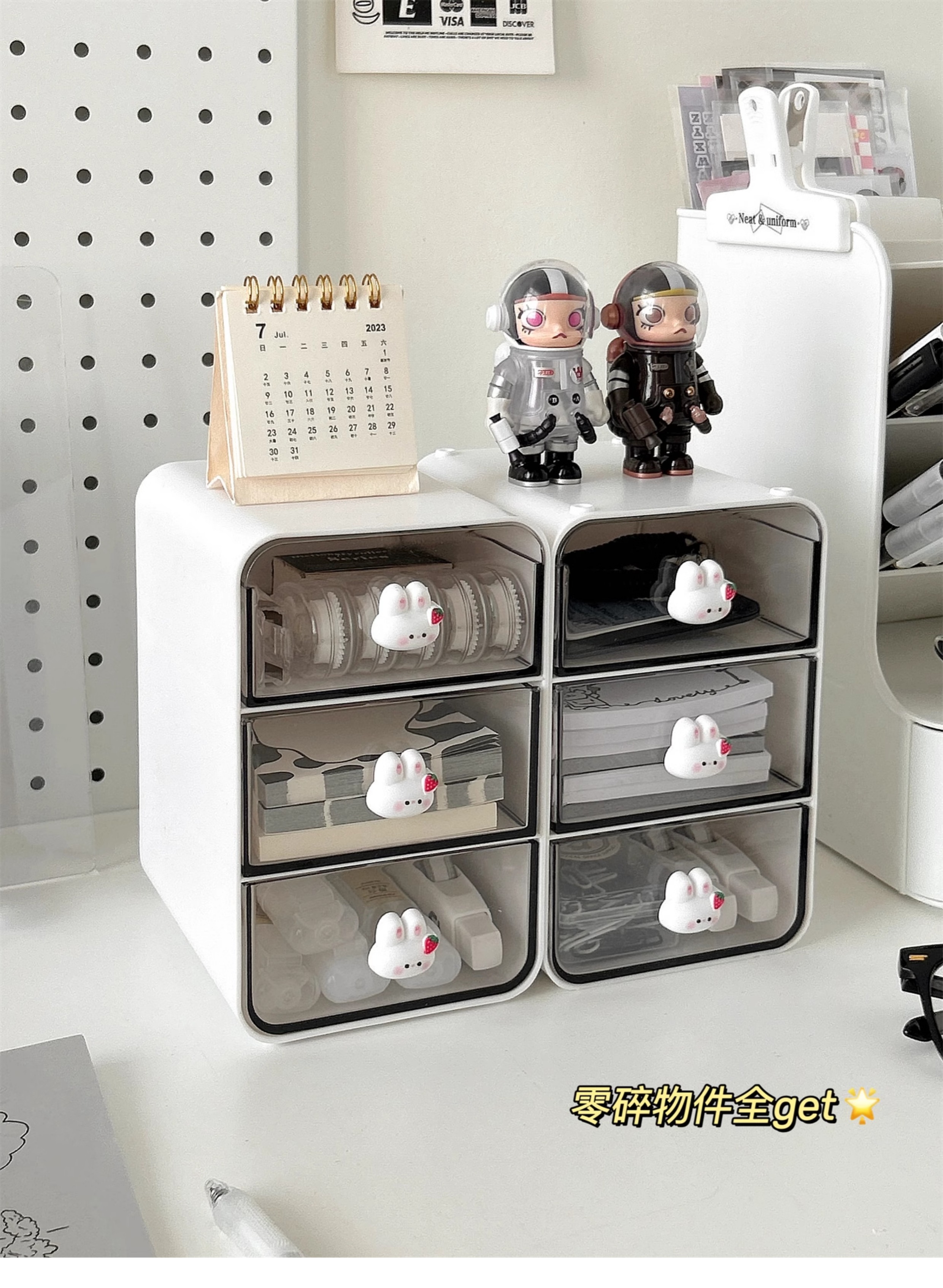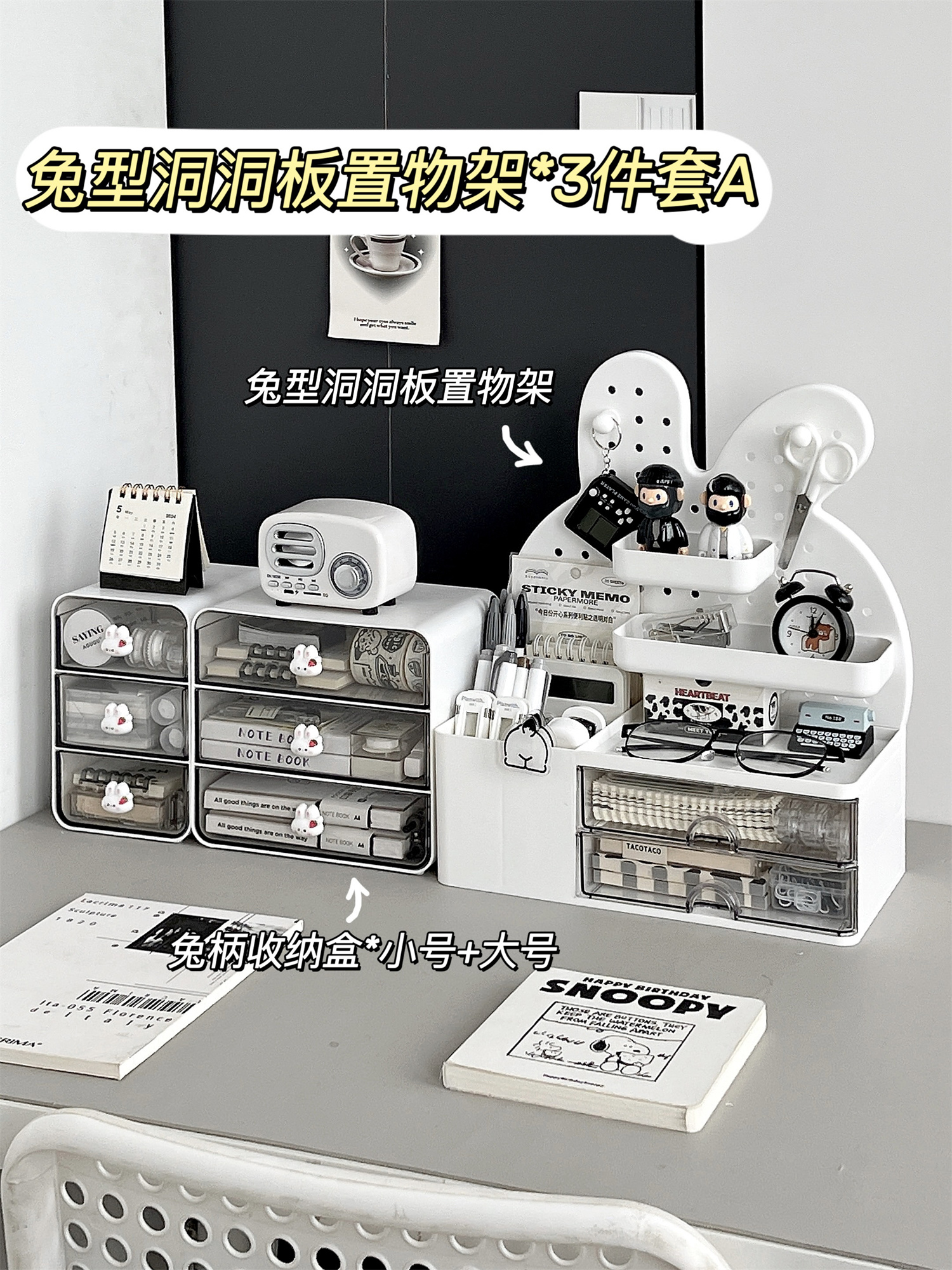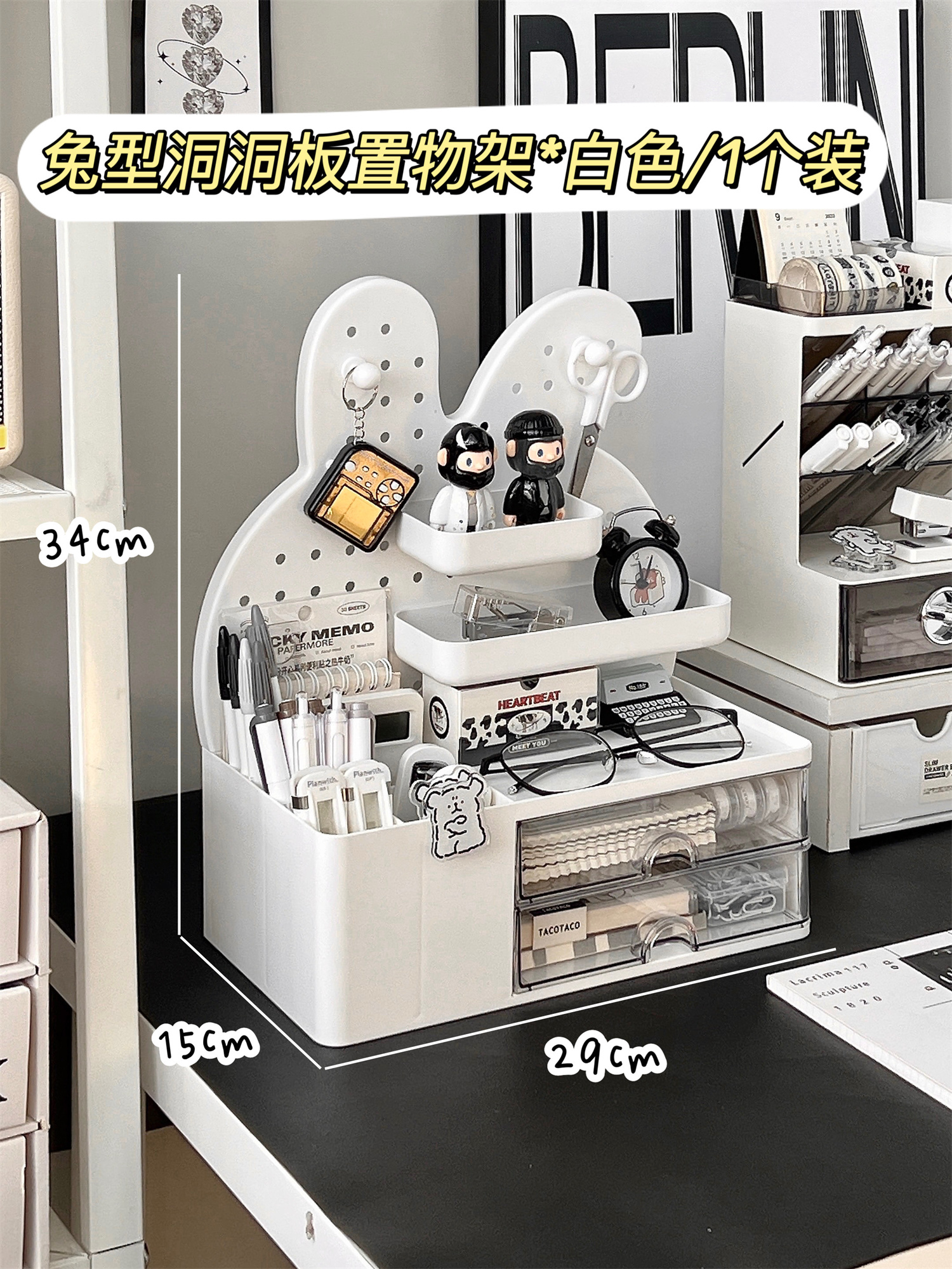 • ⇠⇠⇠토끼 모양 타공판 수납 선반 * 화이트 + 다용도 수납함