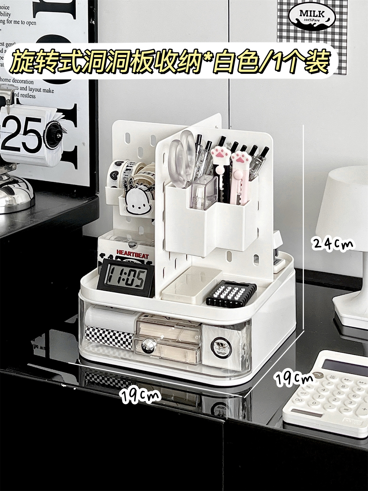 • ⇠⇠⇠회전식 타공판 수납함 *화이트/1개입
