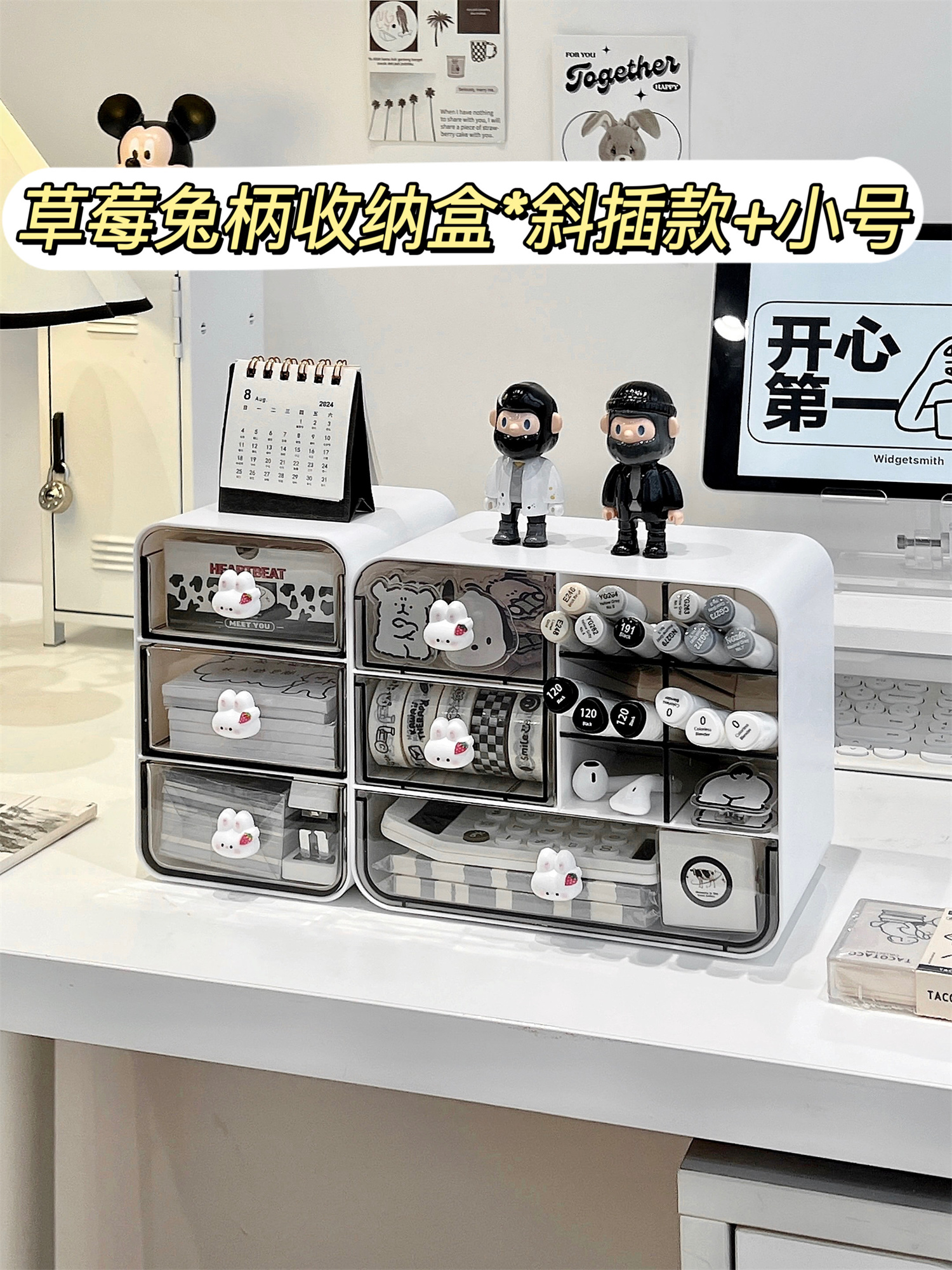 • ⇠⇠⇠딸기 토끼 손잡이 수납함 * 대형 1개입 + 소형 1개입 ↦=>=>=>