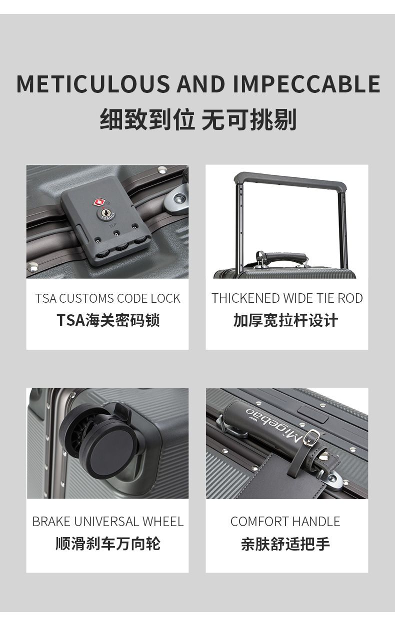 휴대용 가방, 낙하 방지 알루미늄 프레임 박스, 균형 잡힌 여행 가방, 중앙에 넓은 손잡이가 있는 여행 가방, 20inch 24inch 여행용 기내 반입 가방, 미니멀리스트 디자인스토어 가기