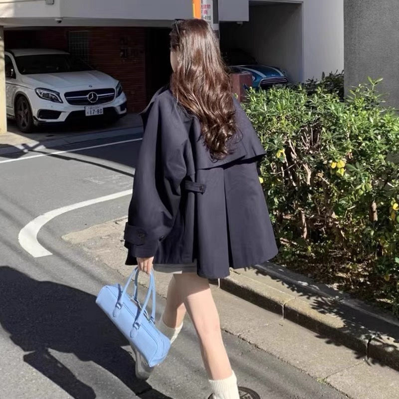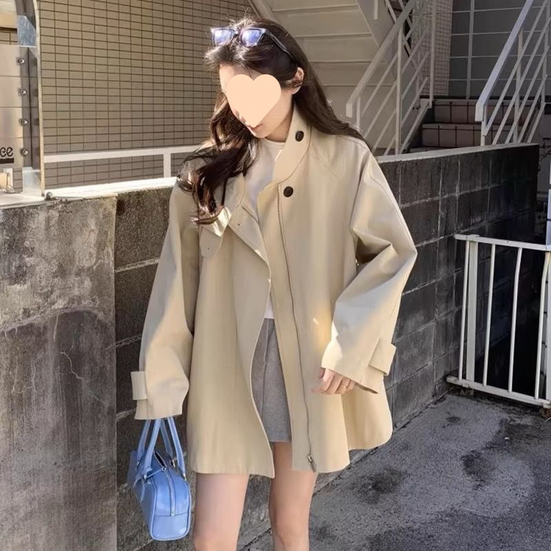 韩国chic秋季新款复古英伦风立领设计感小众宽松长袖风衣外套女