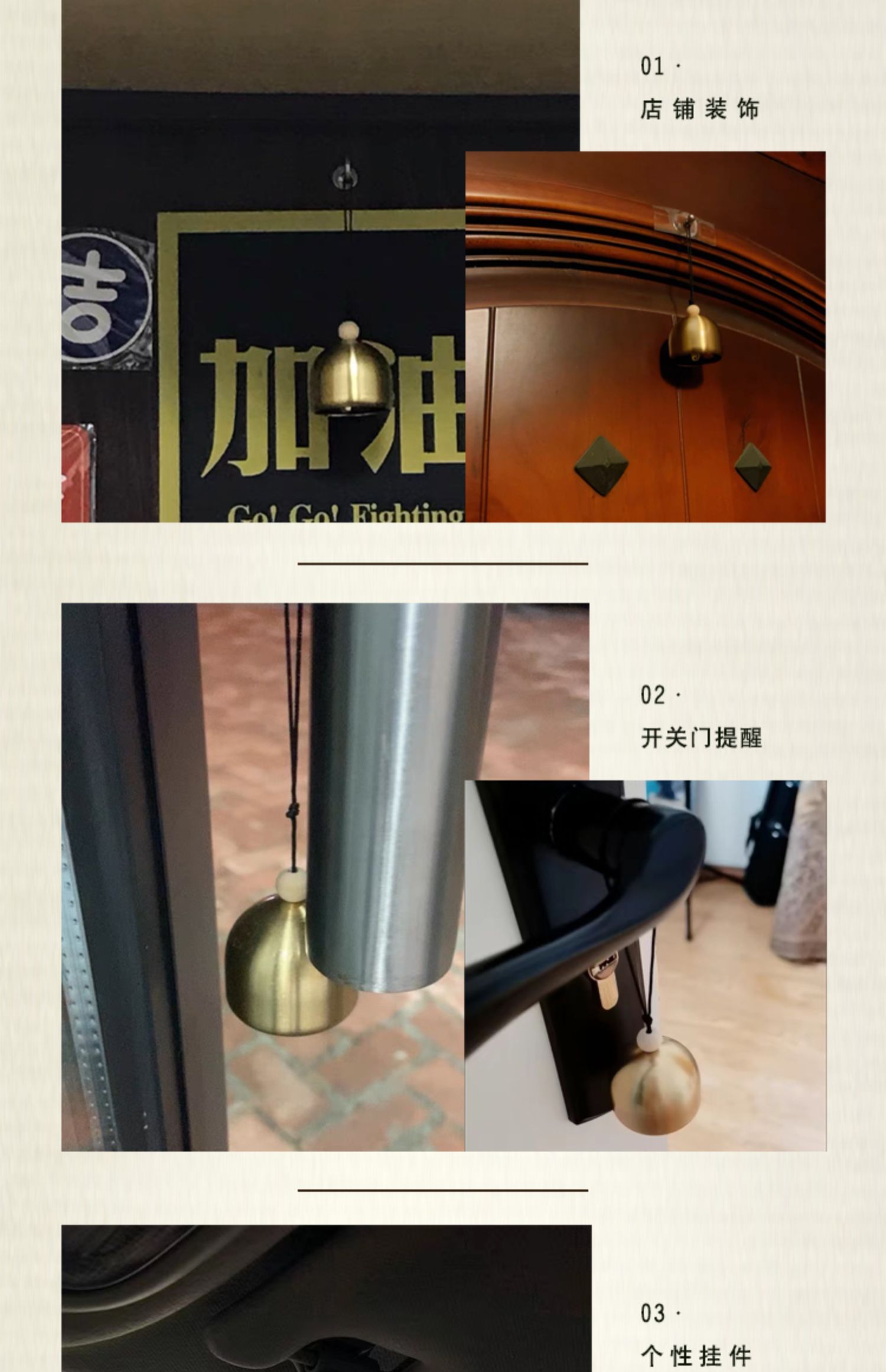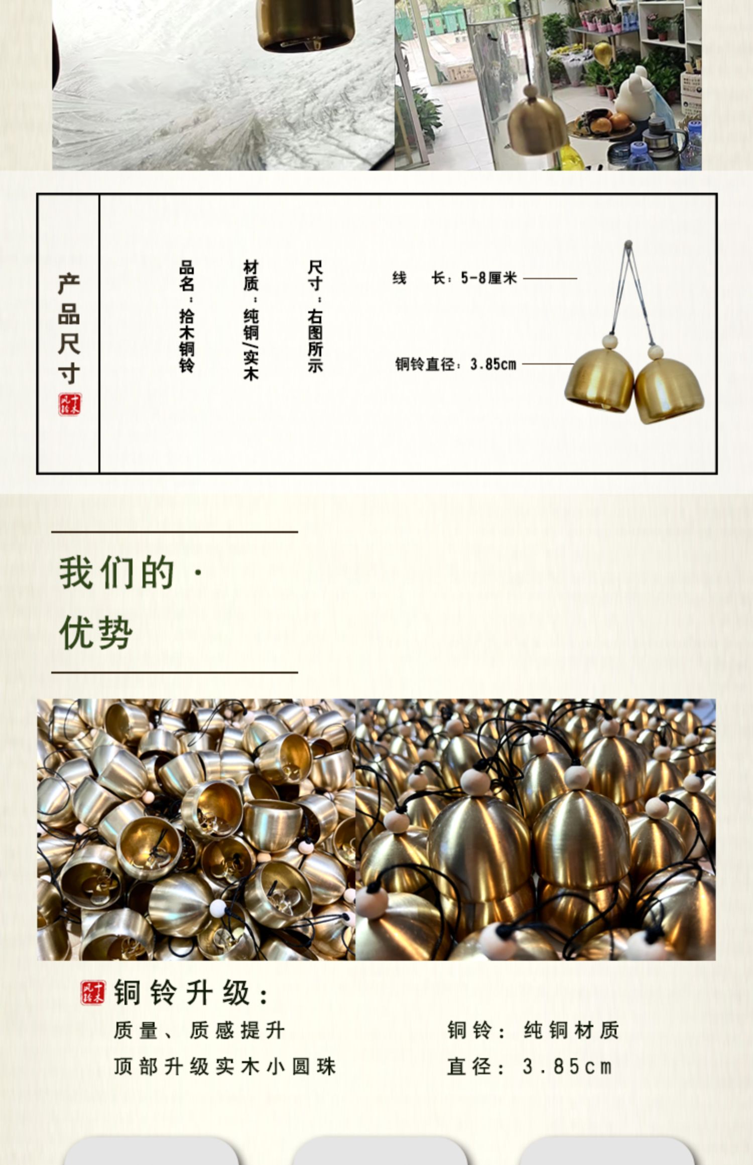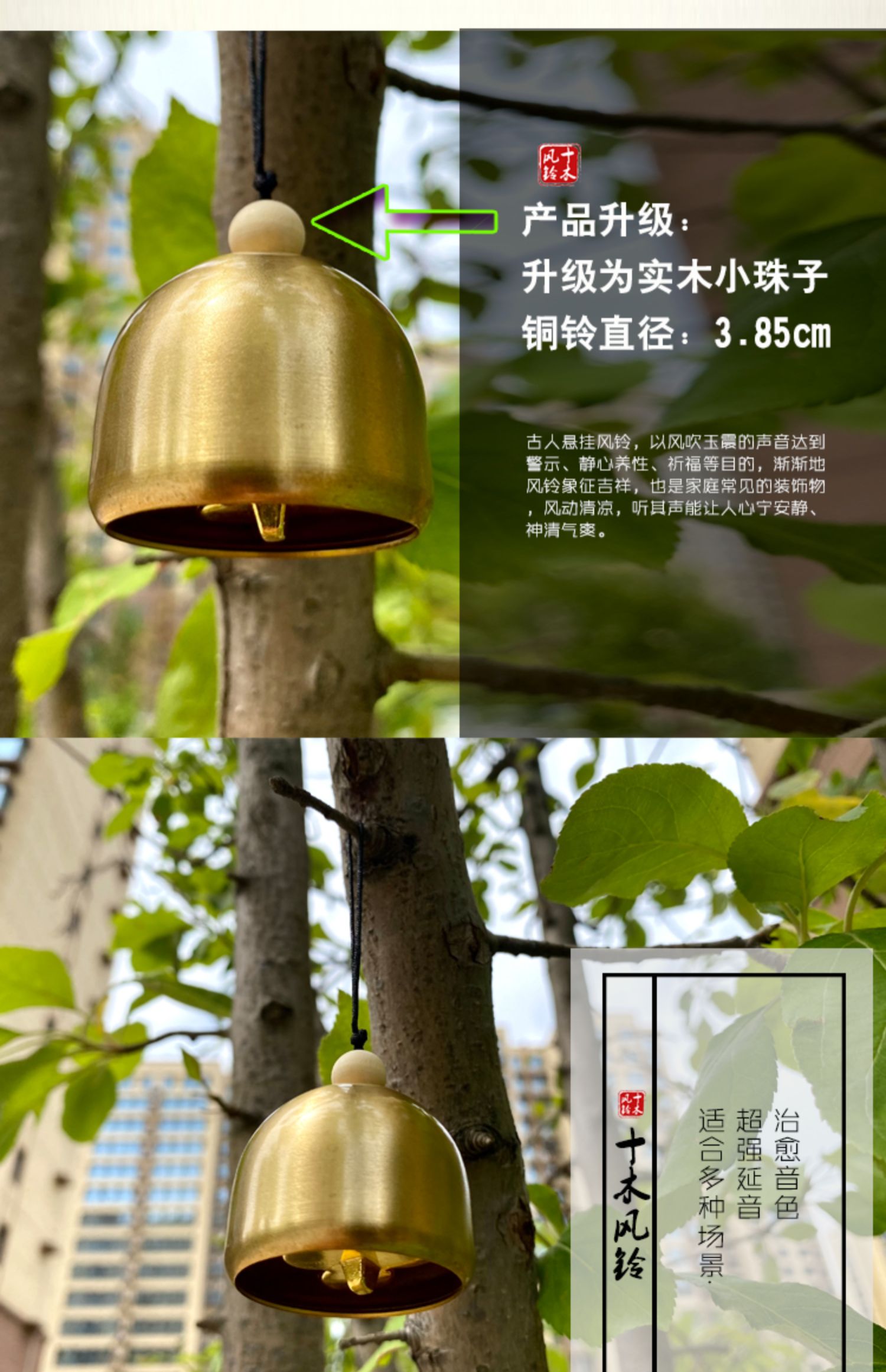 10 나무 순수한 구리 종 펜던트 벨 울리는 큰 금속 종 장식품 구리 바람 벨 액세서리 문 구리 벨 펜던트