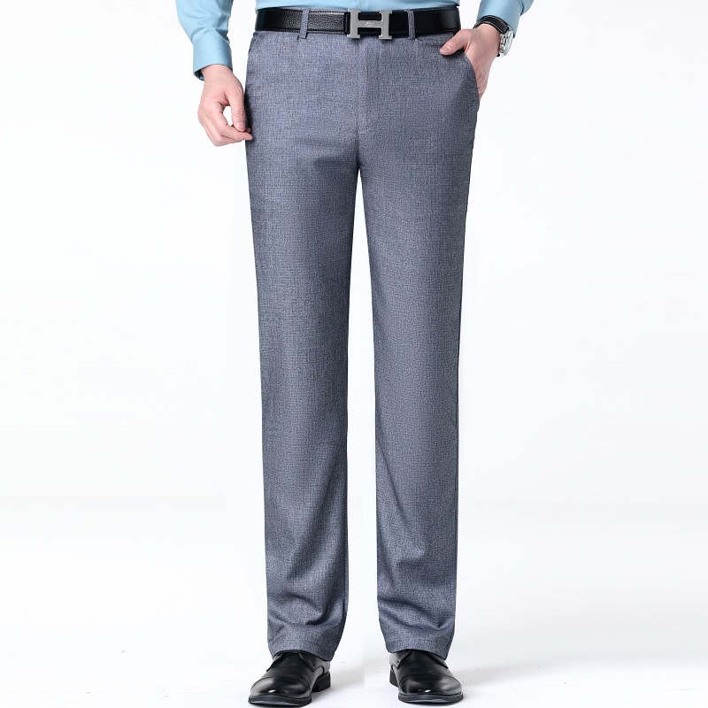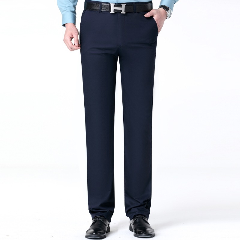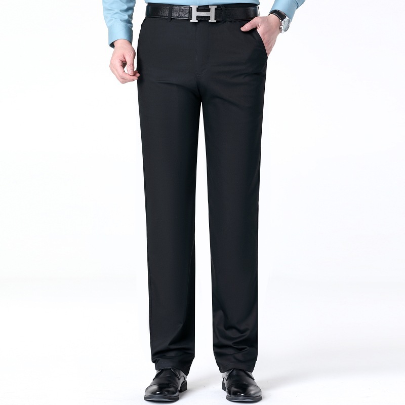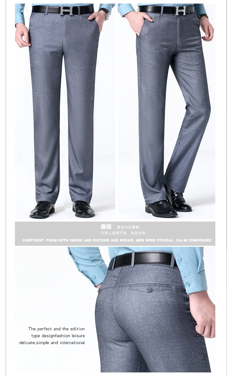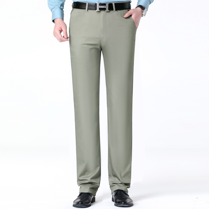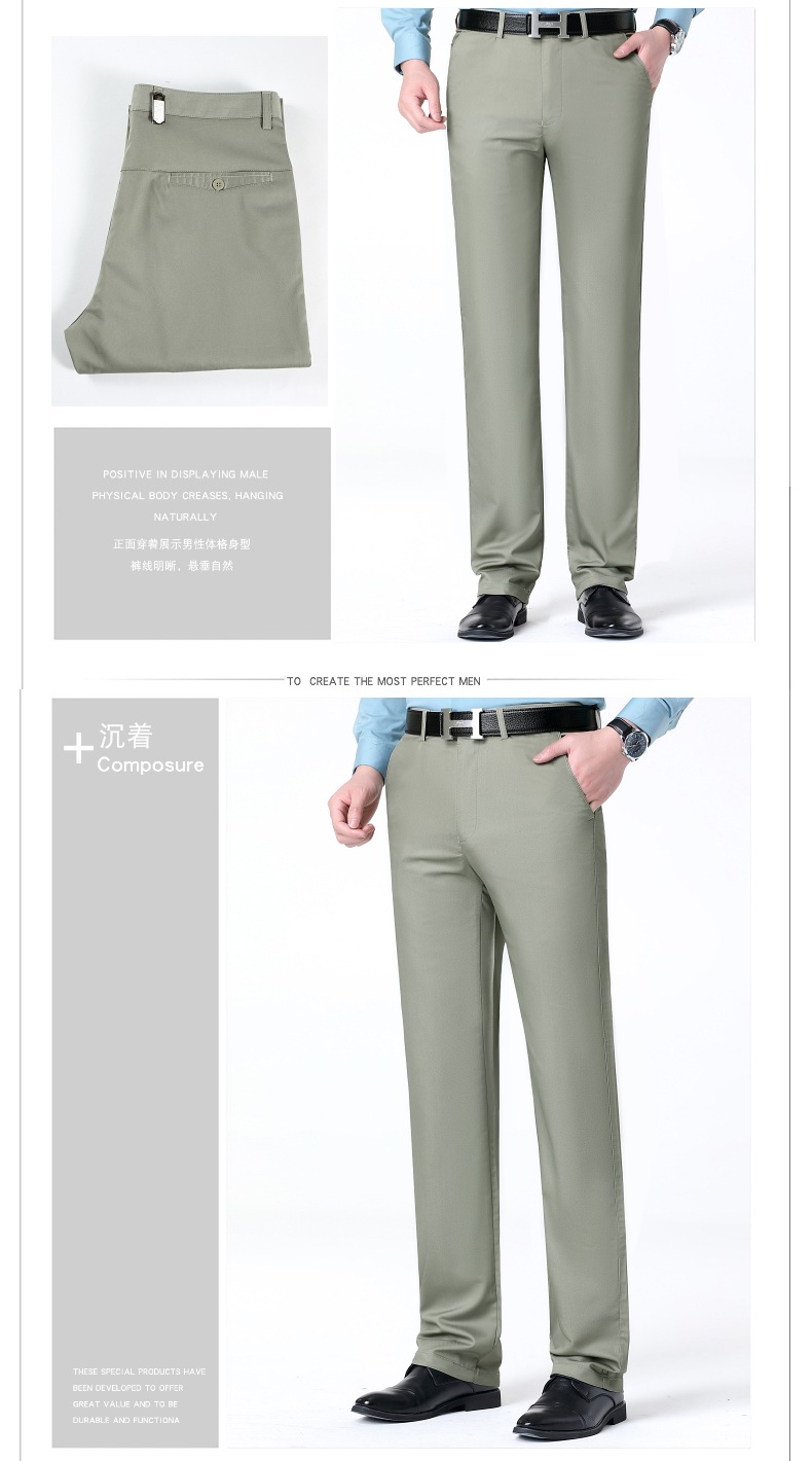 다림질 높은 허리 스트레이트 캐주얼 바지 남성용 봄과 여름 주름 방지 느슨한 비즈니스 남성 면 바지 아빠의 중년