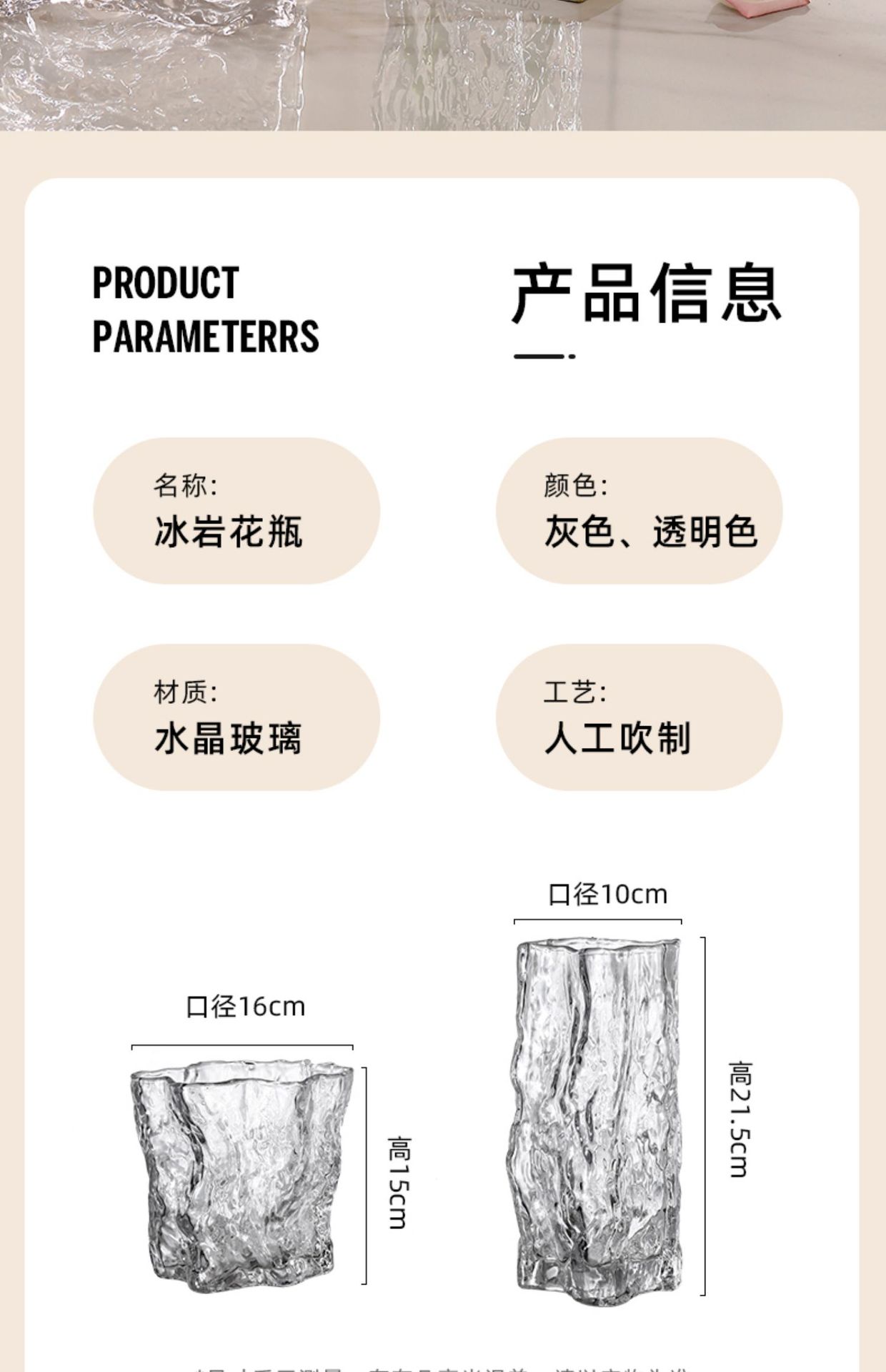 불규칙한 빙하 유리 꽃병 장식품 거실 꽃 배열 높은 수준의 수경 투명 수경 크리스탈 바닥 식탁스토어 가기