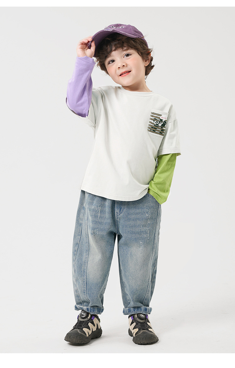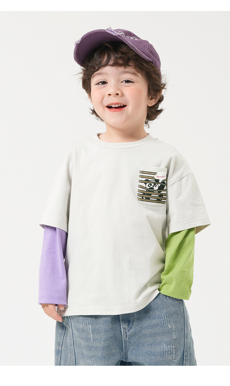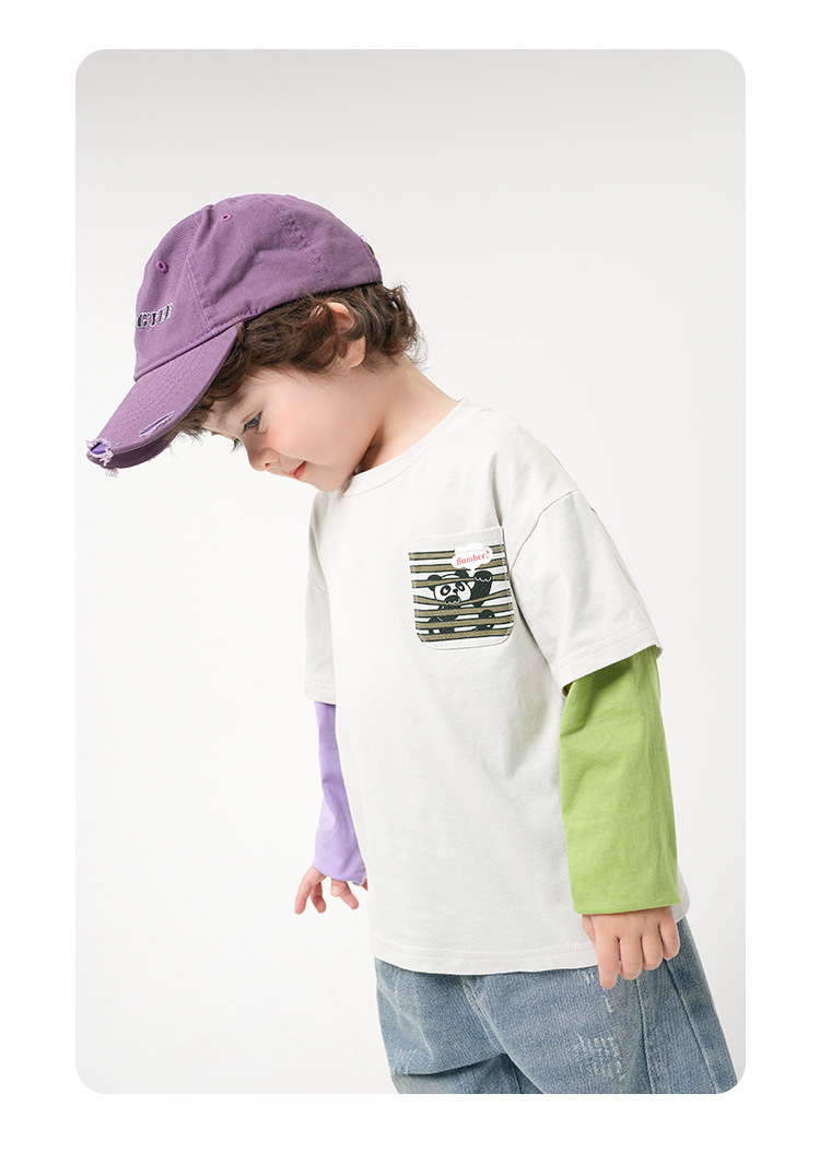 소년 순면 가짜 투피스 긴팔 티셔츠 가을 의류 봄, 가을 아동 의류 아동용 베이비 바닥 셔츠 탑 가을 트렌드스토어 가기