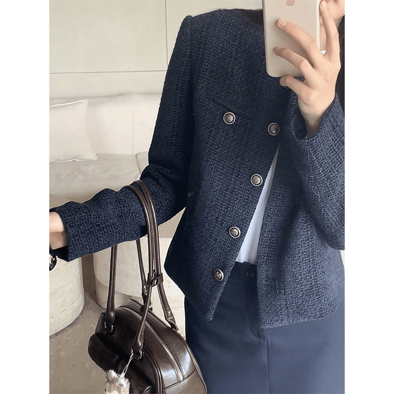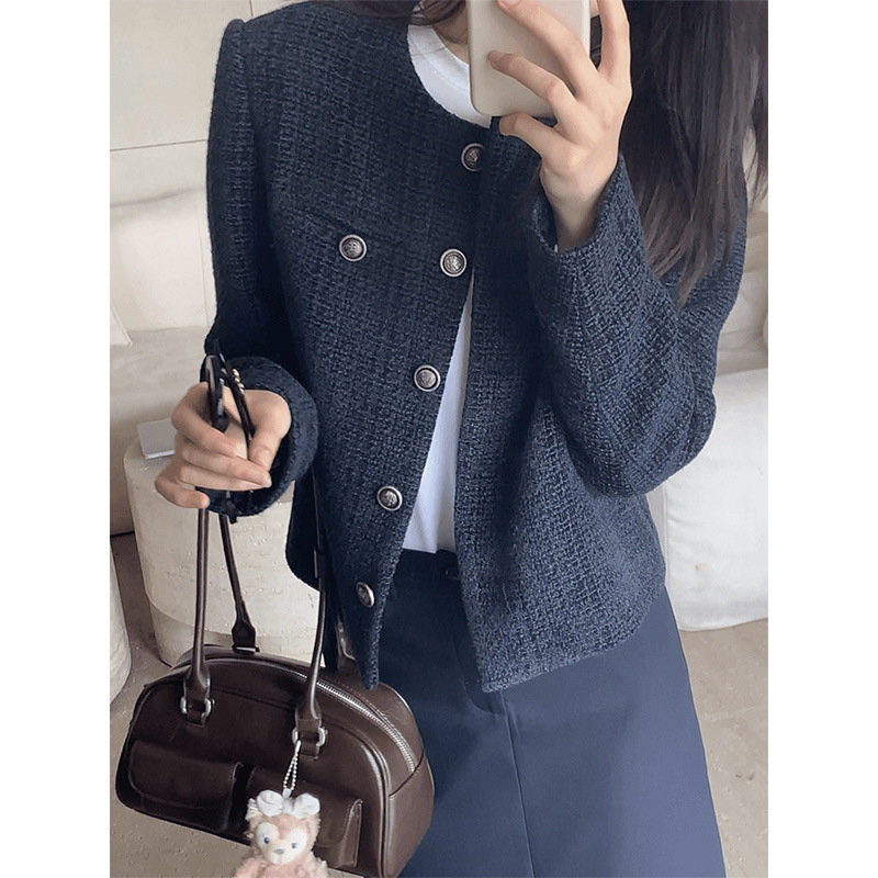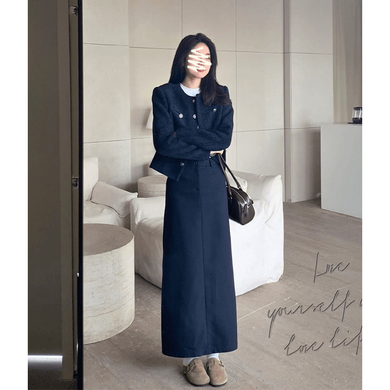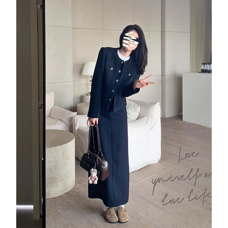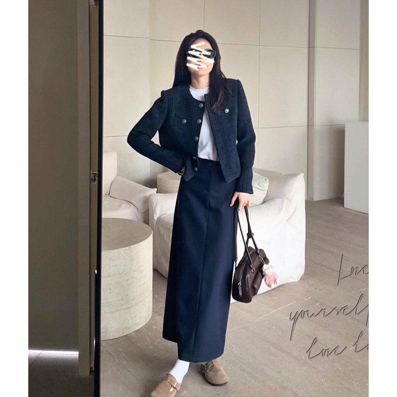 2025 봄과 가을 새로운 여성 한국 스타일 샤넬 스타일 슬림 핏 짧은 재킷 우아한 높은 허리 세트 스트레이트 하프 길이 스커트스토어 가기