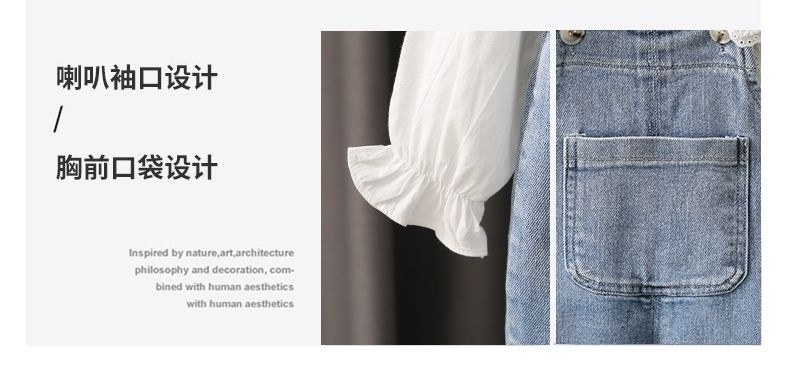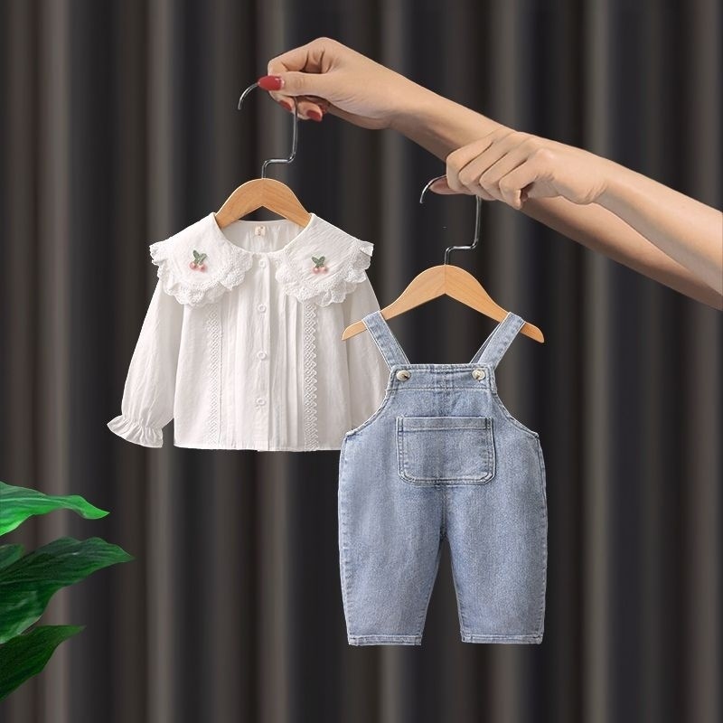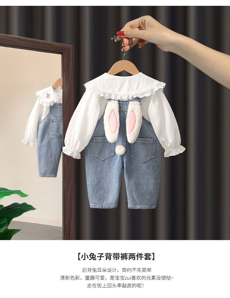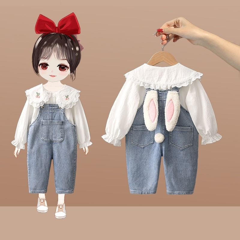 소녀 데님 멜빵 세트 2024 새로운 가을 인터넷 인기 바지 소녀 셔츠 투피스 세트스토어 가기