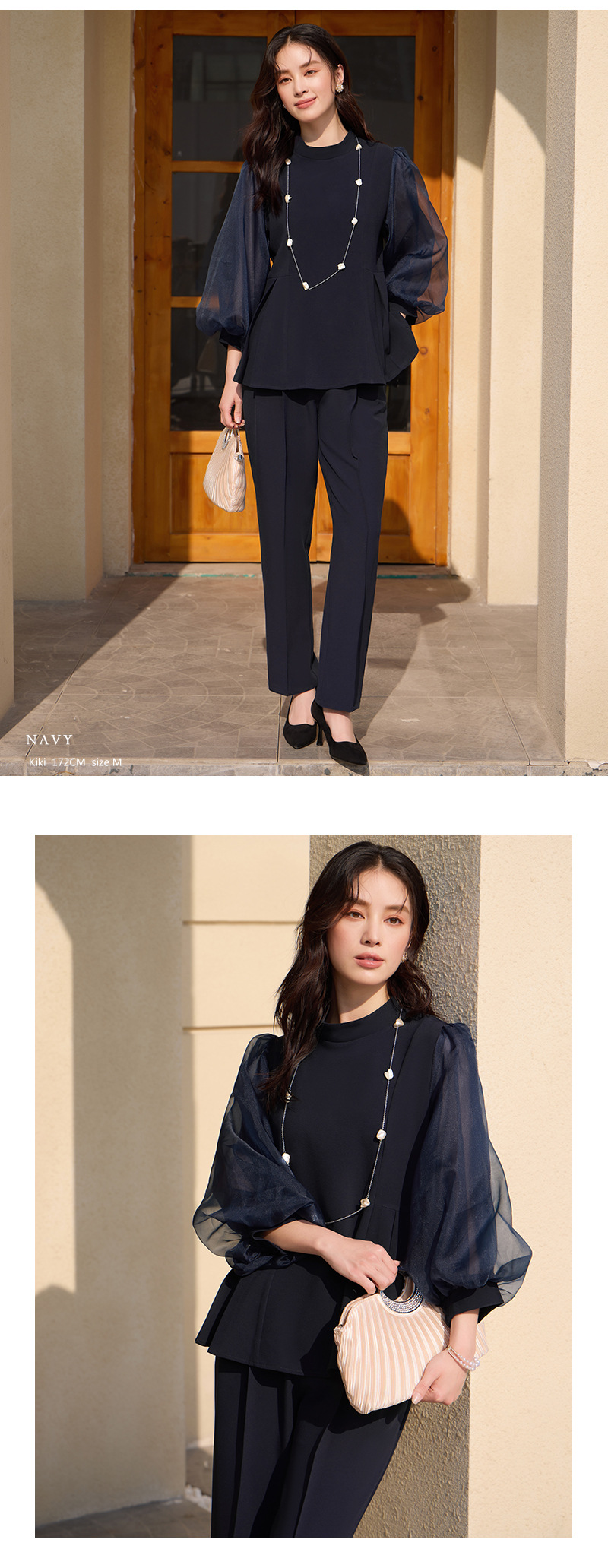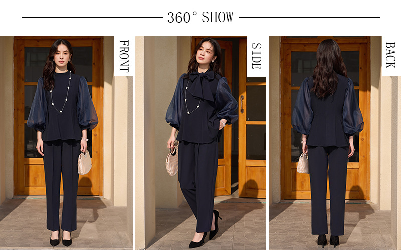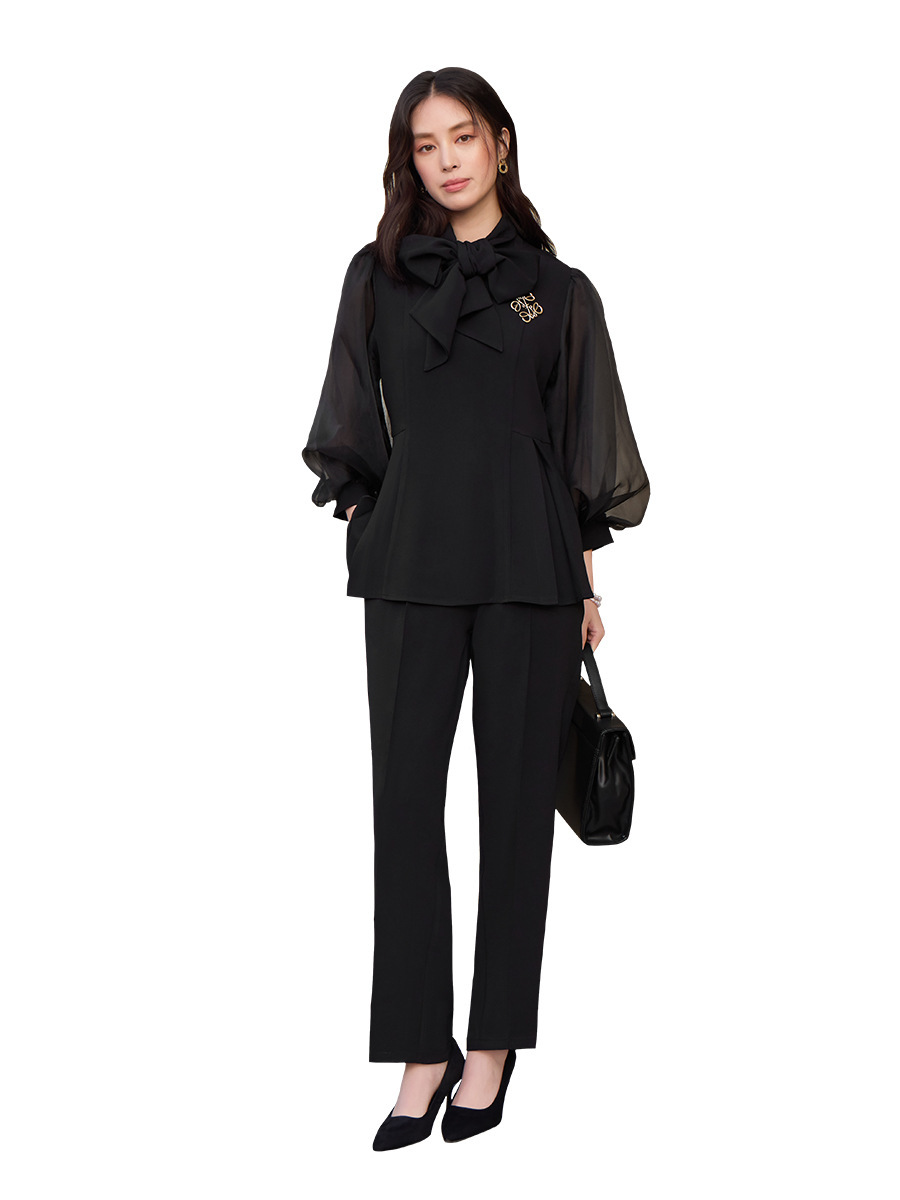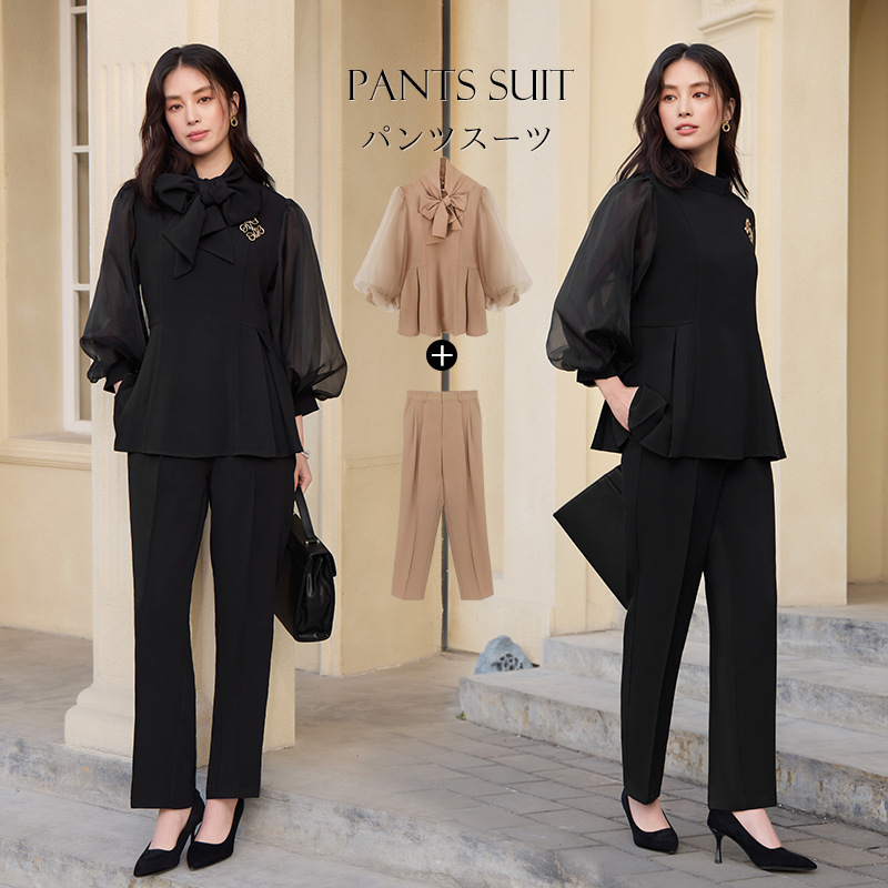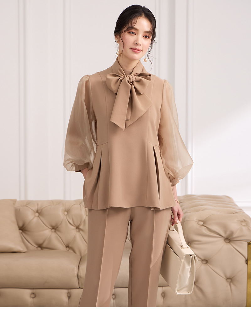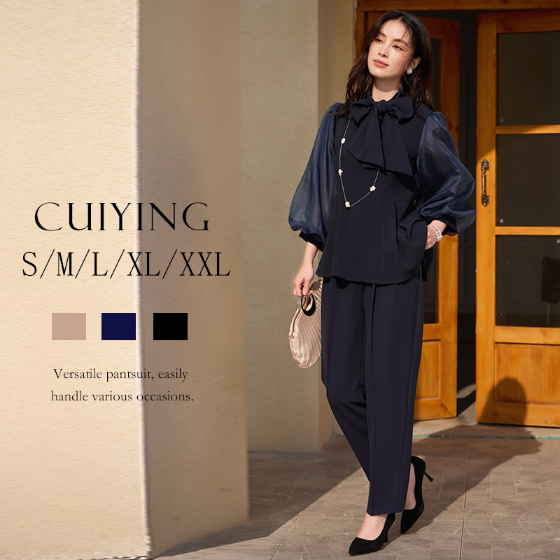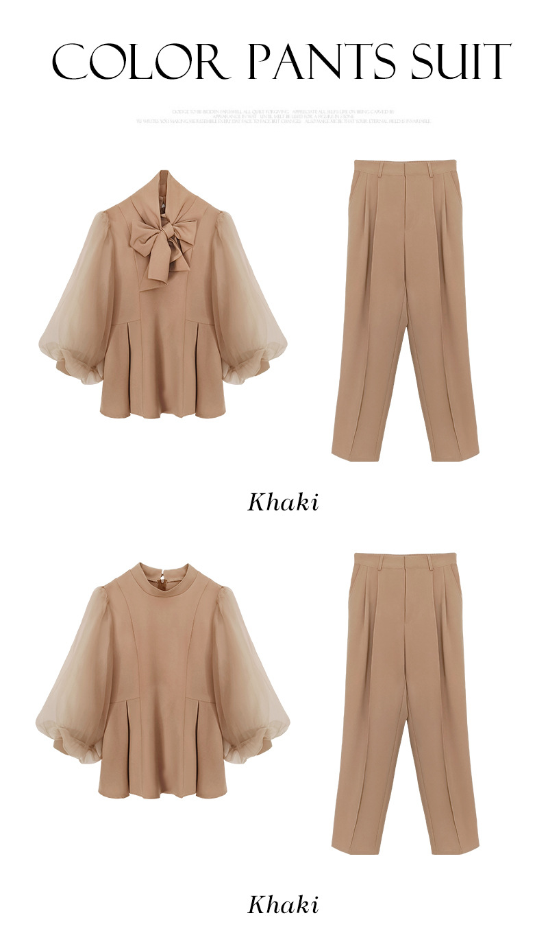 2025 새로운 여성 우아하고 슬림핏 한국 랜턴 긴팔 바느질 탑 휴 바지 88636