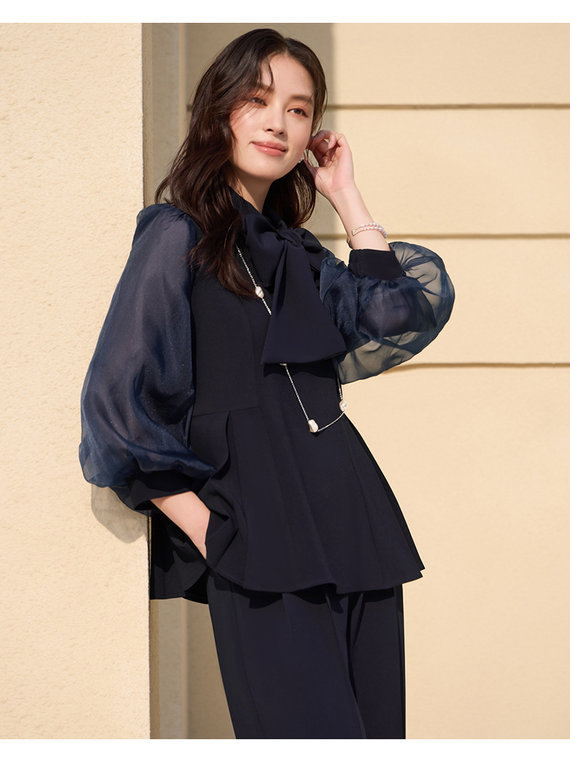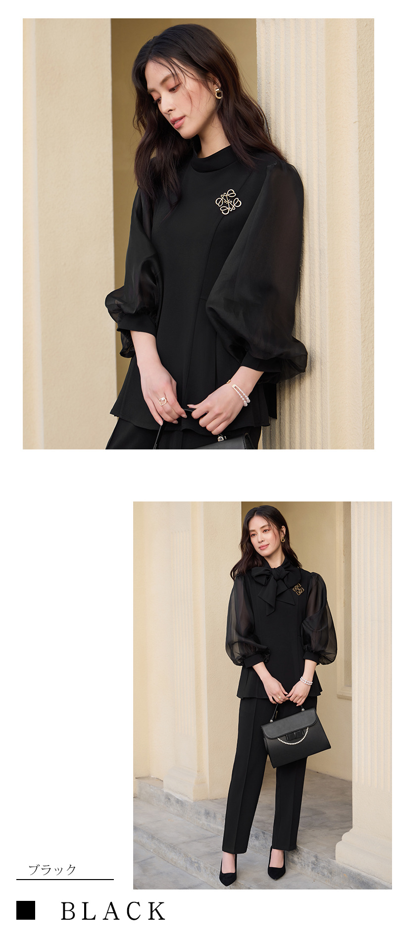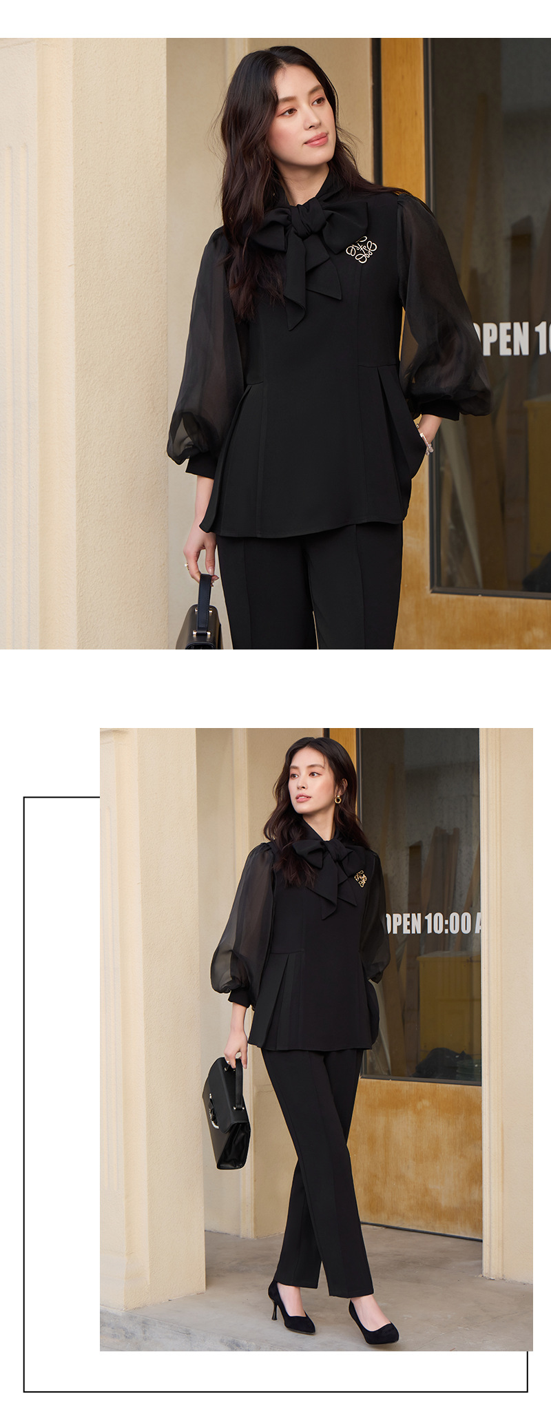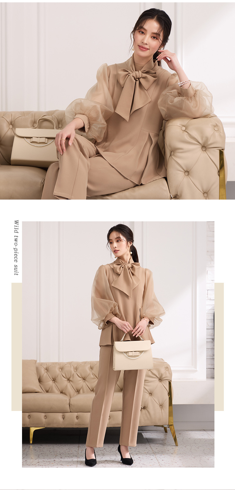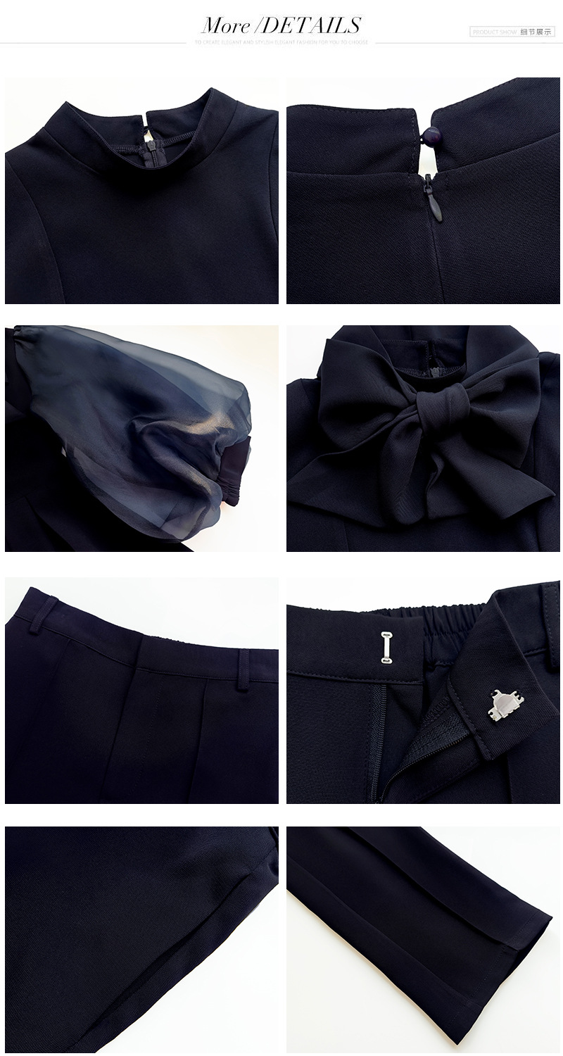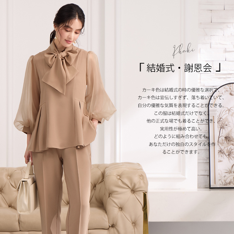 2025 새로운 여성 우아하고 슬림핏 한국 랜턴 긴팔 바느질 탑 휴 바지 88636