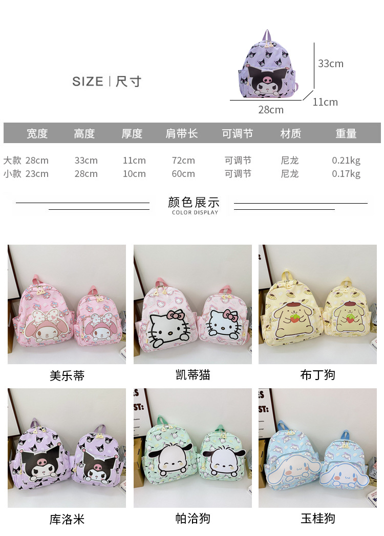 새로운 만화 어린이 학교 가방 Kuromi 계피 개 3-6 세 초등 학생 유치원 작은 배낭 도매 대외 무역스토어 가기