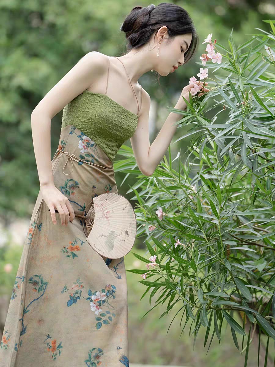 새로운 중국 스타일 원피스 국가 스타일 봄과 가을 여성 의류 2025 새로운 도착 슬링 세트 여성 스커트 투피스 세트 타이트 허리스토어 가기