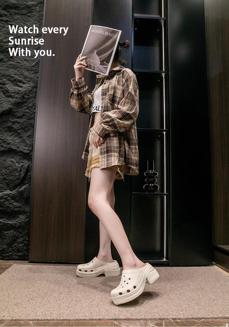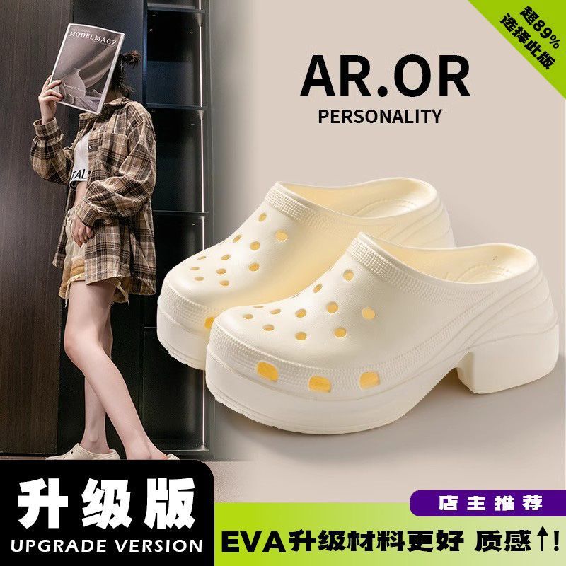 인터넷 인기있는 인어 구멍 신발 여성 패션 거리 사진 촬영 여행 스타일 하이 엔드 높이 증가 슬리퍼 여름 겉옷스토어 가기
