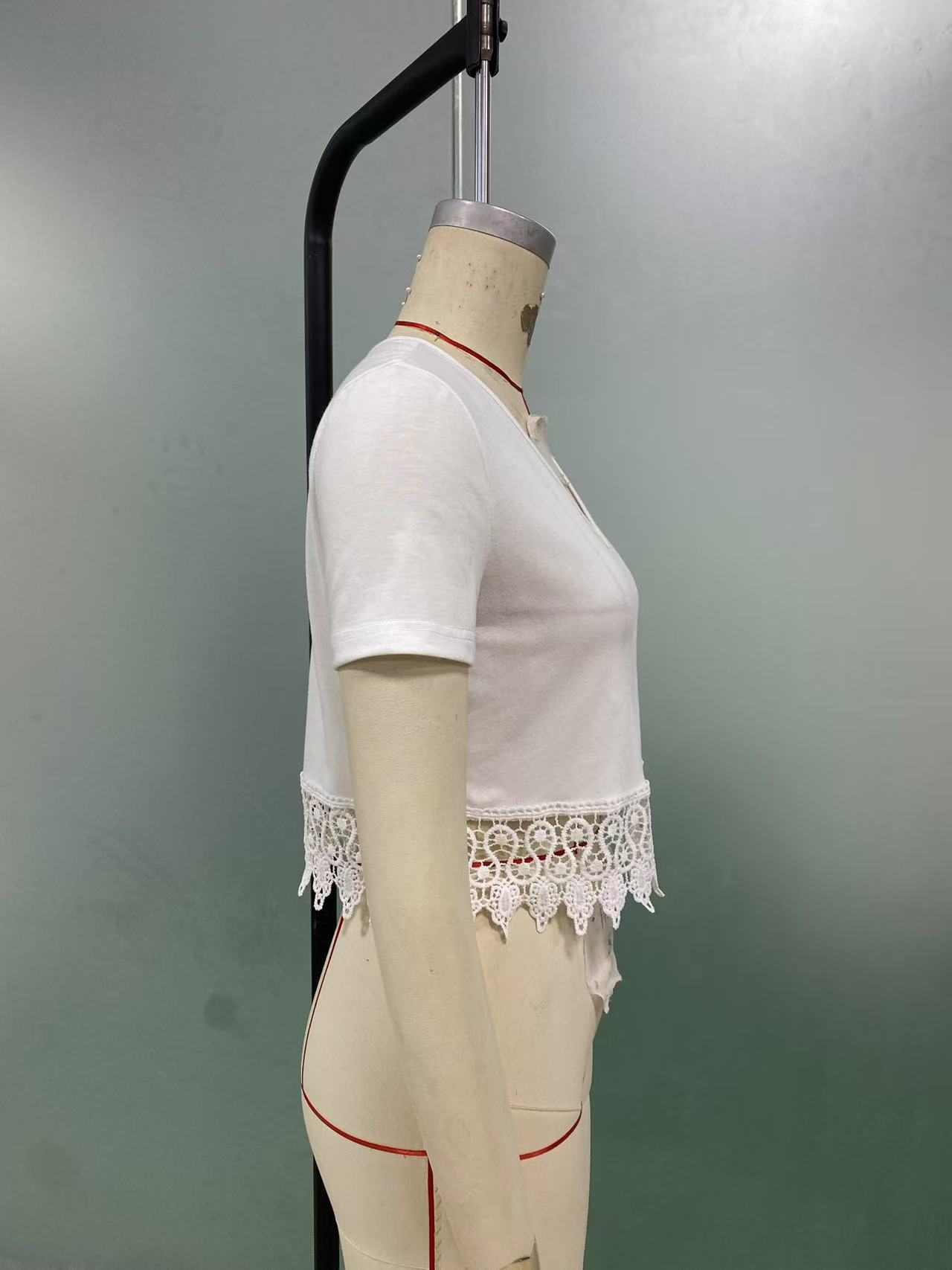 국경 간 대외 무역 여성 의류 아마존 2025 여름 휴가 스타일 유럽과 미국 티셔츠 레이스 V 넥 여성용 짧은 소매 탑