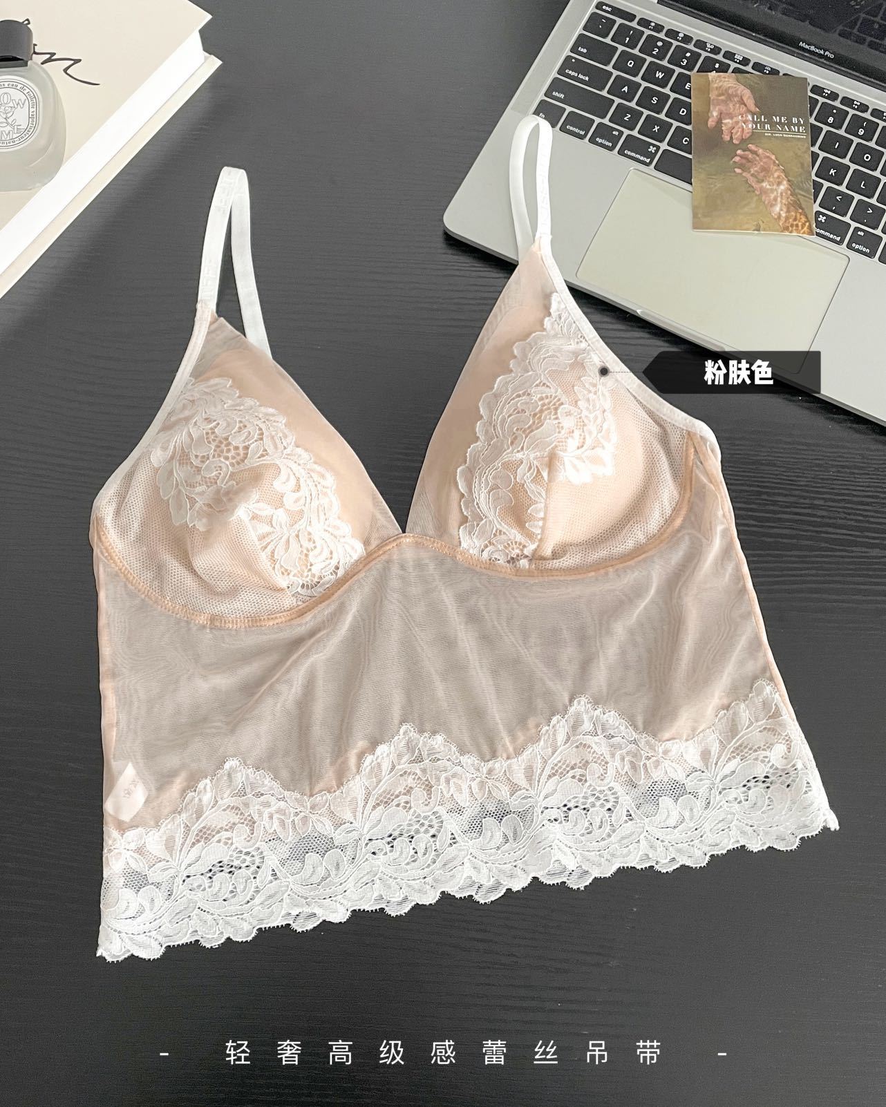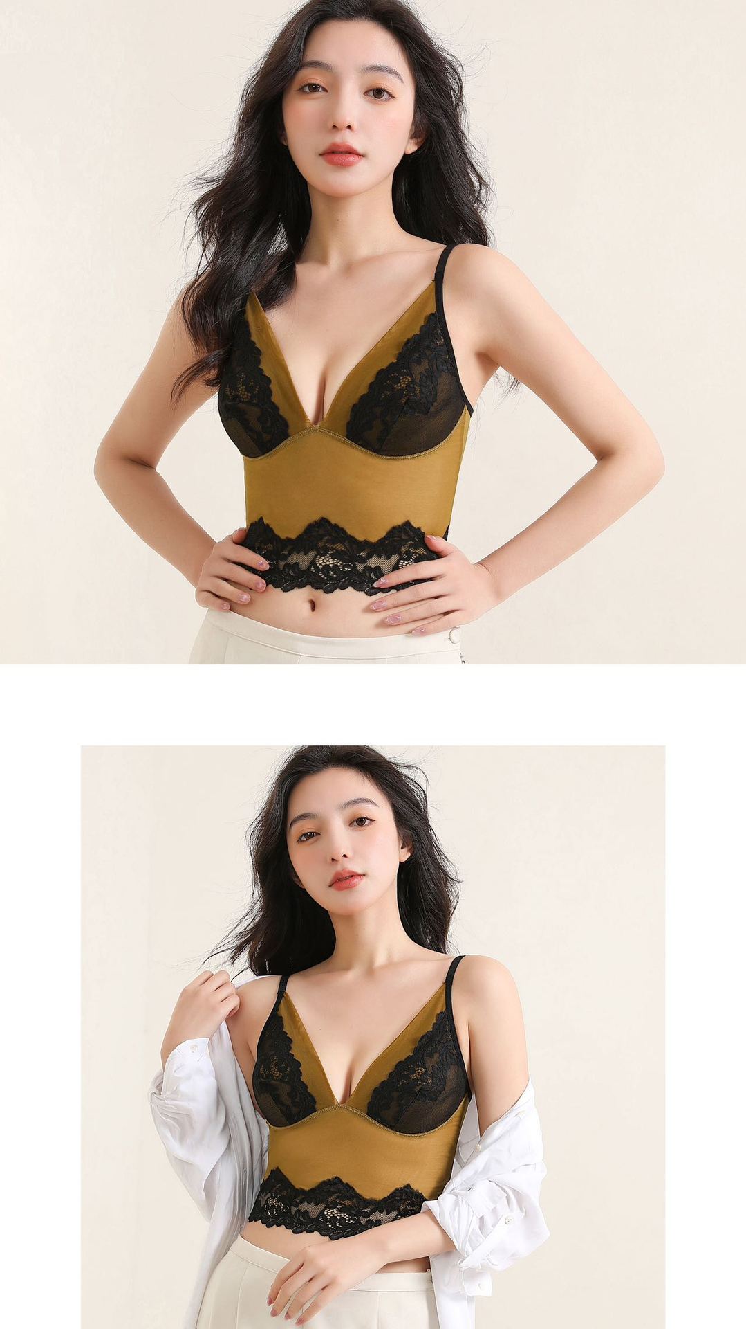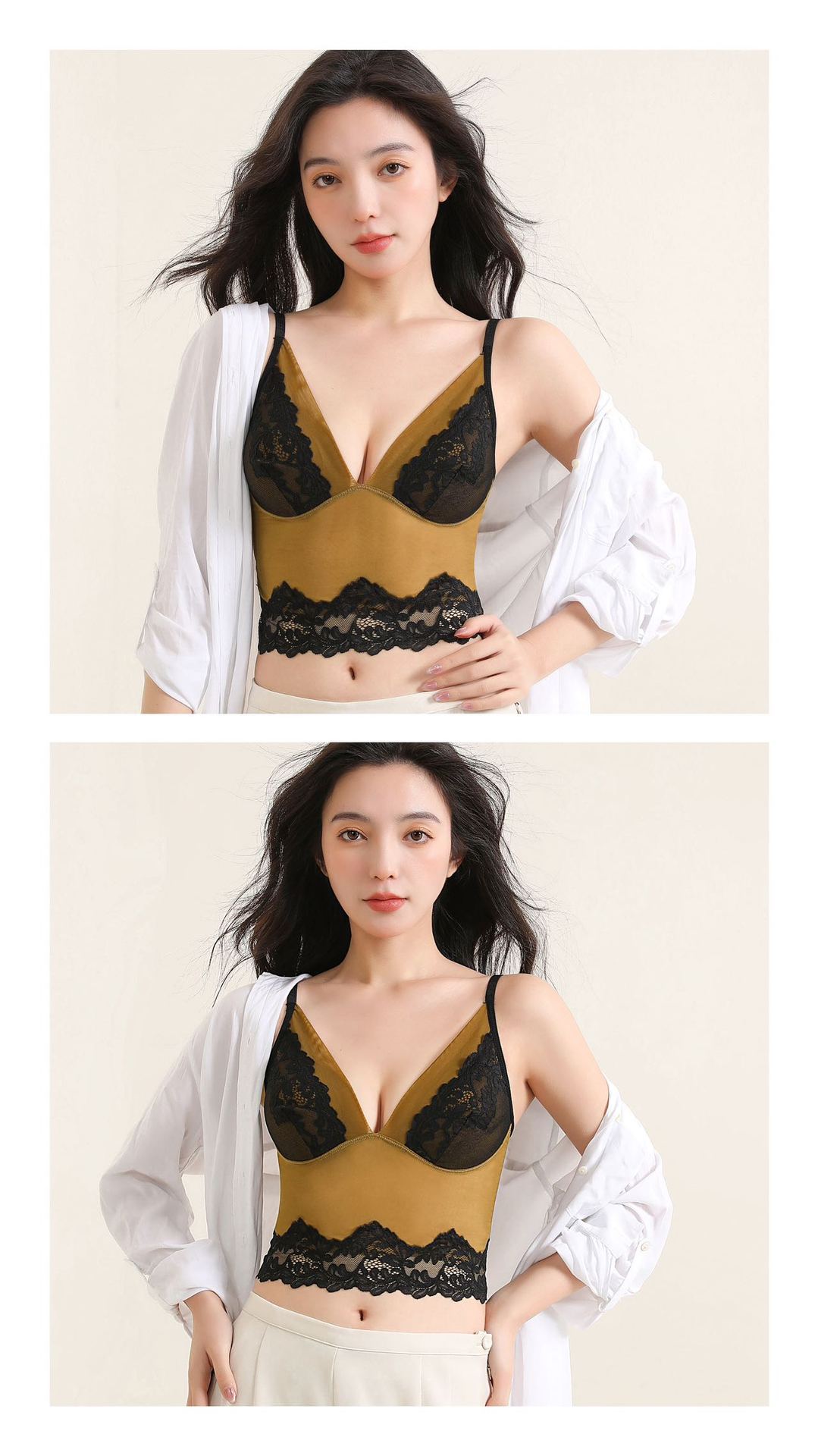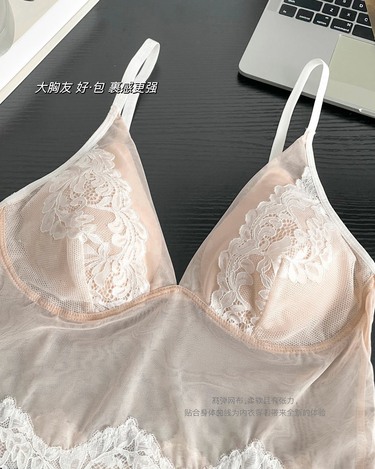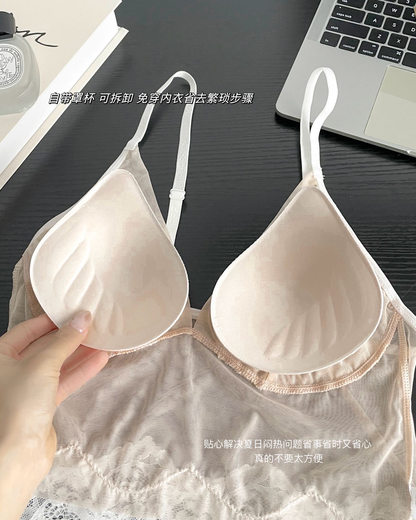 울트라 얇은 프랑스 통합 카미 솔 통기성 고정 컵 푸시 업 섹시한 V 넥 가슴 패드 1008스토어 가기